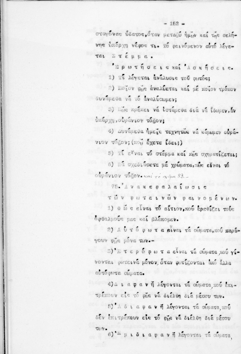 Μαθητικό βοήθημα για την Α΄ Τάξη των Οκταταξίων Γυμνασίων και Πενταταξίων Προγυμνασίων για το μάθημα της Φυσικής. Το σύγγραμμα ήταν πόνημα του συγγραφέα, το οποίο θα μπορούσε να χρησιμοποιηθεί από τους μαθητές του Γυμνασίου για το μάθημα της Φυσικής. Περιέχει βασικές γνώσεις φυσικής, όπως τις ιδιότητες των σωμάτων κ.α.