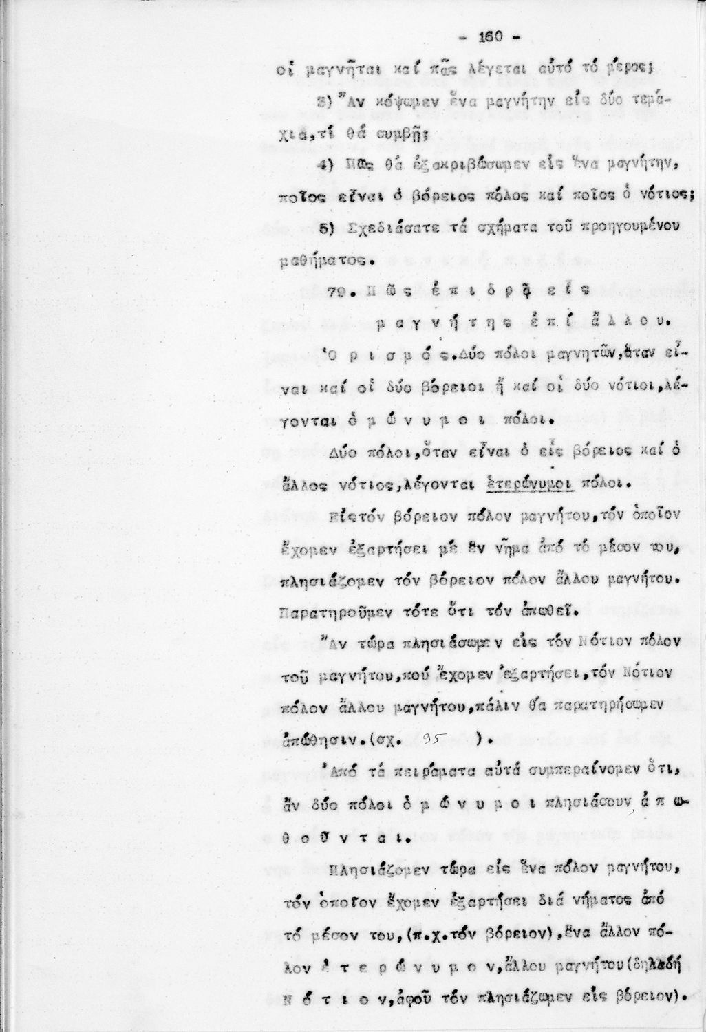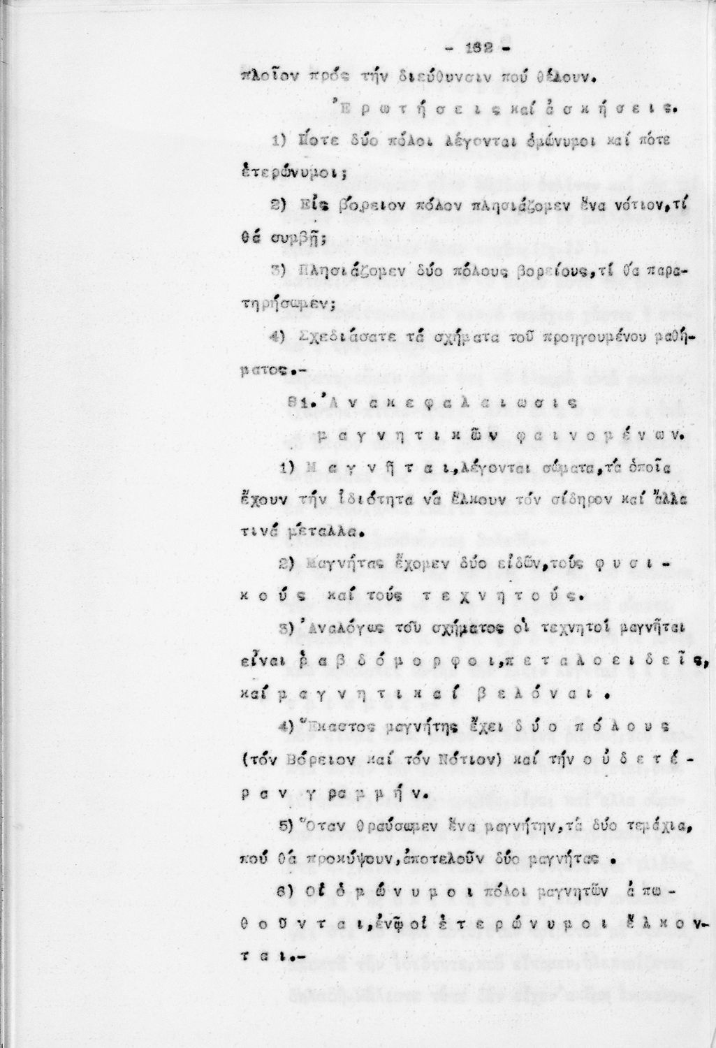 Βαθμίδα εκπαίδευσης: Δευτεροβάθμια Τάξη: Α΄ Οκταταξίου Γυμνασίου / Α΄ Πενταταξίου Προγυμνασίου Μάθημα: Φυσική Γλώσσα: Απλή καθαρεύουσα Παρουσίαση περιεχομένου: Μαθητικό βοήθημα για την Α΄ Τάξη των Οκταταξίων Γυμνασίων και Πενταταξίων Προγυμνασίων για το μάθημα της Φυσικής. Το σύγγραμμα ήταν πόνημα του συγγραφέα, το οποίο θα μπορούσε να χρησιμοποιηθεί από τους μαθητές του Γυμνασίου για το μάθημα της Φυσικής. Περιέχει βασικές γνώσεις φυσικής, όπως τις ιδιότητες των σωμάτων κ.α. |