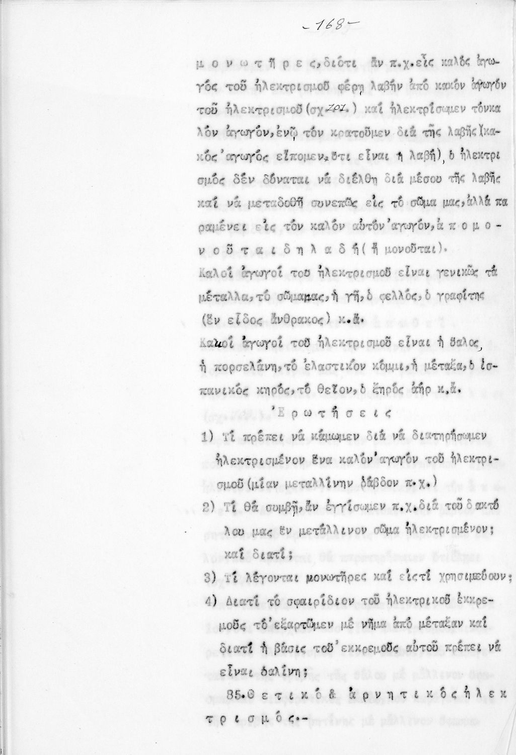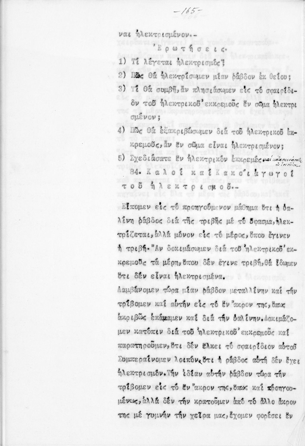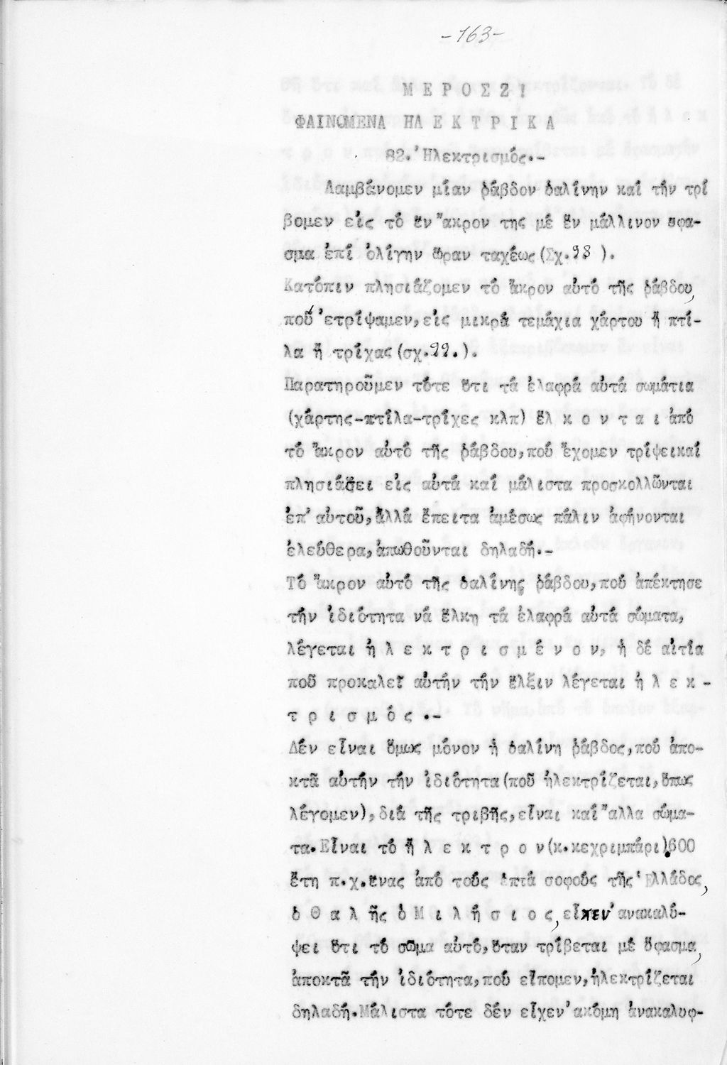 Μαθητικό βοήθημα για την Α΄ Τάξη των Οκταταξίων Γυμνασίων και Πενταταξίων Προγυμνασίων για το μάθημα της Φυσικής. Το σύγγραμμα ήταν πόνημα του συγγραφέα, το οποίο θα μπορούσε να χρησιμοποιηθεί από τους μαθητές του Γυμνασίου για το μάθημα της Φυσικής. Περιέχει βασικές γνώσεις φυσικής, όπως τις ιδιότητες των σωμάτων κ.α.