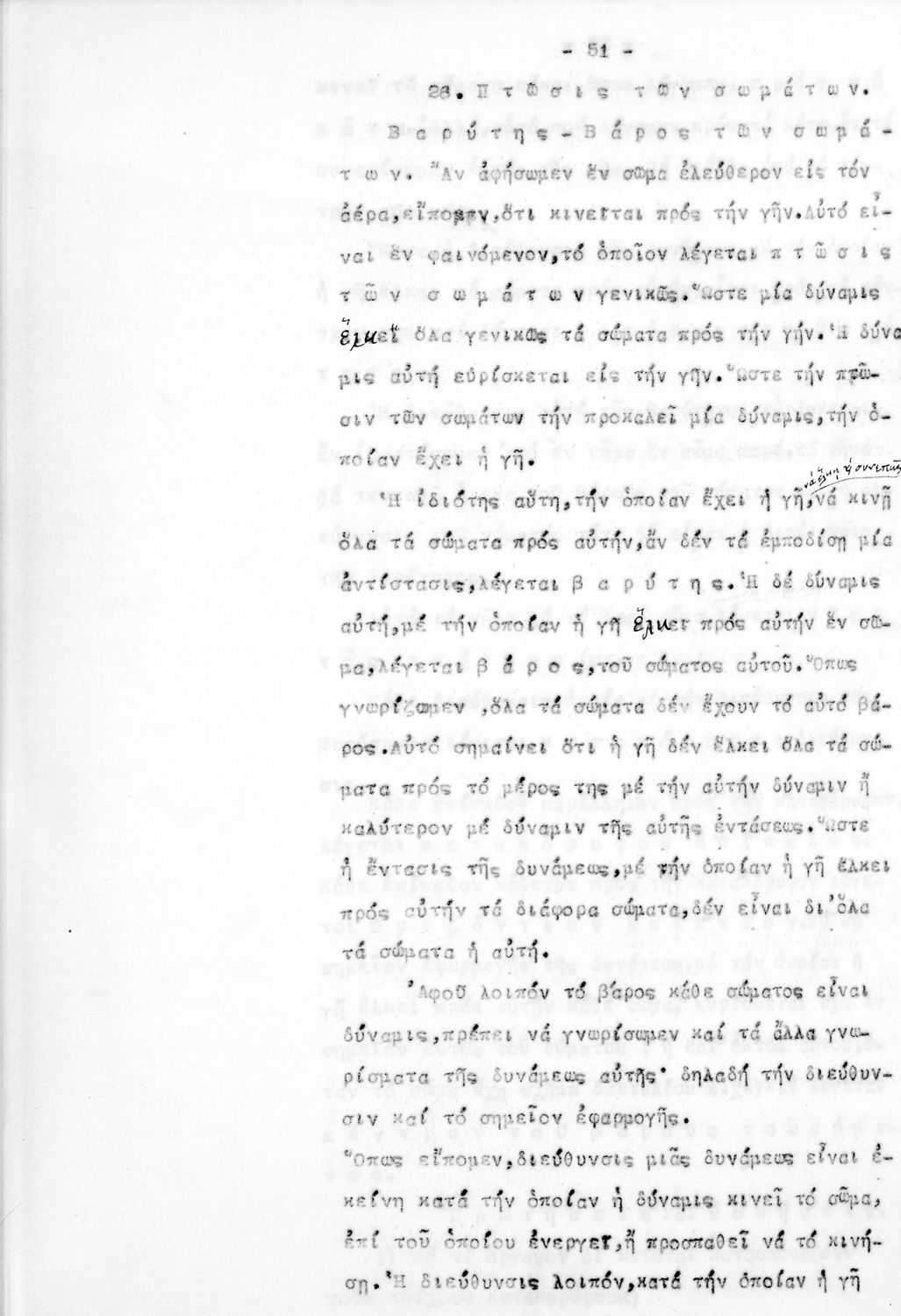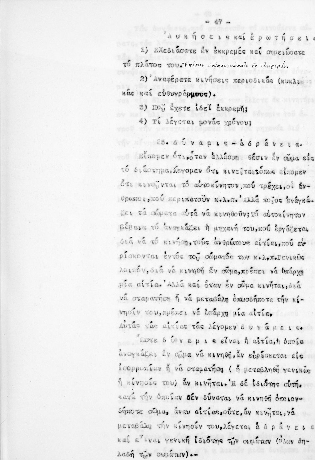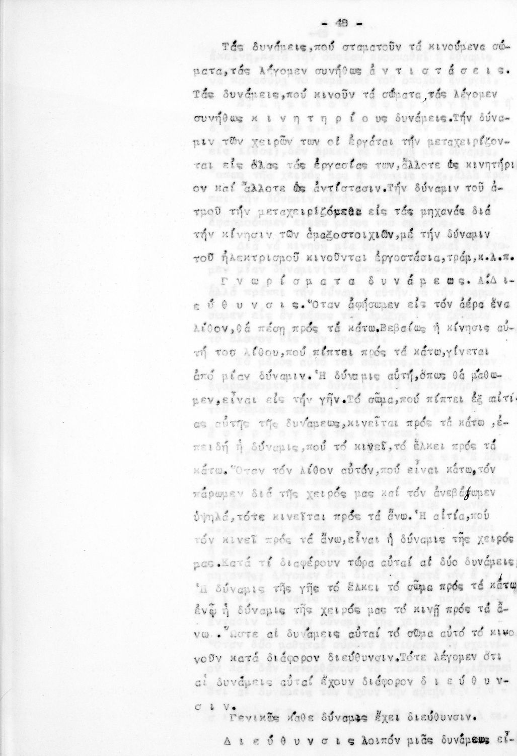 Μαθητικό βοήθημα για την Α΄ Τάξη των Οκταταξίων Γυμνασίων και Πενταταξίων Προγυμνασίων για το μάθημα της Φυσικής. Το σύγγραμμα ήταν πόνημα του συγγραφέα, το οποίο θα μπορούσε να χρησιμοποιηθεί από τους μαθητές του Γυμνασίου για το μάθημα της Φυσικής. Περιέχει βασικές γνώσεις φυσικής, όπως τις ιδιότητες των σωμάτων κ.α.