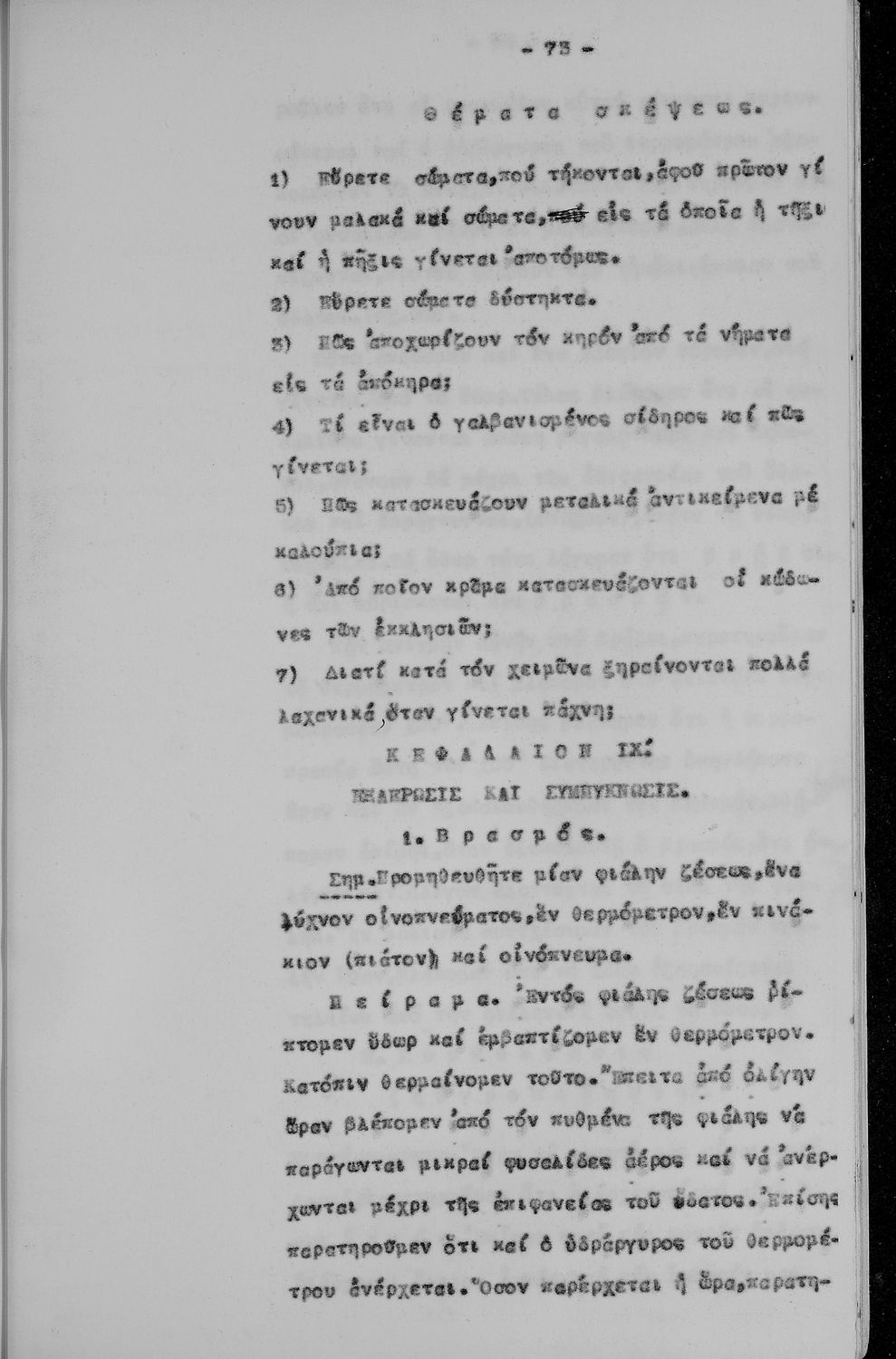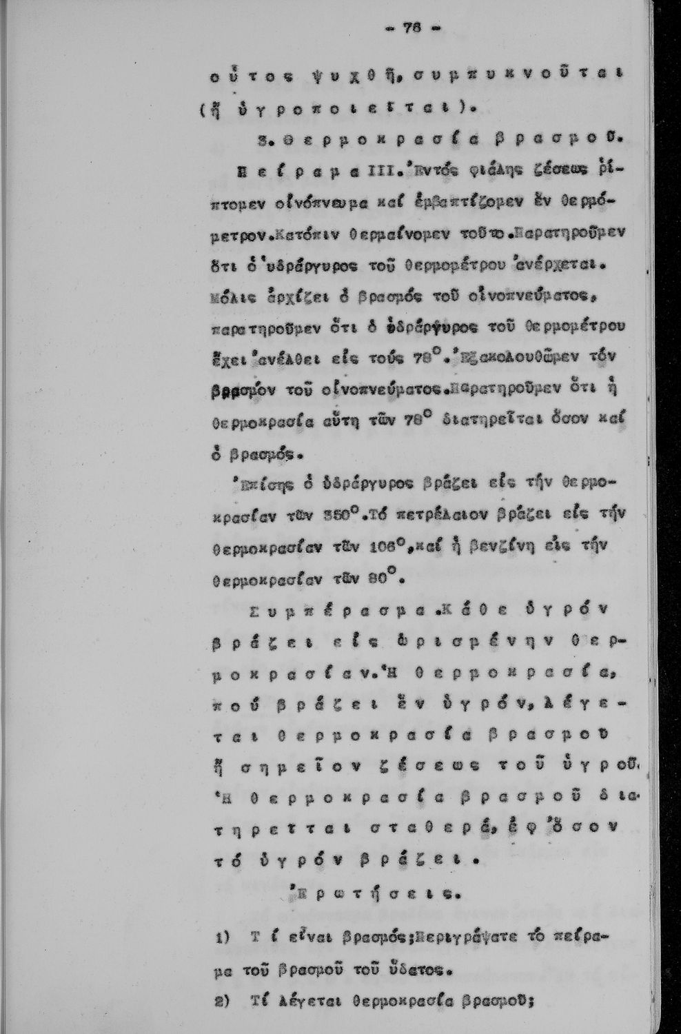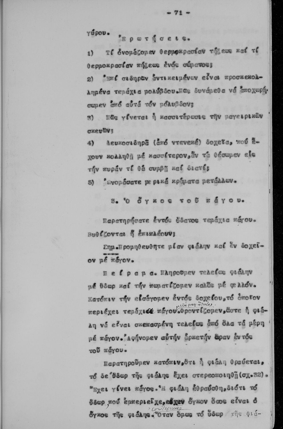 Βαθμίδα εκπαίδευσης: Δευτεροβάθμια Τάξη: Α' Αστικού Σχολείου Μάθημα: Φυσική Γλώσσα: Απλή καθαρεύουσα Παρουσίαση περιεχομένου: Μαθητικό βοήθημα της Α΄ Αστικών Σχολείων για το μάθημα της Φυσικής. Το σύγγραμμα ήταν πόνημα του συγγραφέα. Περιλαμβάνει βασικές γνώσεις φυσικής και χημείας, όπως τις ιδιότητες των σωμάτων, την μηχανική, την πίεση, τα οξέα, τις βάσεις κ.α. Εκτός από τη θεωρία περιέχει πειράματα και ασκήσεις κατανόησης. |