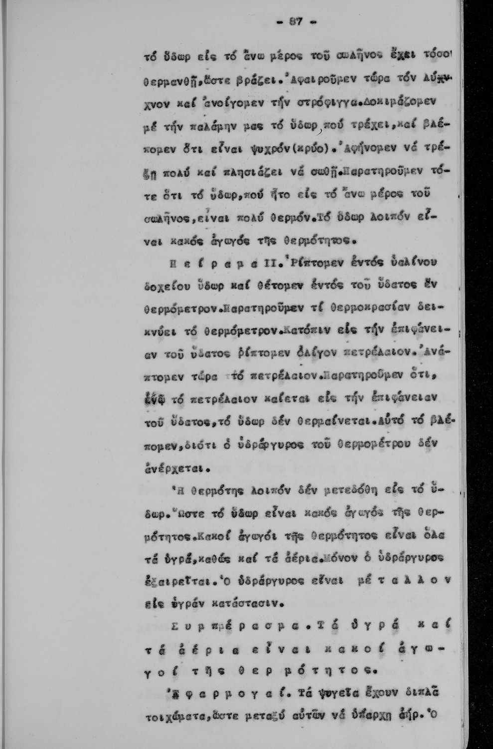 Παρουσίαση περιεχομένου: Μαθητικό βοήθημα της Α΄ Αστικών Σχολείων για το μάθημα της Φυσικής. Το σύγγραμμα ήταν πόνημα του συγγραφέα. Περιλαμβάνει βασικές γνώσεις φυσικής και χημείας, όπως τις ιδιότητες των σωμάτων, την μηχανική, την πίεση, τα οξέα, τις βάσεις κ.α. Εκτός από τη θεωρία περιέχει πειράματα και ασκήσεις κατανόησης.