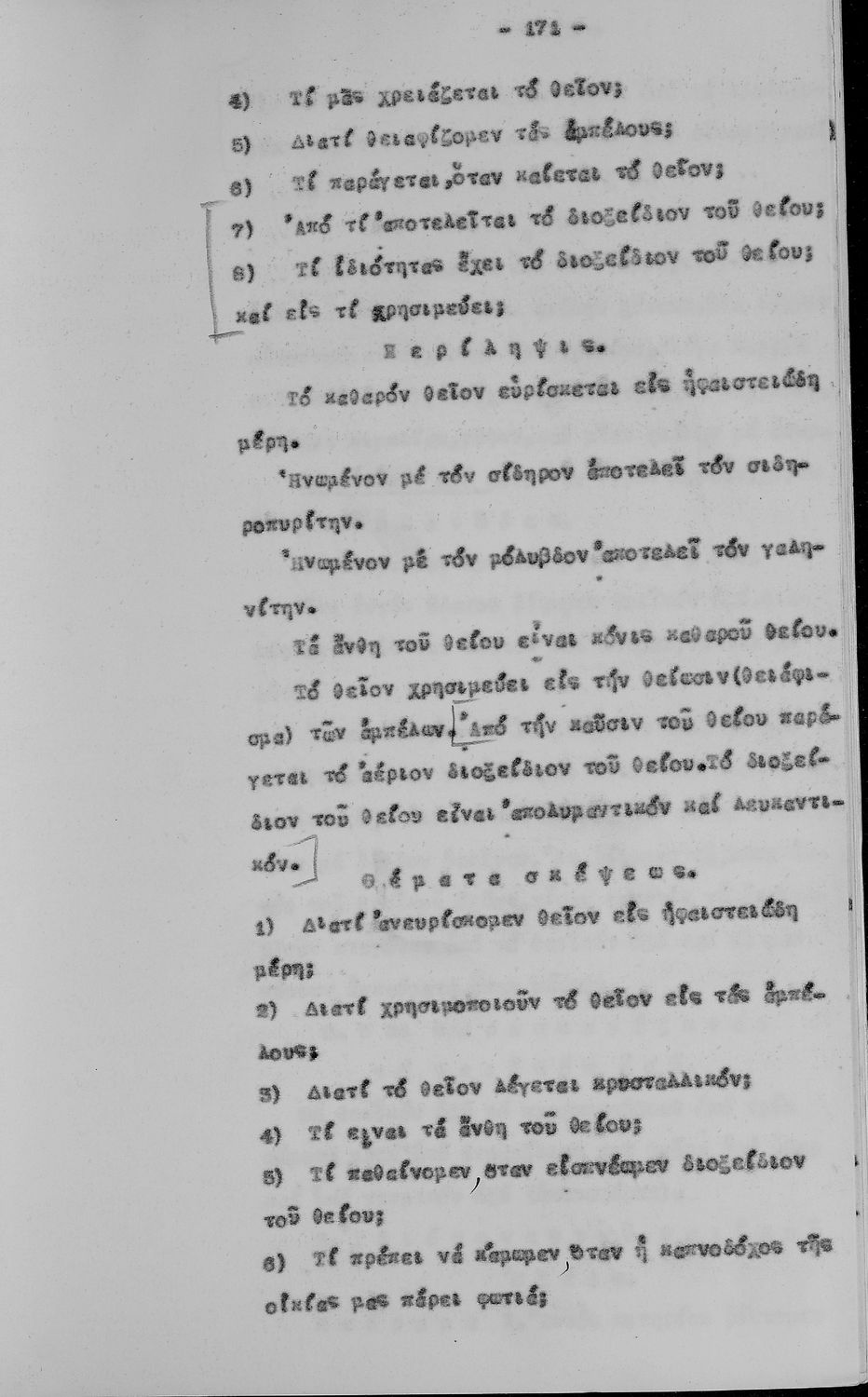 Παρουσίαση περιεχομένου: Μαθητικό βοήθημα της Α΄ Αστικών Σχολείων για το μάθημα της Φυσικής. Το σύγγραμμα ήταν πόνημα του συγγραφέα. Περιλαμβάνει βασικές γνώσεις φυσικής και χημείας, όπως τις ιδιότητες των σωμάτων, την μηχανική, την πίεση, τα οξέα, τις βάσεις κ.α. Εκτός από τη θεωρία περιέχει πειράματα και ασκήσεις κατανόησης.