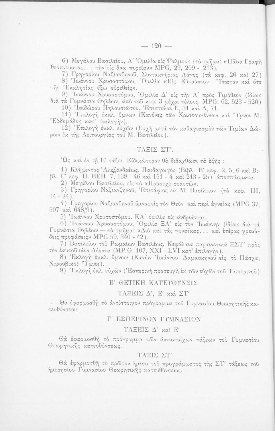 Έκδοση του Υπουργείου Παιδείας και Θρησκευμάτων που περιλαμβάνει τα ωρολόγια και αναλυτικά προγράμματα για τις τάξεις του Γυμνασίου και τις δύο κατώτερες τάξεις Πρακτικών Λυκείων.