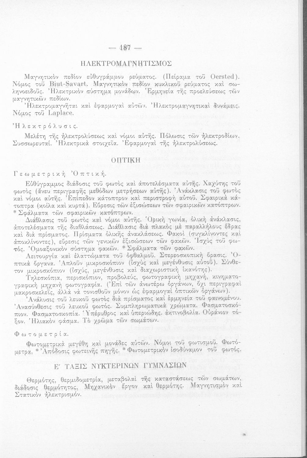 Αναλυτικό πρόγραμμα που εκδόθηκε με εντολή του Υπουργείου των Εκκλησιαστικών και της Δημόσιας Εκπαιδεύσεως από το τμήμα Δ΄, Μέσης Εκπαίδευσης, Γυμναστικής και Σκοποβολής. Στο εξώφυλλο υπάρχει το βασιλικό σήμα.
