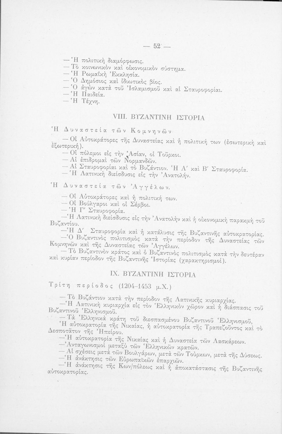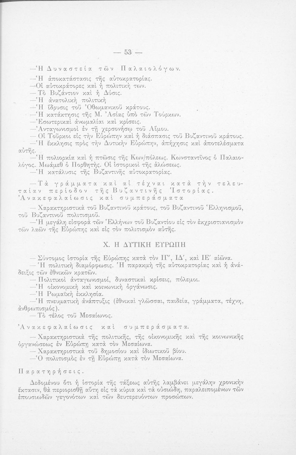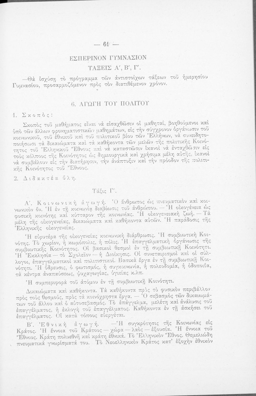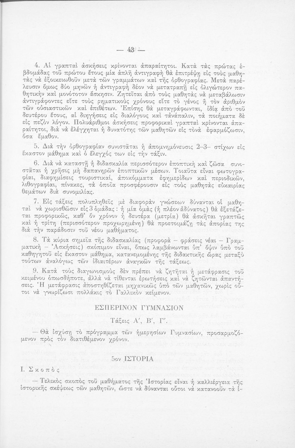 Αναλυτικό πρόγραμμα που εκδόθηκε με εντολή του Υπουργείου των Εκκλησιαστικών και της Δημόσιας Εκπαιδεύσεως από το τμήμα Δ΄, Μέσης Εκπαίδευσης, Γυμναστικής και Σκοποβολής. Στο εξώφυλλο υπάρχει το βασιλικό σήμα.