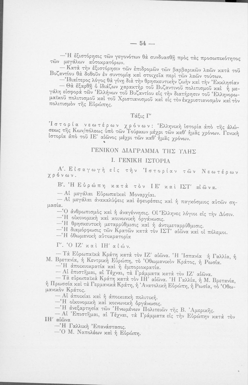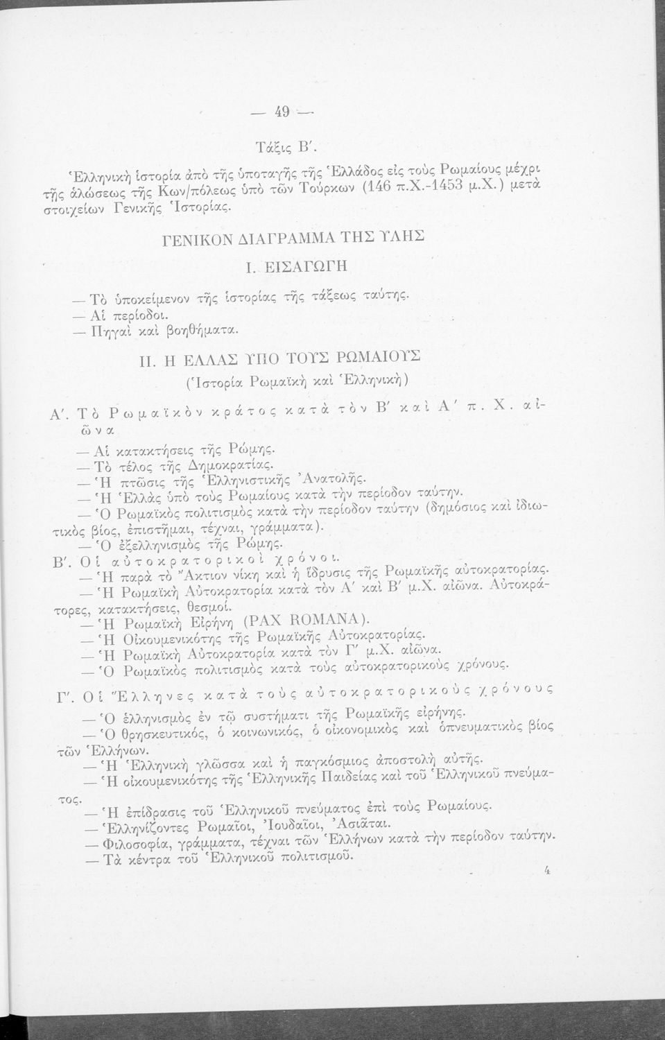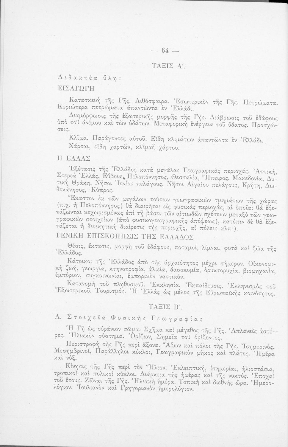 Αναλυτικό πρόγραμμα που εκδόθηκε με εντολή του Υπουργείου των Εκκλησιαστικών και της Δημόσιας Εκπαιδεύσεως από το τμήμα Δ΄, Μέσης Εκπαίδευσης, Γυμναστικής και Σκοποβολής. Στο εξώφυλλο υπάρχει το βασιλικό σήμα.