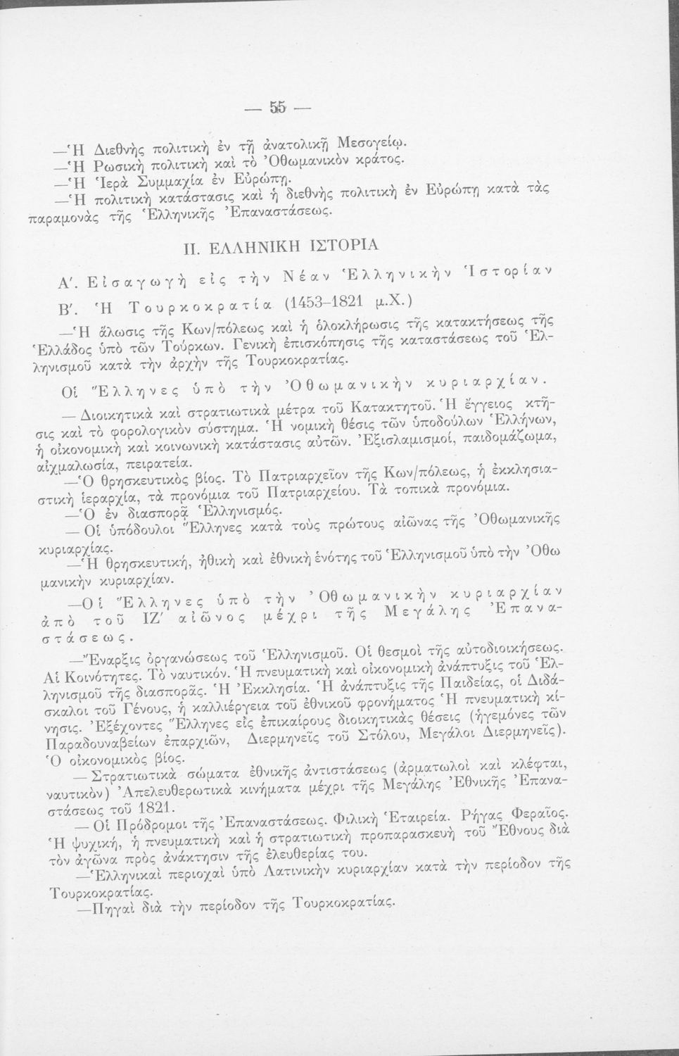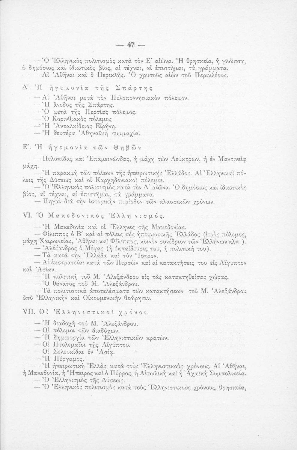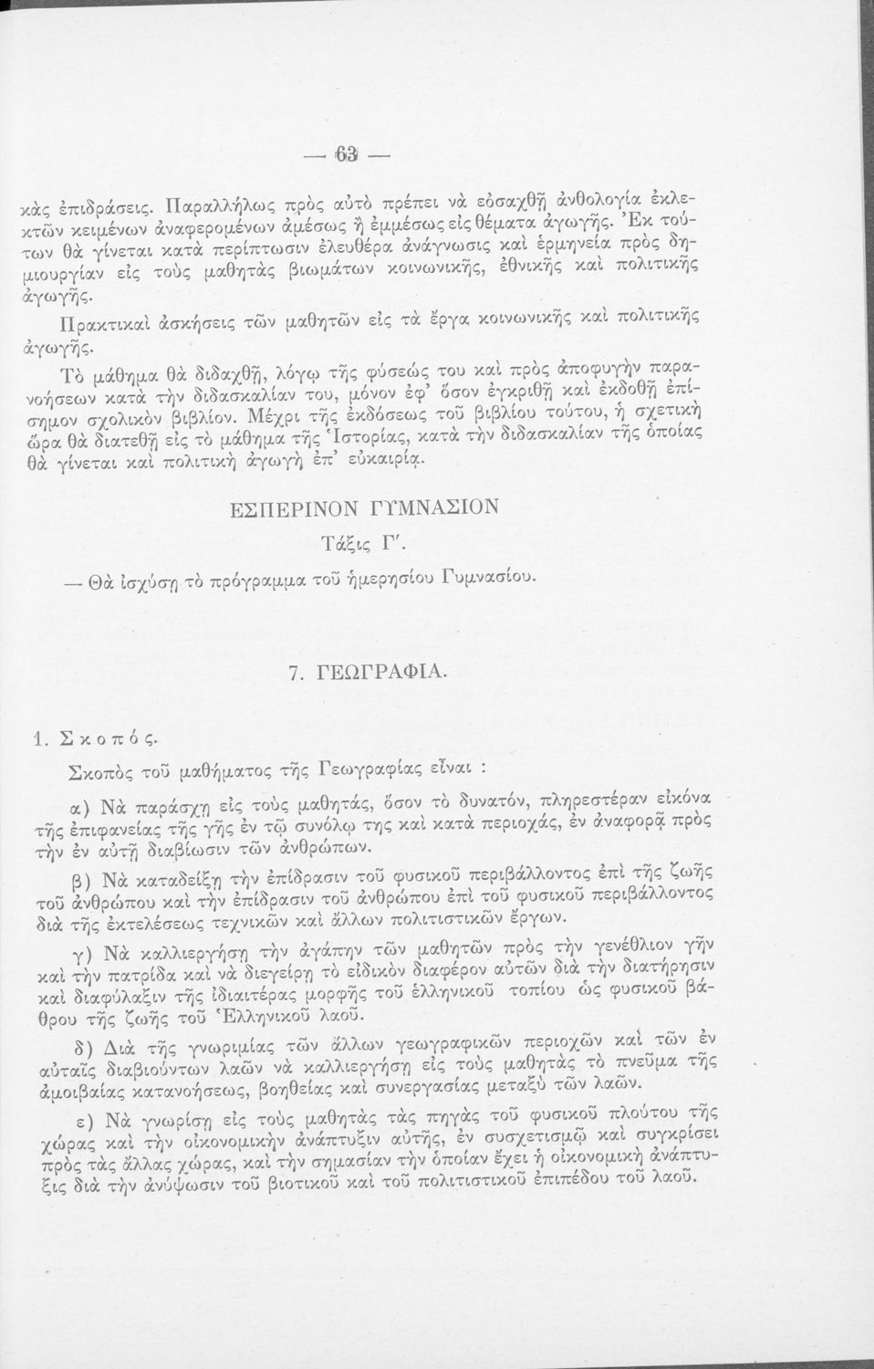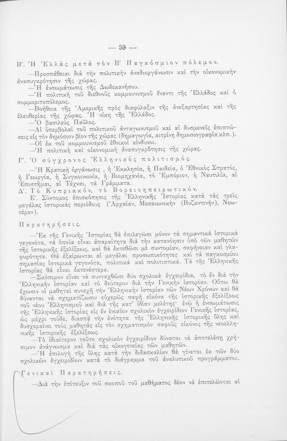 Αναλυτικό πρόγραμμα που εκδόθηκε με εντολή του Υπουργείου των Εκκλησιαστικών και της Δημόσιας Εκπαιδεύσεως από το τμήμα Δ΄, Μέσης Εκπαίδευσης, Γυμναστικής και Σκοποβολής. Στο εξώφυλλο υπάρχει το βασιλικό σήμα.