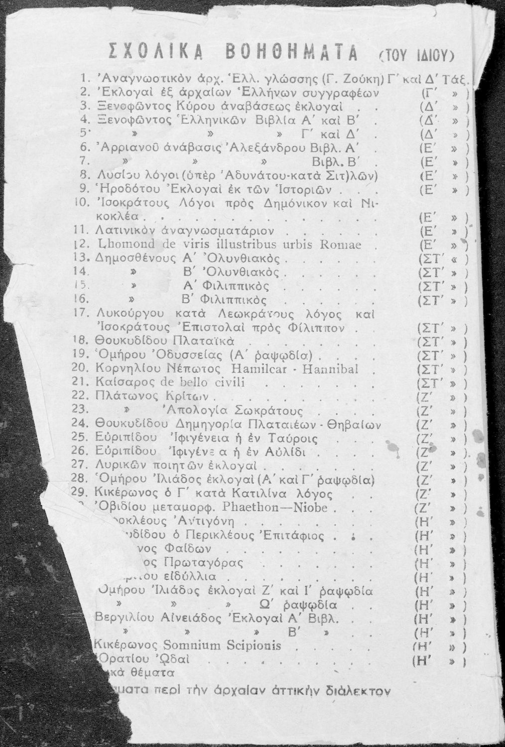 Τάξη:  Ε' Γυμνασίου παλαιού τύπου / ΣΤ' Γυμνασίου νέου τύπου