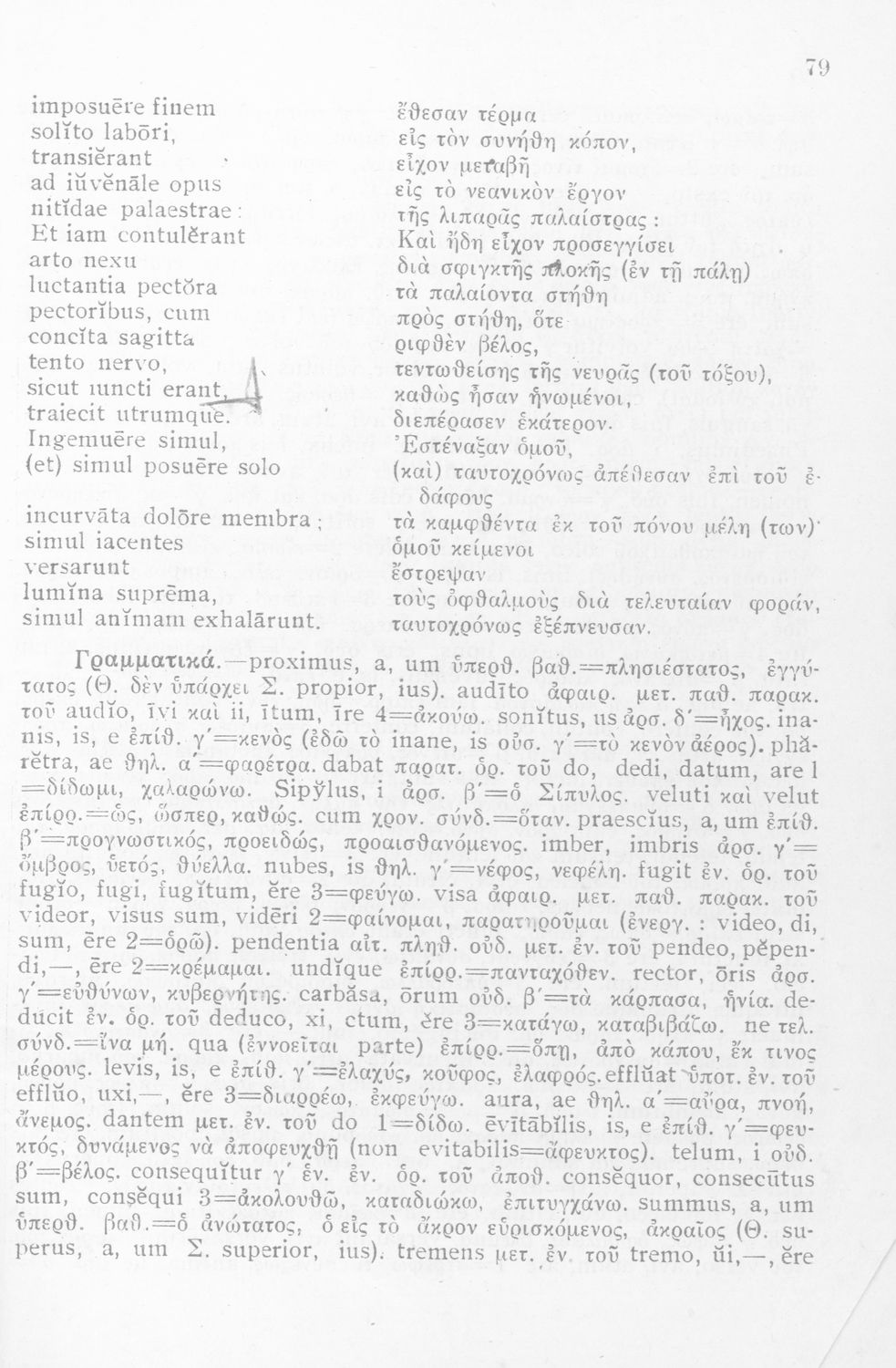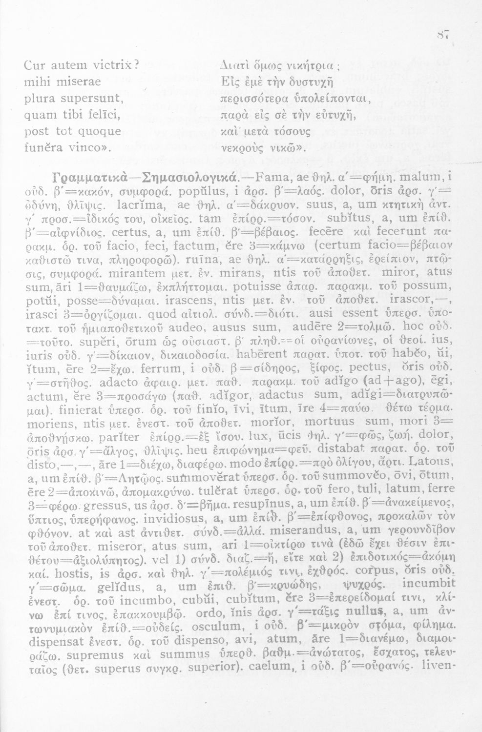 Μαθητικό βοήθημα Λατινικών για την Ζ΄ τάξη των Οκταταξίων Γυμνασίων που περιέχει κείμενο, μετάφραση, γραμματικά, σημασιολογικά και συντακτικά σχόλια, νόημα και περίληψη.