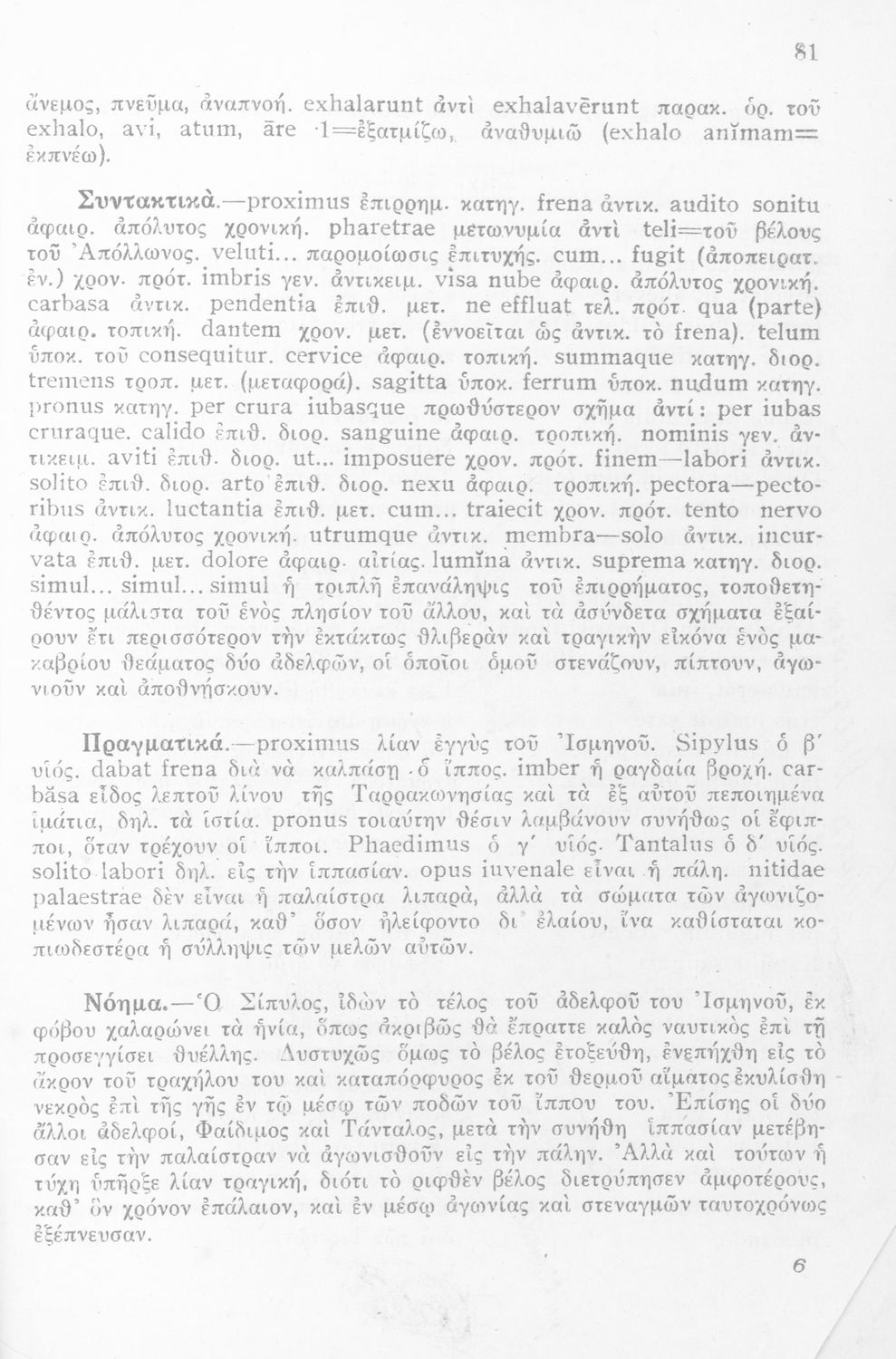 Μαθητικό βοήθημα Λατινικών για την Z΄ τάξη των Οκταταξίων Γυμνασίων που περιέχει κείμενο, μετάφραση, γραμματικά, σημασιολογικά και συντακτικά σχόλια, νόημα και περίληψη.