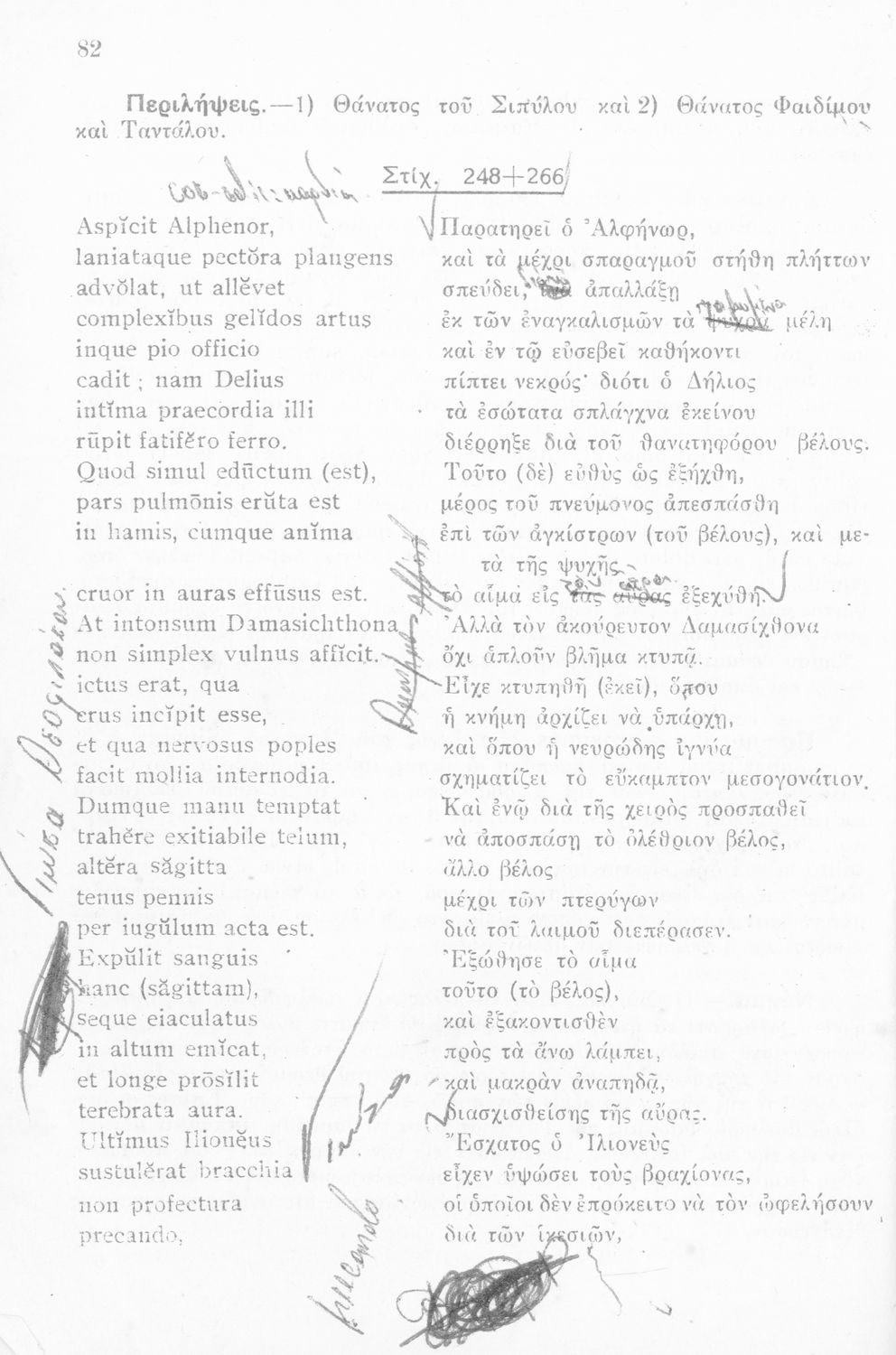 Σχολικό εγχειρίδιο Λατινικών για την Ε΄ Γυμνασίου παλαιού τύπου και την ΣΤ΄ Γυμνασίου νέου τύπου που περιέχει βιογραφικό σημείωμα του Οβίδιου, εισαγωγικά σχόλια, αποσπάσματα από τις Μεταμορφώσεις και ...