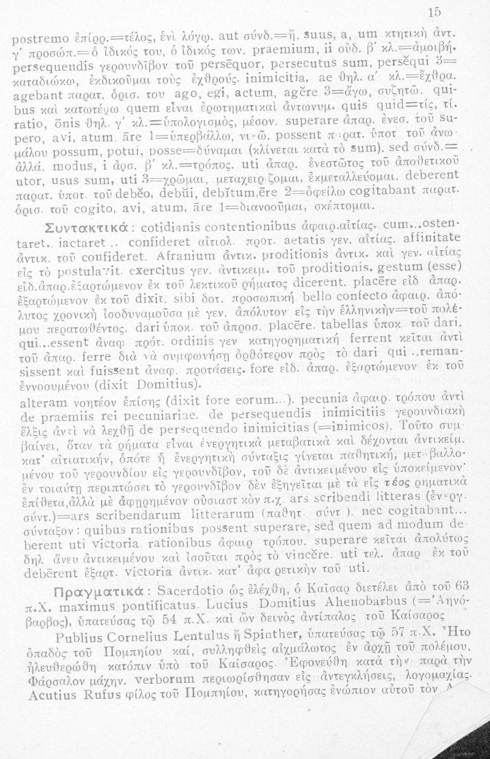 Μαθητικό βοήθημα Λατινικών για την Η΄ τάξη των Οκταταξίων Γυμνασίων που περιέχει κείμενο, μετάφραση, γραμματικά, σημασιολογικά και συντακτικά σχόλια, νόημα και περίληψη.