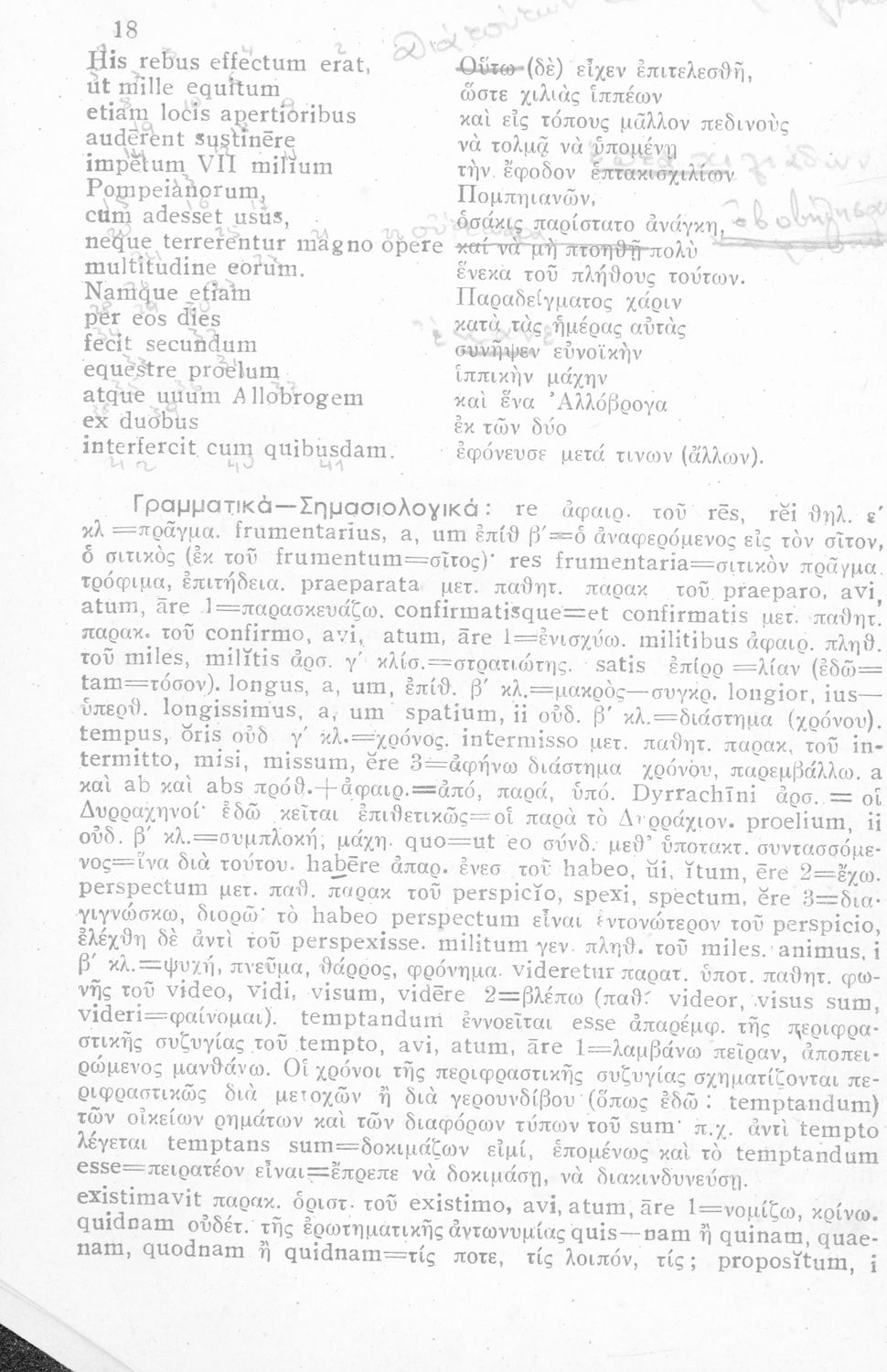 Μαθητικό βοήθημα Λατινικών για την ΣΤ΄ τάξη των Οκταταξίων Γυμνασίων που περιέχει κείμενο, μετάφραση, γραμματικά, σημασιολογικά και συντακτικά σχόλια, νόημα και περίληψη.