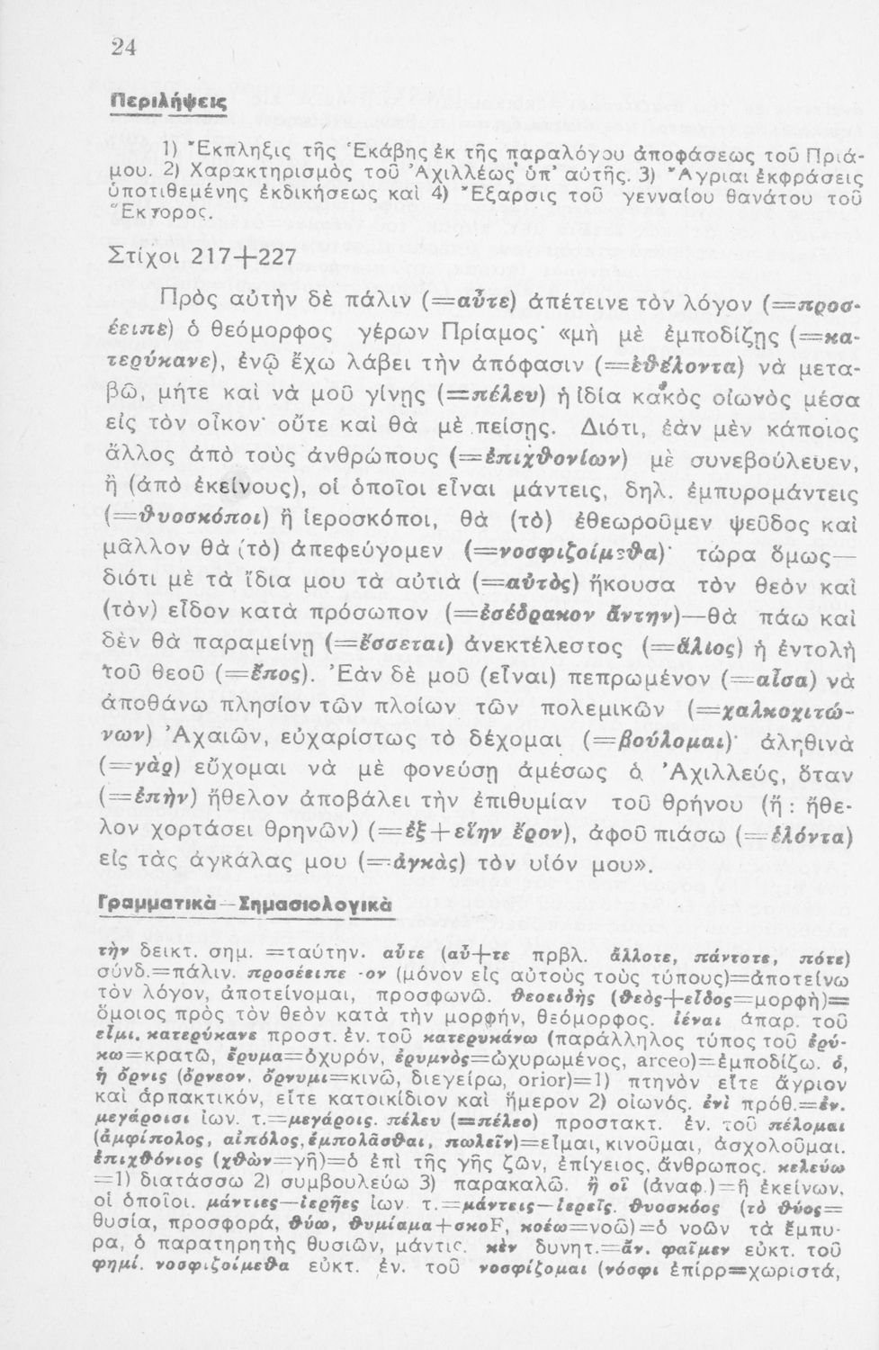Ομήρου Ιλιάδος, Ραψωδία Ω σχολικόν βοήθημα δια τους μαθητάς της Η' τάξεως των οκταταξίων Γυμνασίων