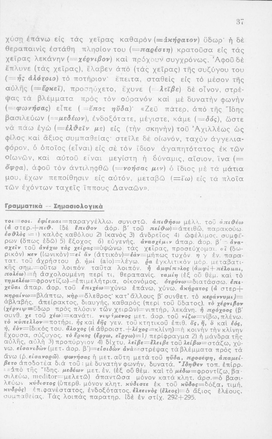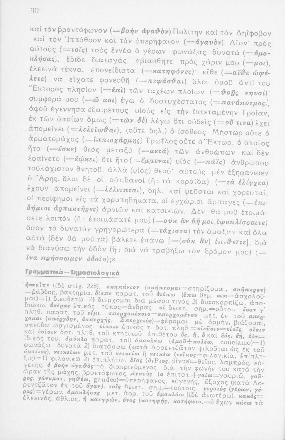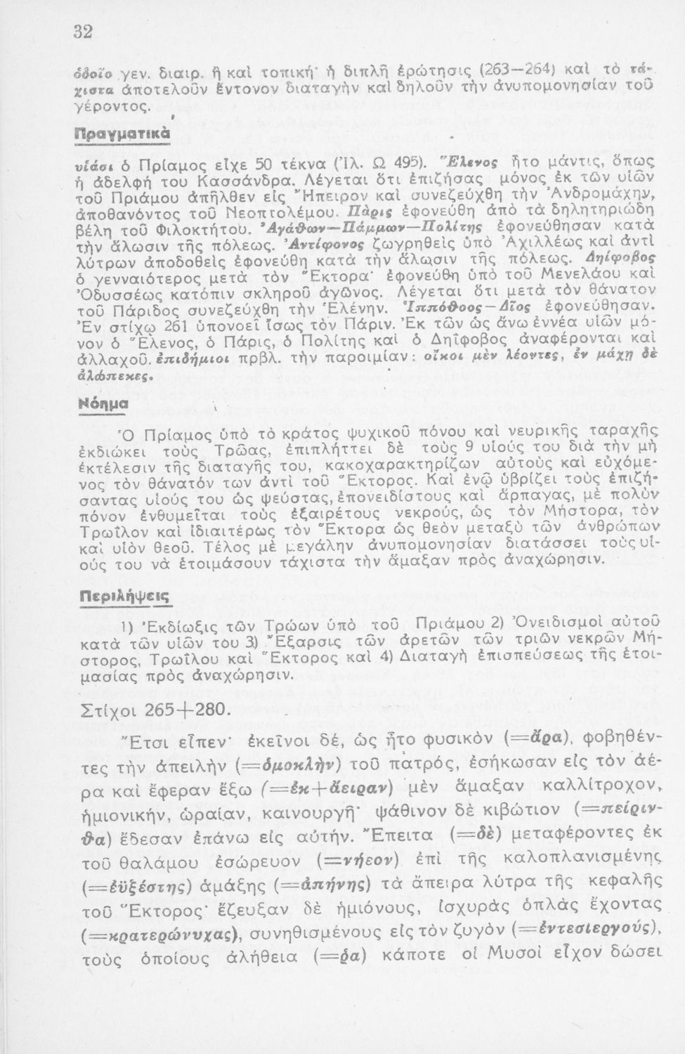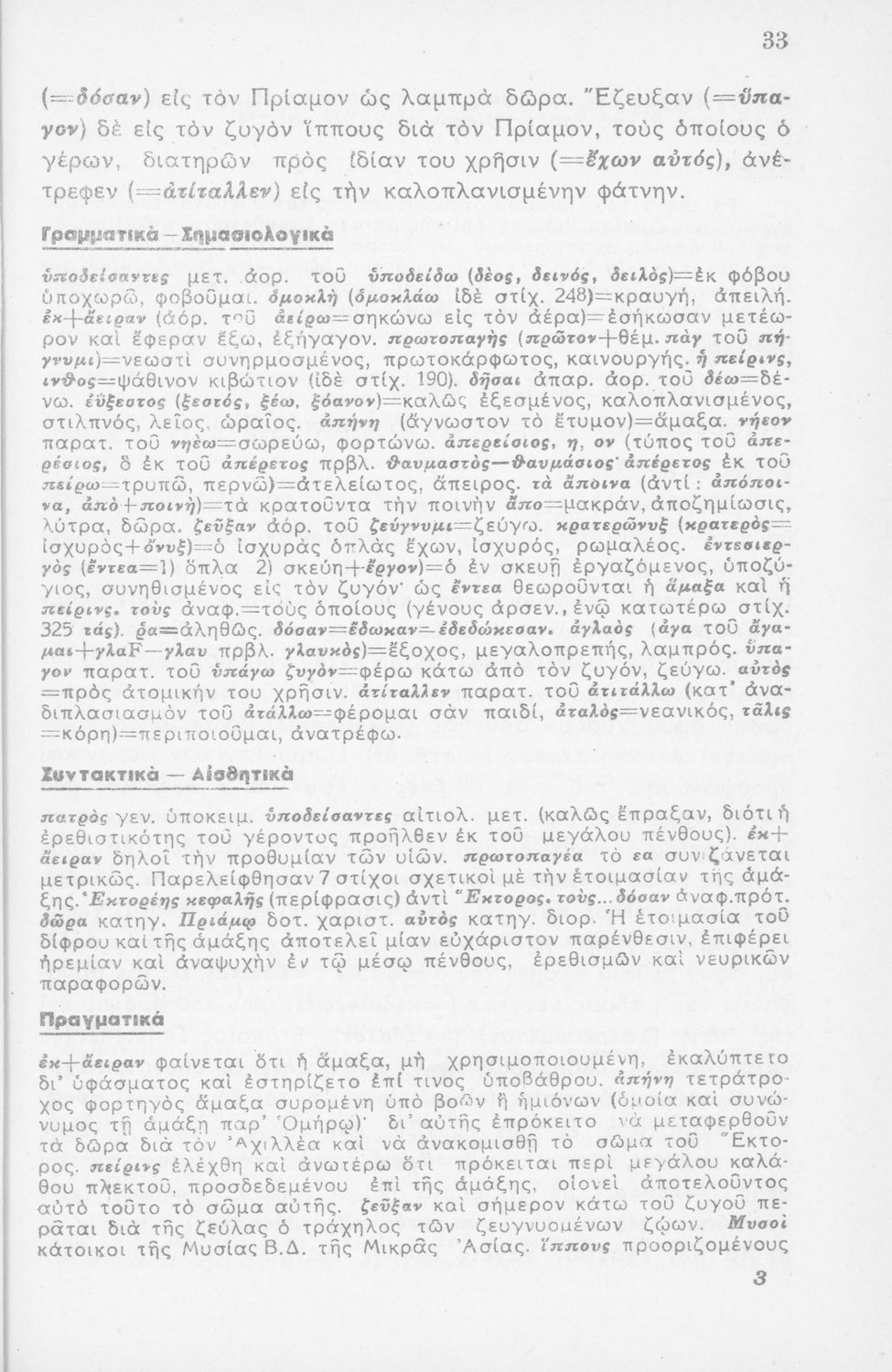 Μαθητικό βοήθημα Αρχαίων Ελληνικών για τη Δευτεροβάθμια Εκπαίδευση. Περιλαμβάνει λογοτεχνική απόδοση, σημασιολογικά και γραμματικά σχόλια καθώς και εισαγωγή στην επική ποίηση.