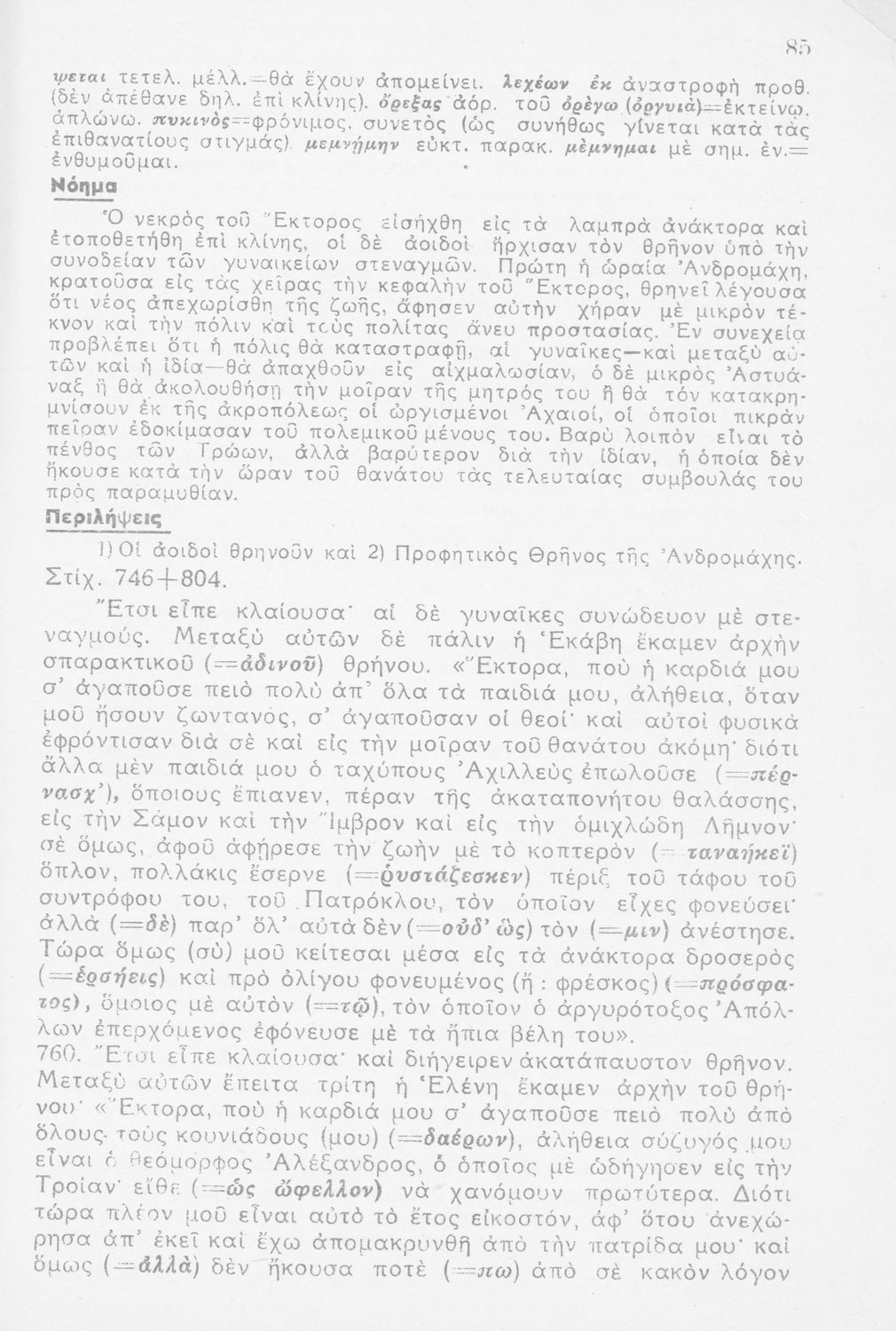 Μαθητικό βοήθημα Αρχαίων Ελληνικών για τη Δευτεροβάθμια Εκπαίδευση. Περιλαμβάνει λογοτεχνική απόδοση, σημασιολογικά και γραμματικά σχόλια καθώς και εισαγωγή στην επική ποίηση.
