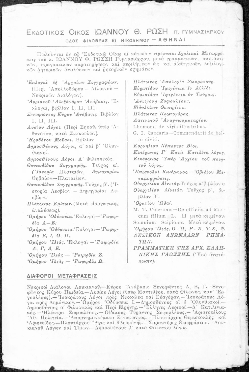 Εκδότης: Ιωάννης Θ. Ρώσσης Τόπος έκδοσης: Αθήνα Έκδοση: 7η |
