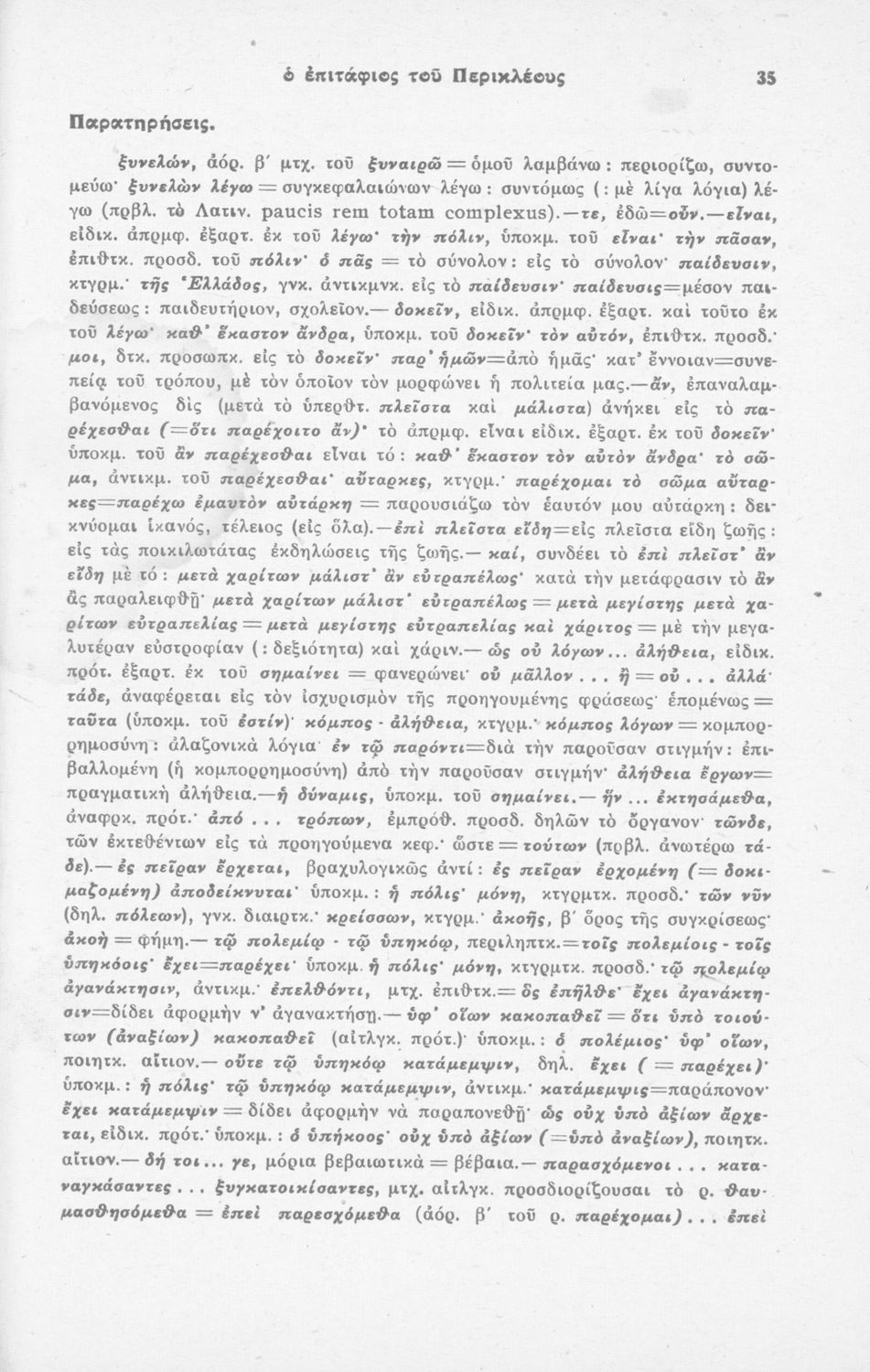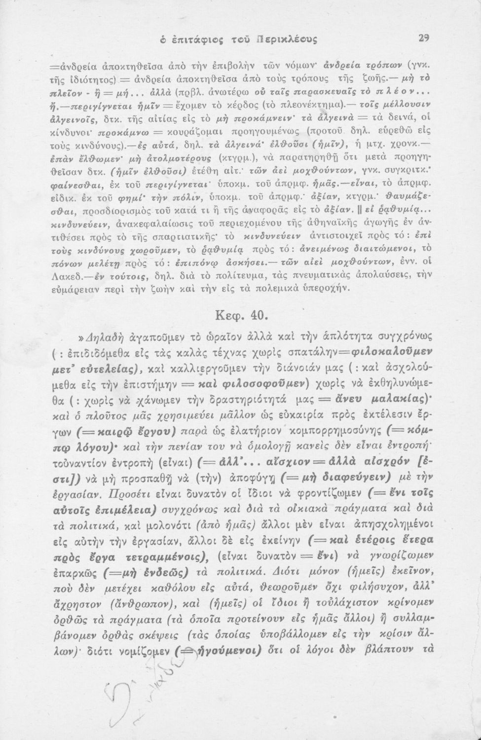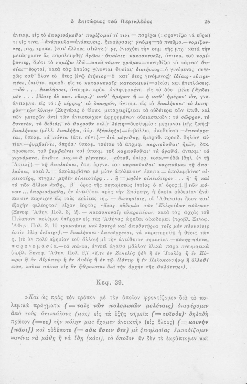 Μαθητικό βοήθημα Αρχαίων Ελληνικών που περιέχει μετάφραση του Επιτάφιου του Περικλή, ερμηνευτικά και πραγματολογικά σχόλια και λεξιλογικές παρατηρήσεις.