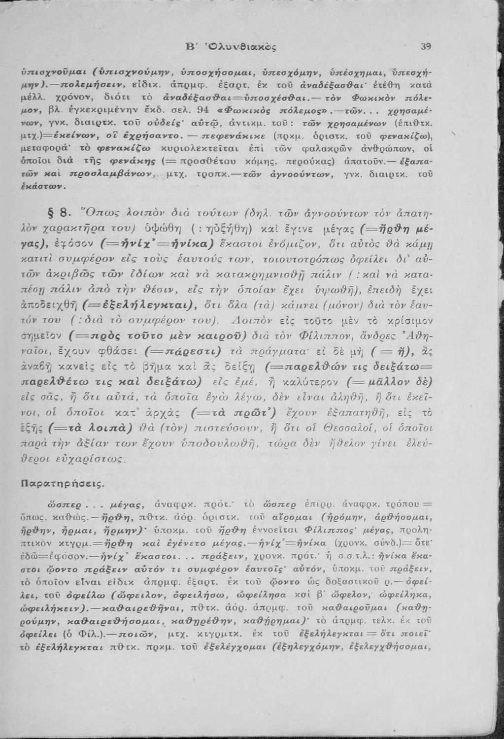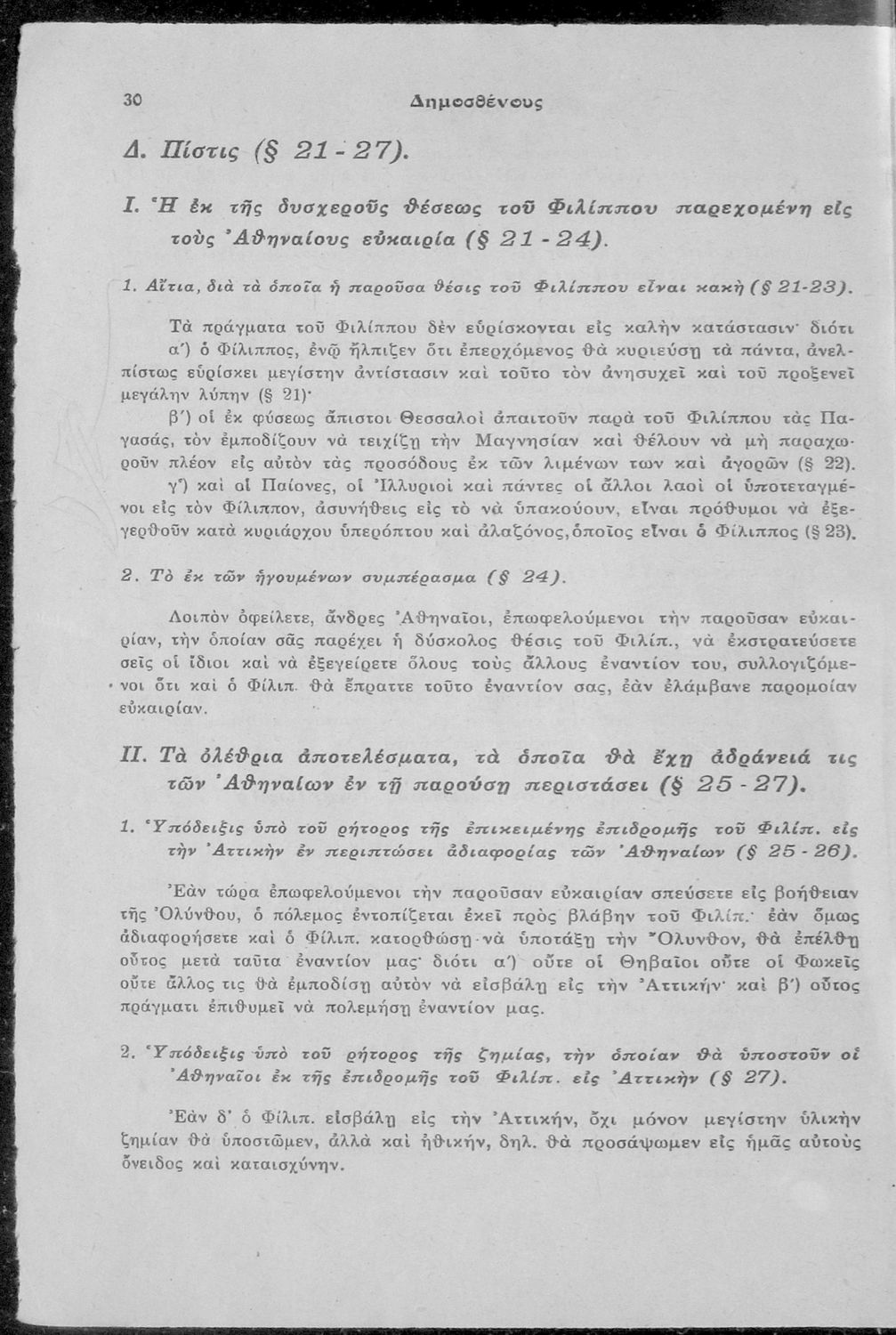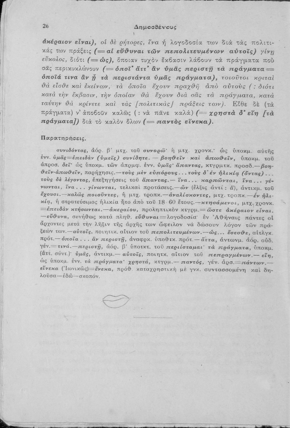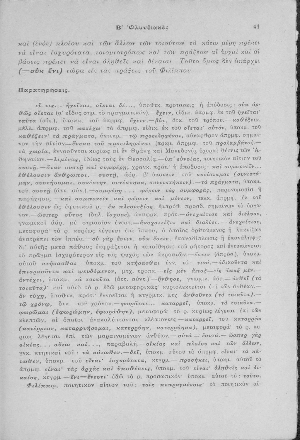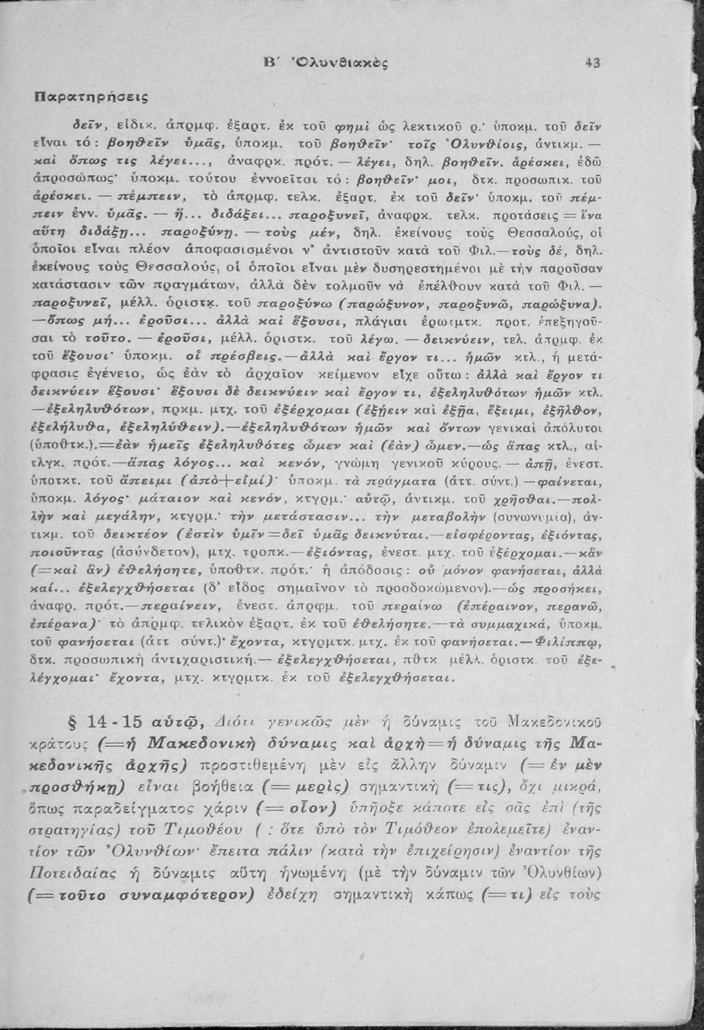 Μαθητικό βοήθημα Αρχαίων Ελληνικών Ε΄ Γυμνασίου που περιέχει τους Λόγους του Δημοσθένη Α΄ και Β΄ Ολυνθιακός μετάφραση, και ερμηνευτικά, γραμματικά και πραγματολογικά σχόλια.
