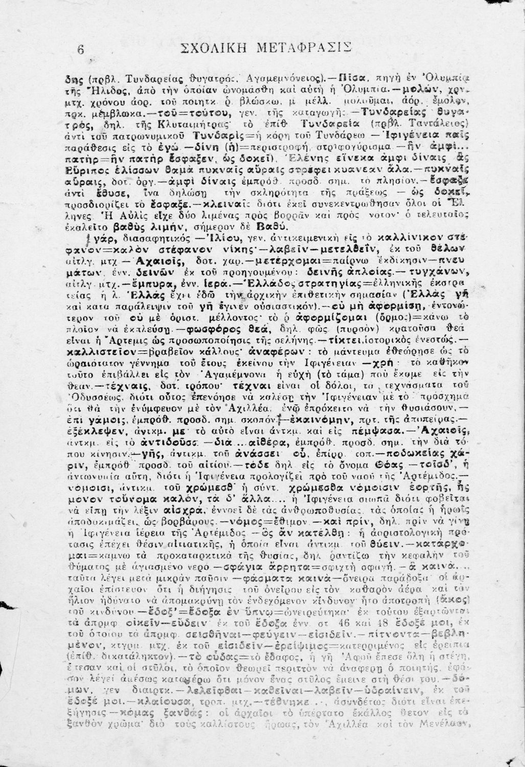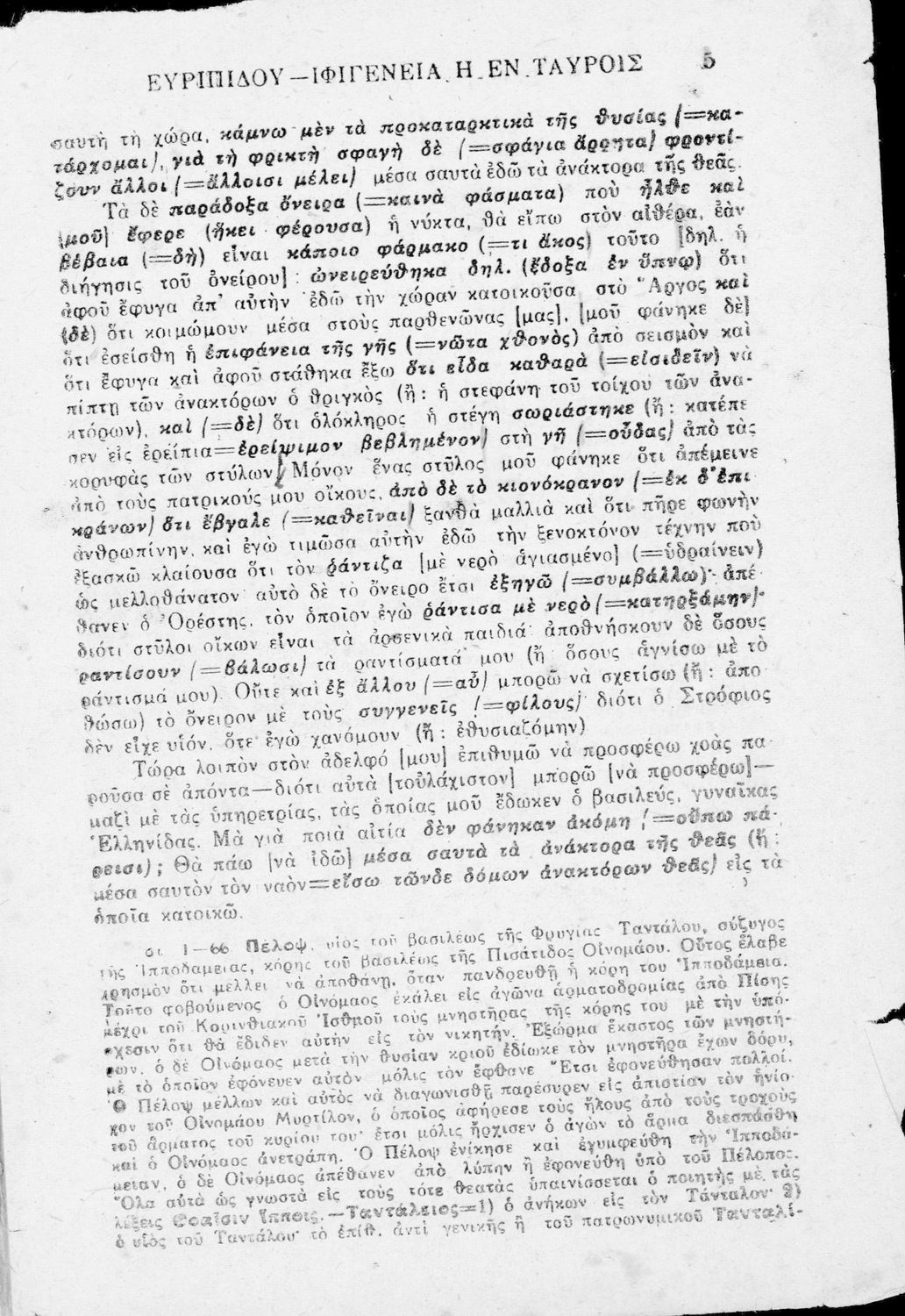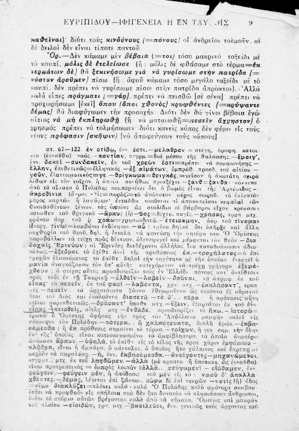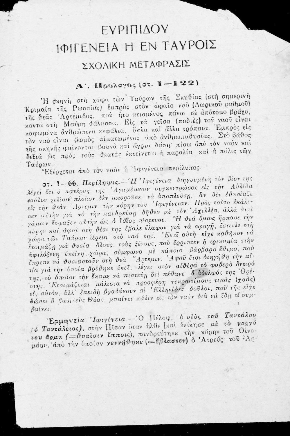 Μαθητικό βοήθημα Αρχαίων Ελληνικών που περιλαμβάνει περιλήψεις και γραμματικές, συντακτικές και πραγματολογικές παρατηρήσεις στην Ιφιγένεια η εν Ταύροις.