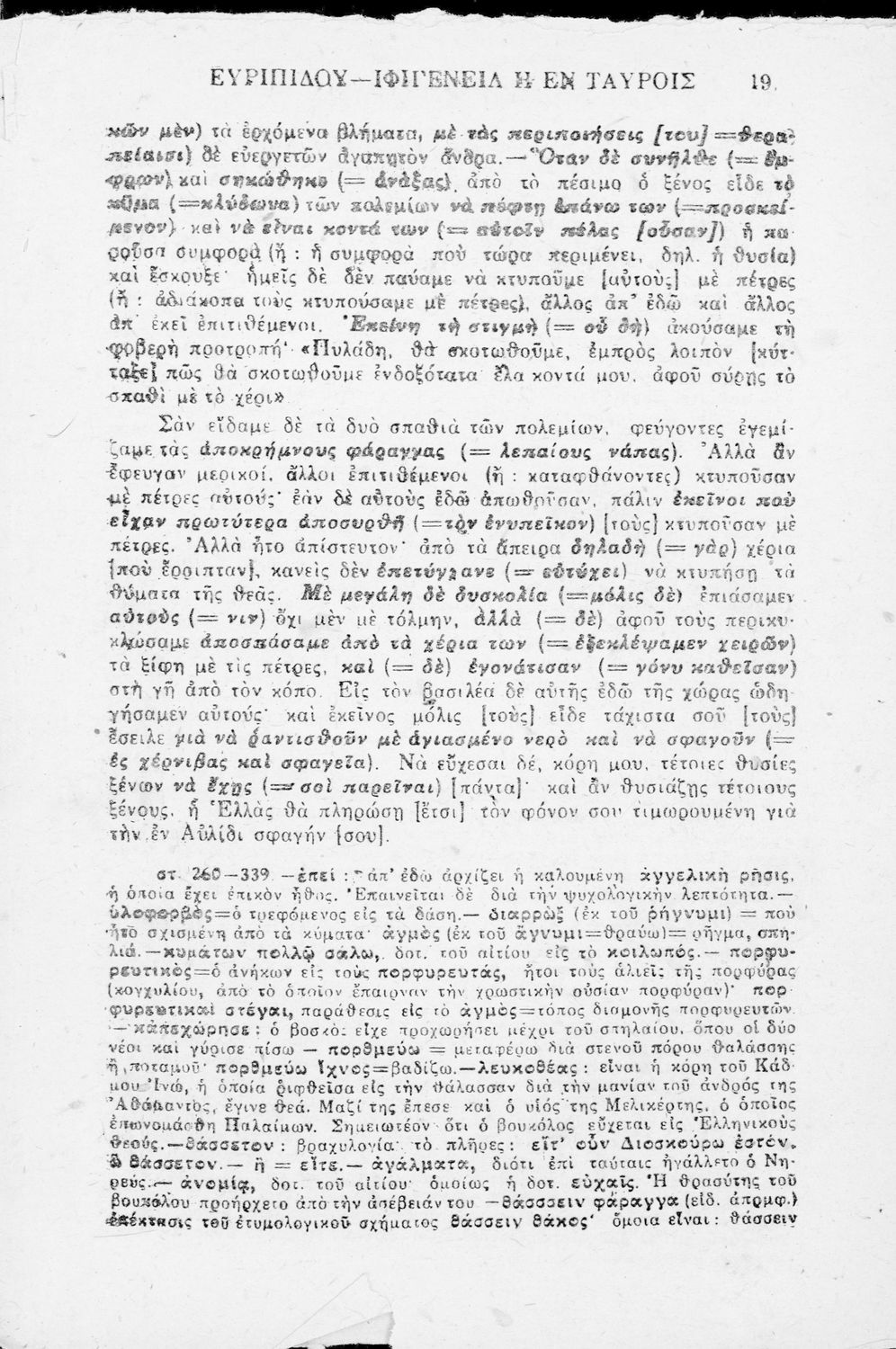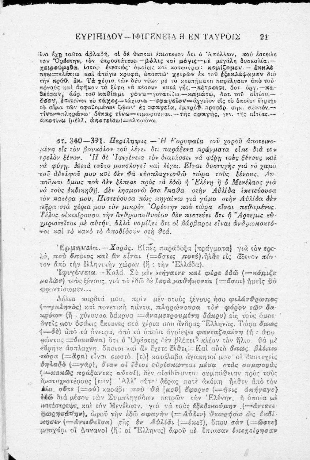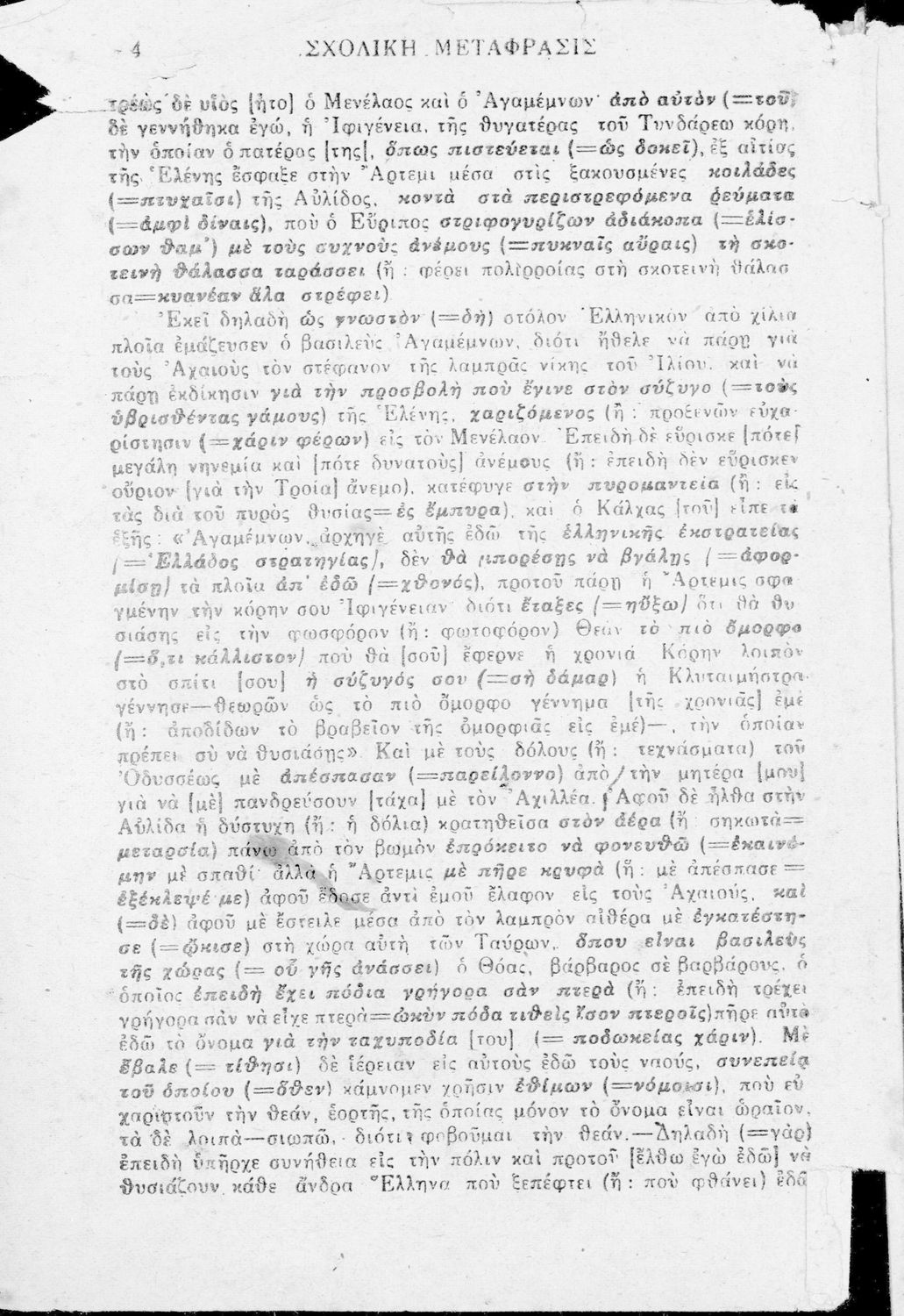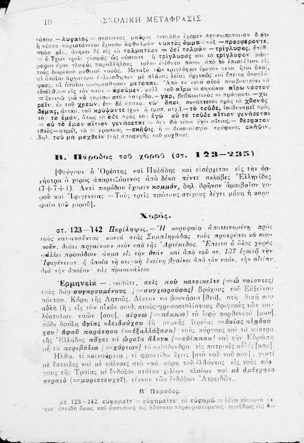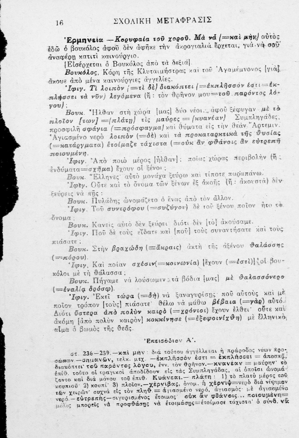 Μαθητικό βοήθημα Αρχαίων Ελληνικών που περιλαμβάνει περιλήψεις και γραμματικές, συντακτικές και πραγματολογικές παρατηρήσεις στην Ιφιγένεια η εν Ταύροις.