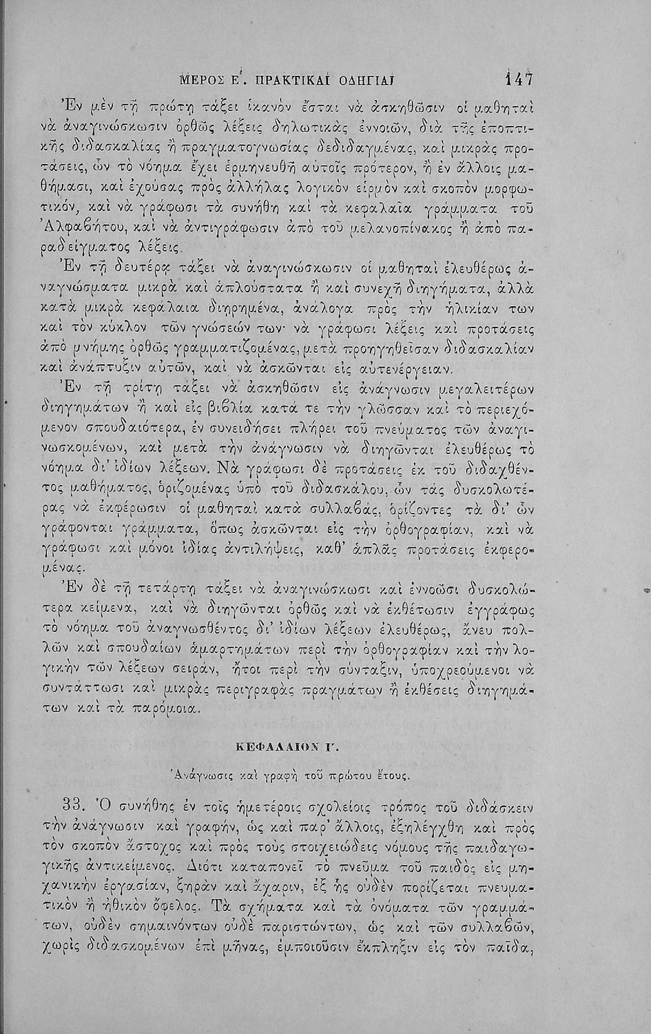 Τάξη:  Γ' Γυμνασίου / Α' Διδασκαλείου Αρρένων / Β' Διδασκαλείων Θηλέων