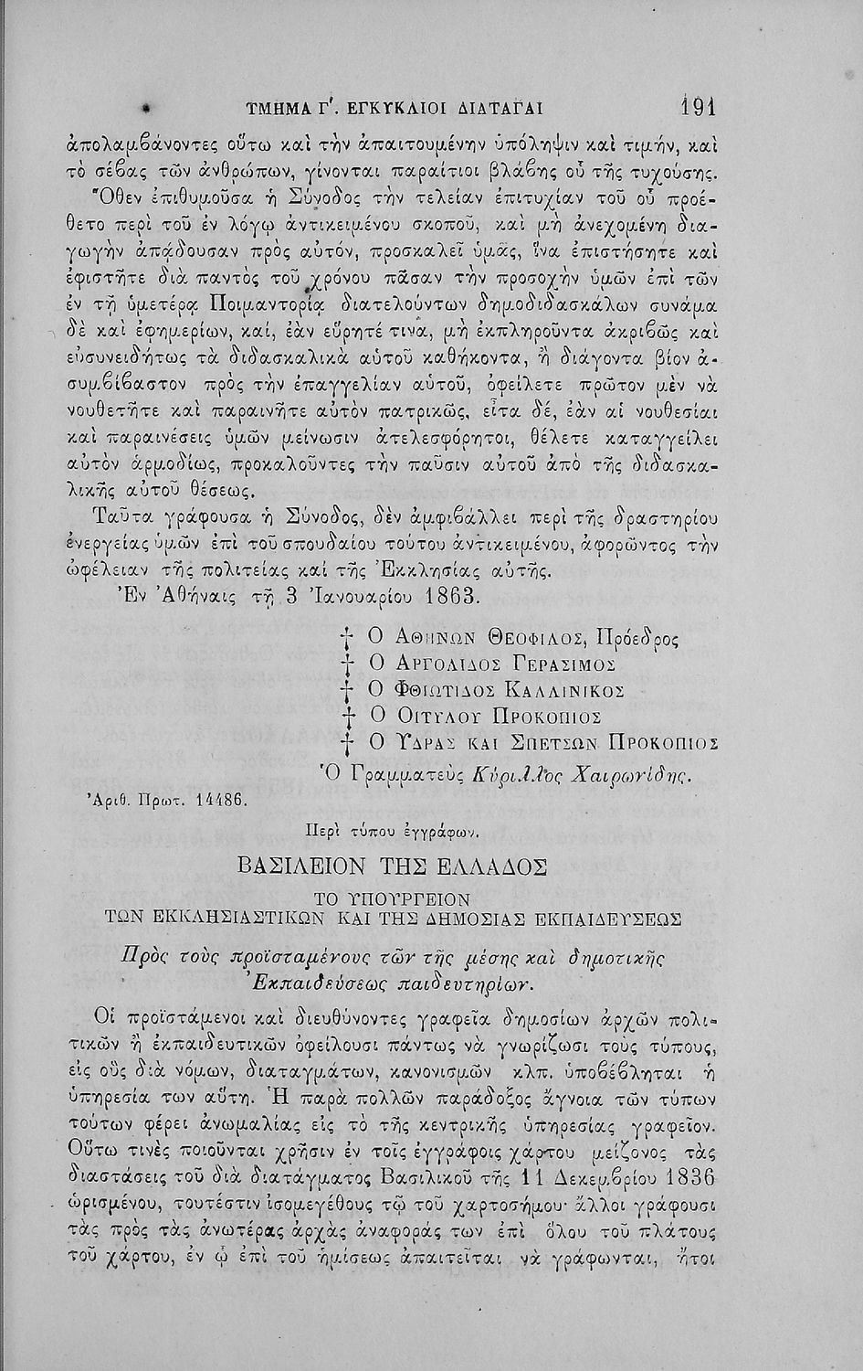 Τάξη:  Γ' Γυμνασίου / Α' Διδασκαλείου Αρρένων / Β' Διδασκαλείων Θηλέων