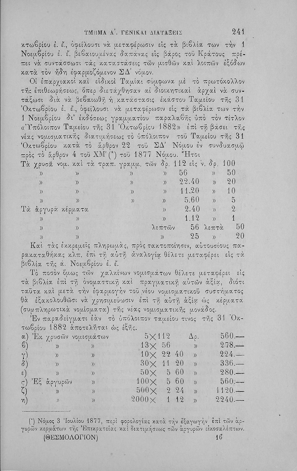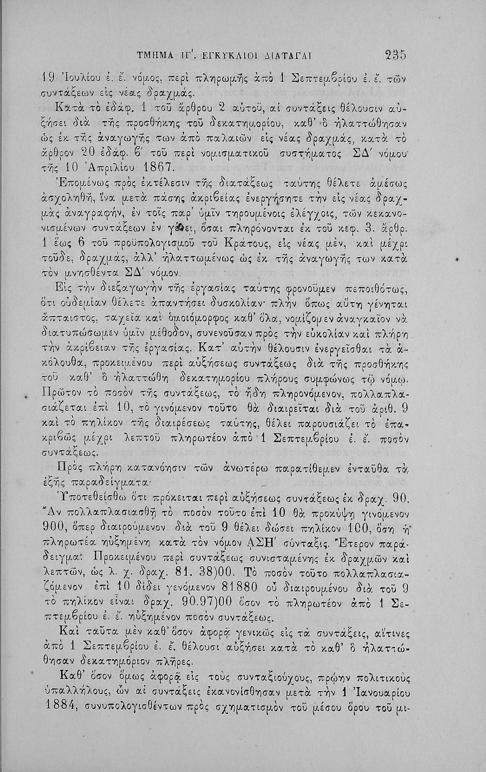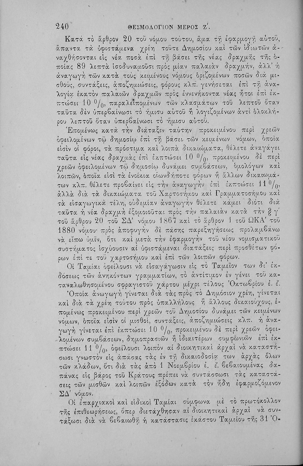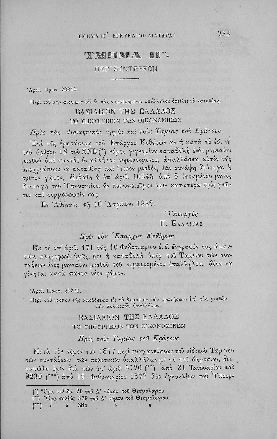 Έκδοση που περιλαμβάνει το σύνταγμα του 1864, νόμους, βασιλικά διατάγματα και εγκυκλίους της περιόδου 1883-1887 που αφορούν τη Δημοτική Εκπαίδευση και τους εκπαιδευτικούς και ιερείς. Ο συγγραφέας ήταν Γραμματέας Α’ τάξης του Υπουργείου στο τμήμα Δημοτικής Εκπαίδευσης.