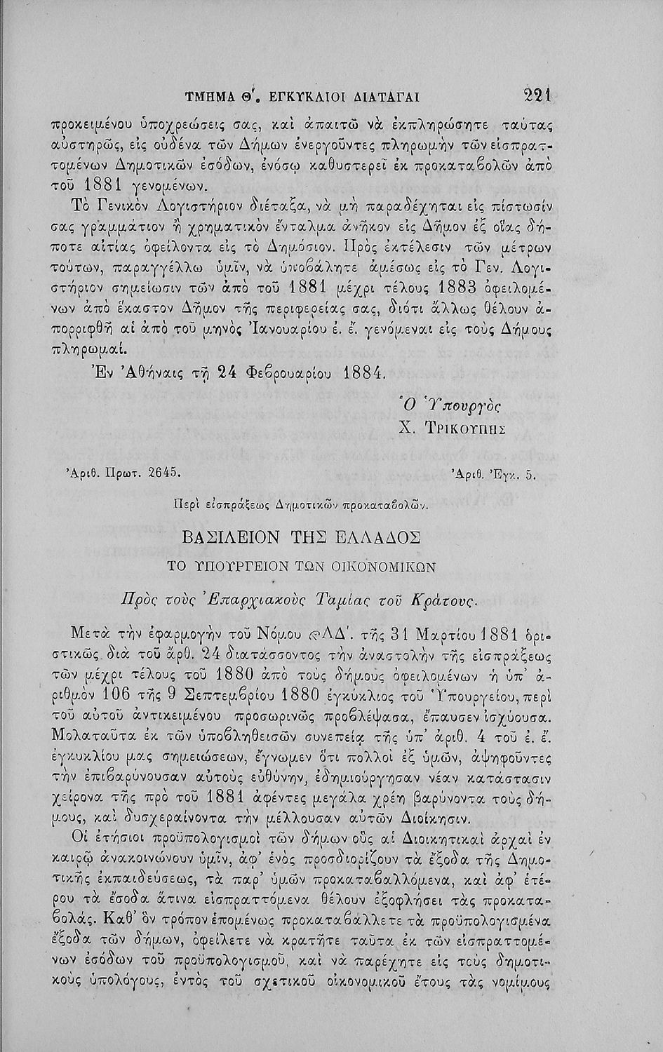 Υπουργική απόφαση / Σύμβαση: 1641/4-2-1887