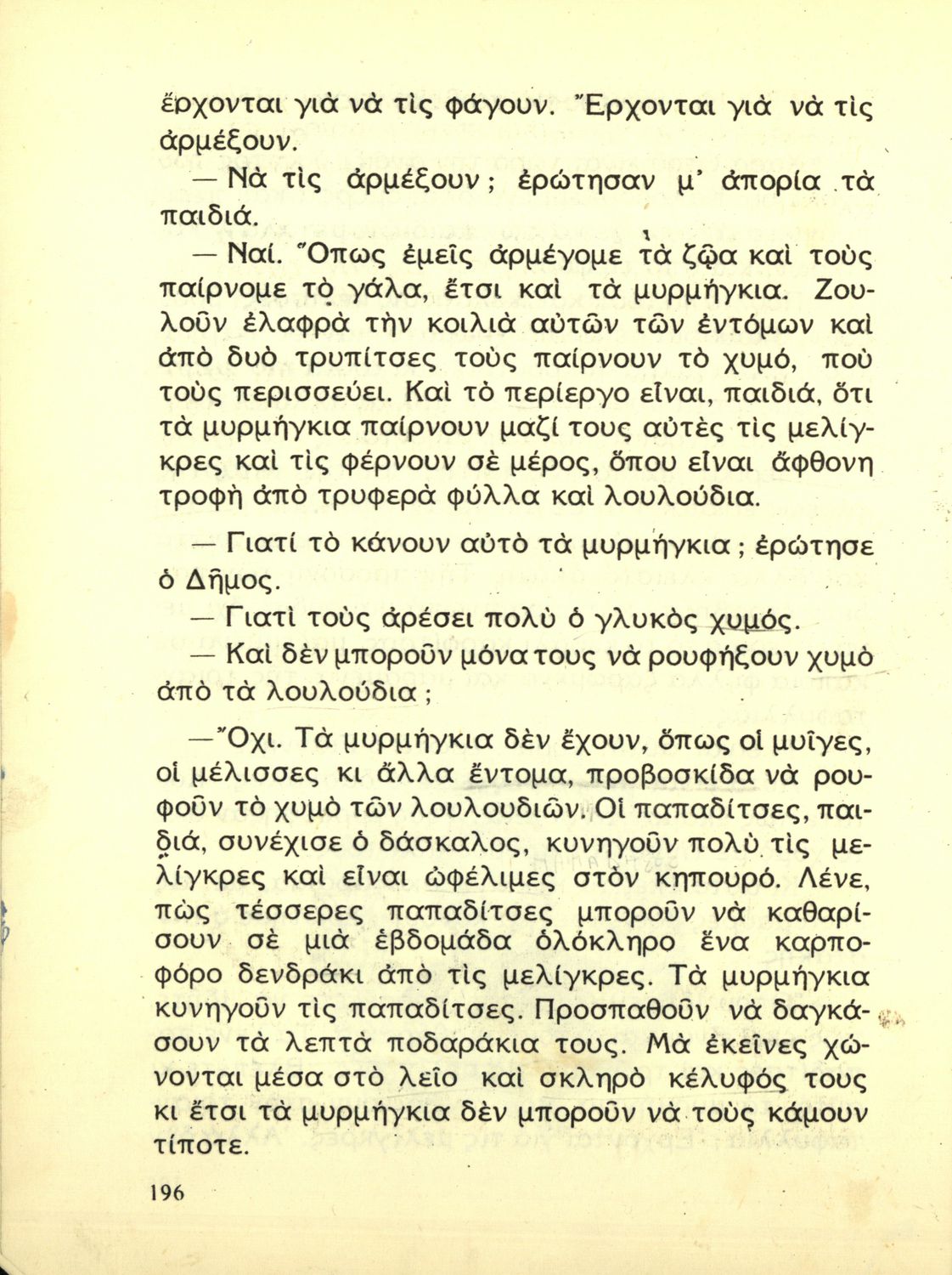 Αναγνωστικό Γ' Δημοτικού που είναι χωρισμένο σύμφωνα με τις εποχές του χρόνου και περιλαμβάνει ποιήματα και πεζά εμπνευσμένα από τη ζωή στην ύπαιθρο, την εθνική, οικογενειακή και κοινωνική ζωή, τη θρησκευτική παράδοση, τις ασχολίες των ανθρώπων, και την ελληνική φύση.
