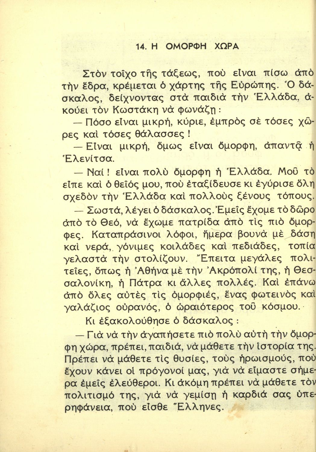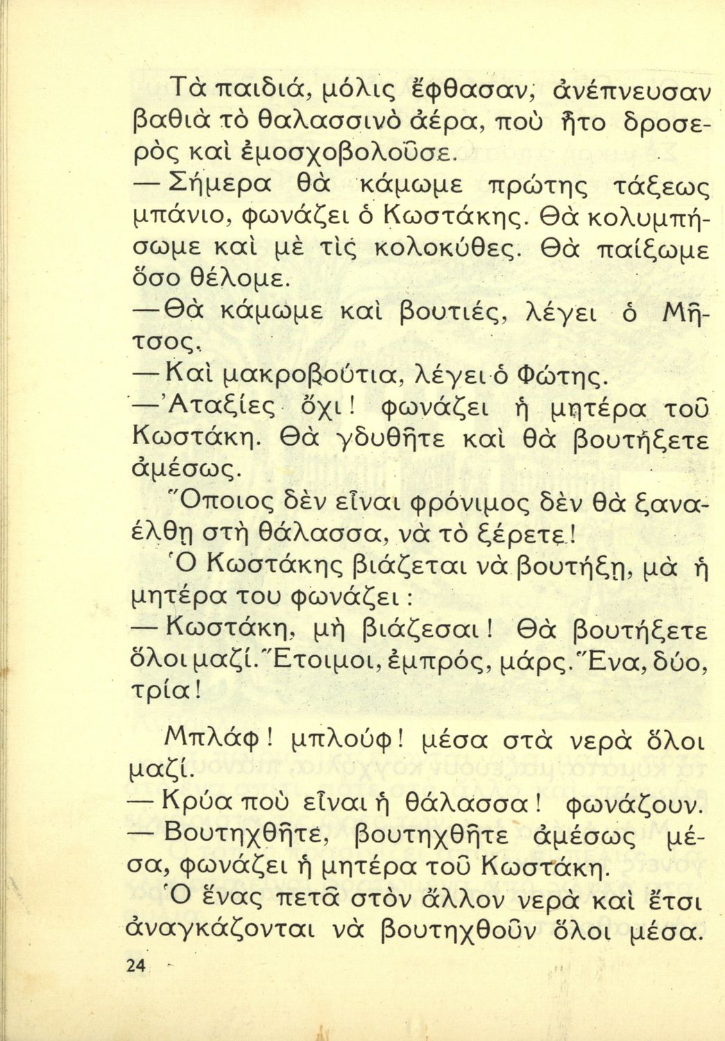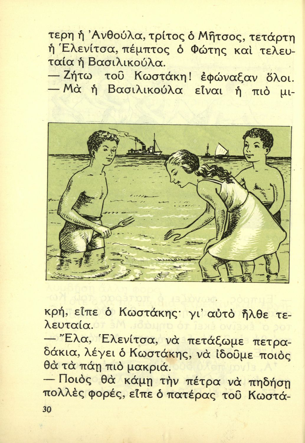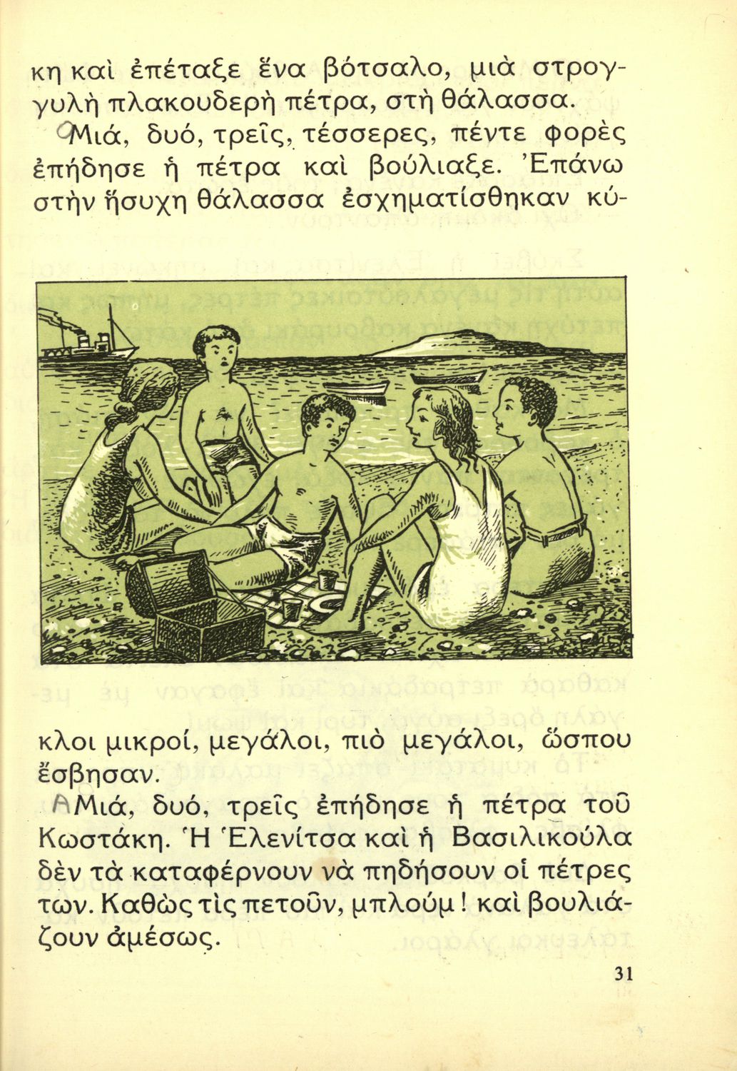 Αναγνωστικό της Γ΄ Δημοτικού που περιλαμβάνει μικρές ιστορίες εθνικιστικού περιεχομένου εμπνευσμένες από την ύπαιθρο, την οικογενειακή και κοινωνική ζωή αλλά και το εθνικό παρελθόν.