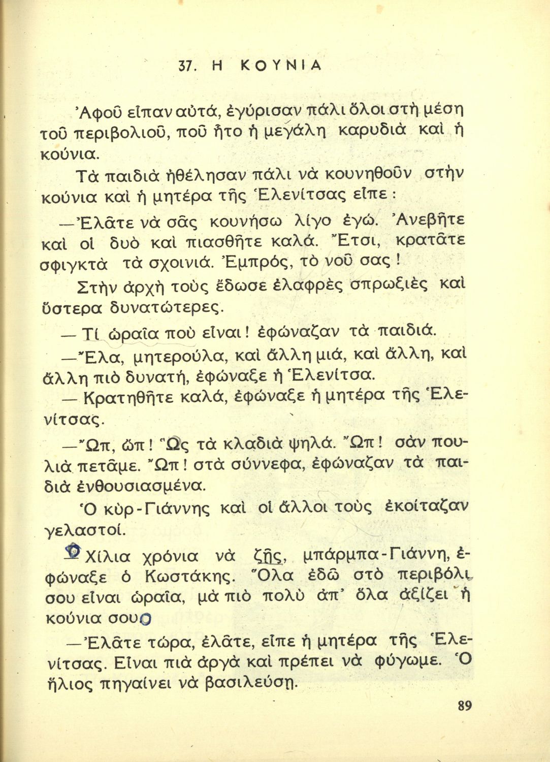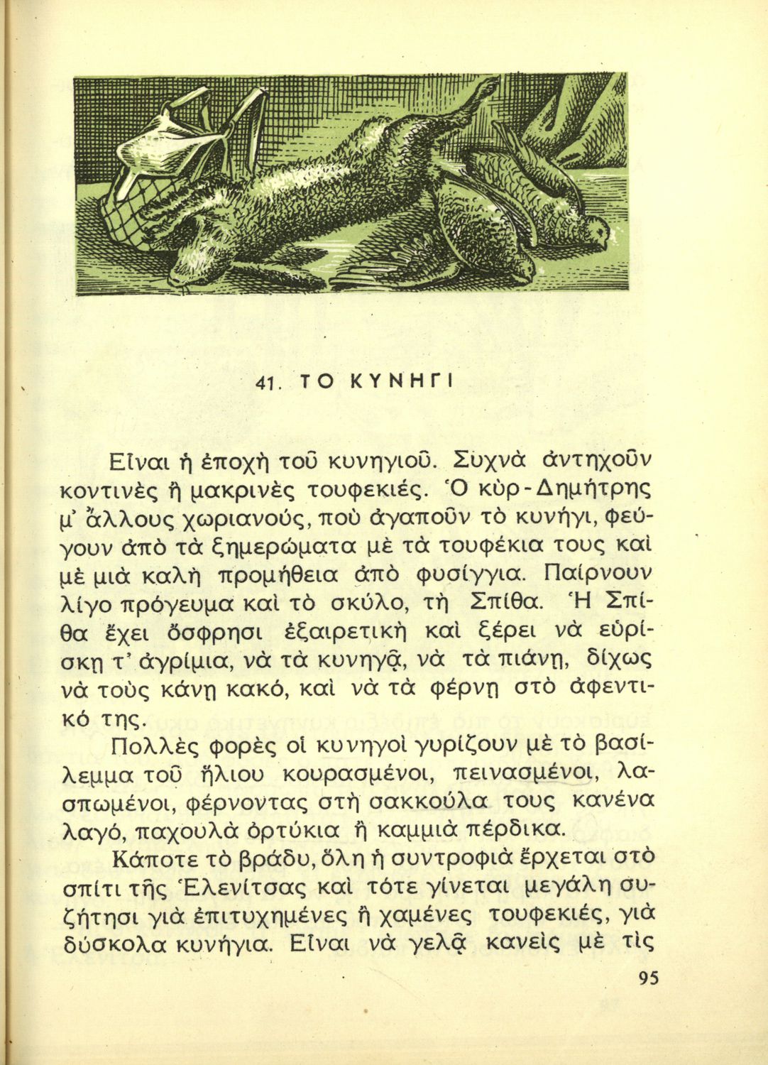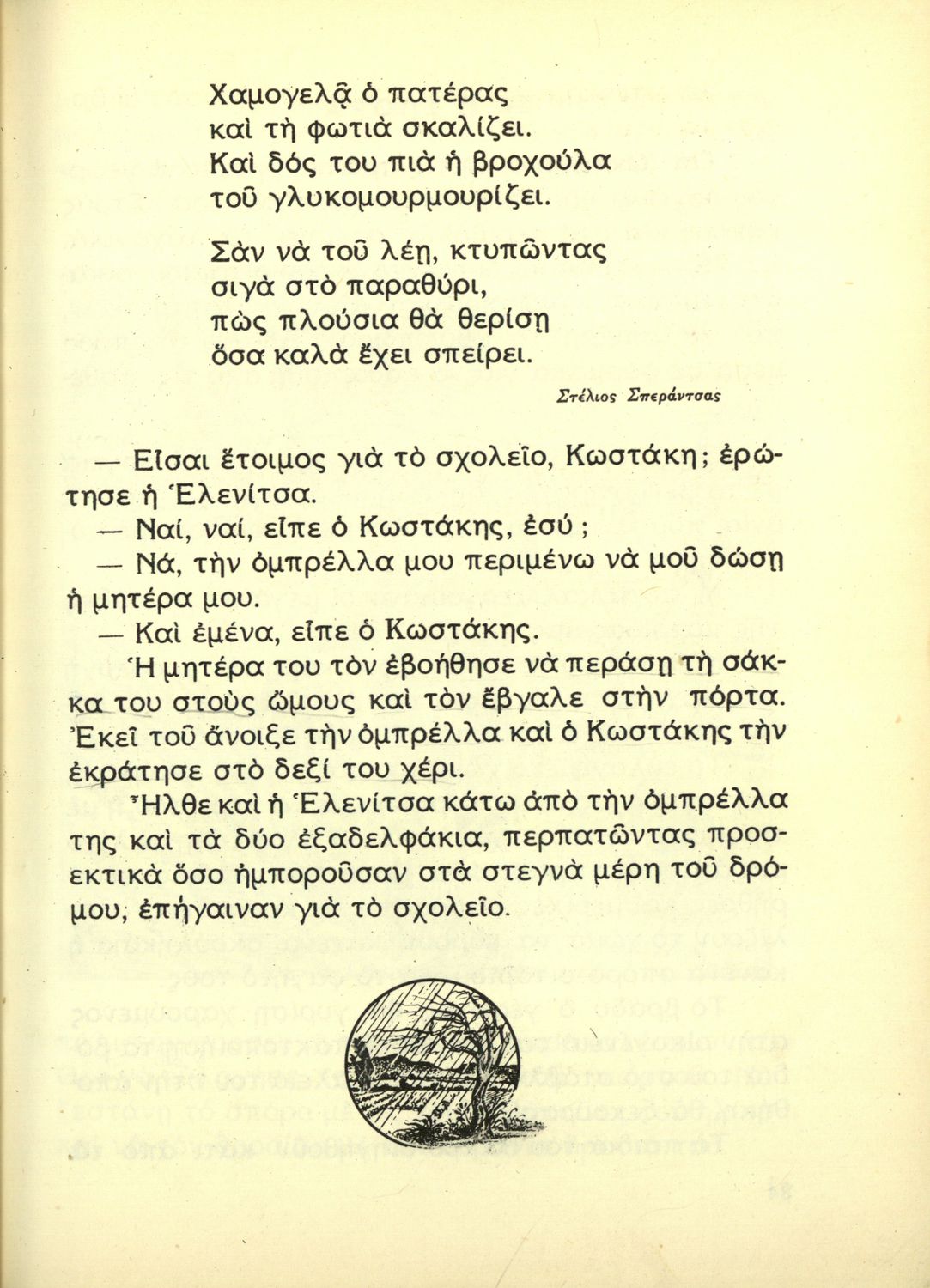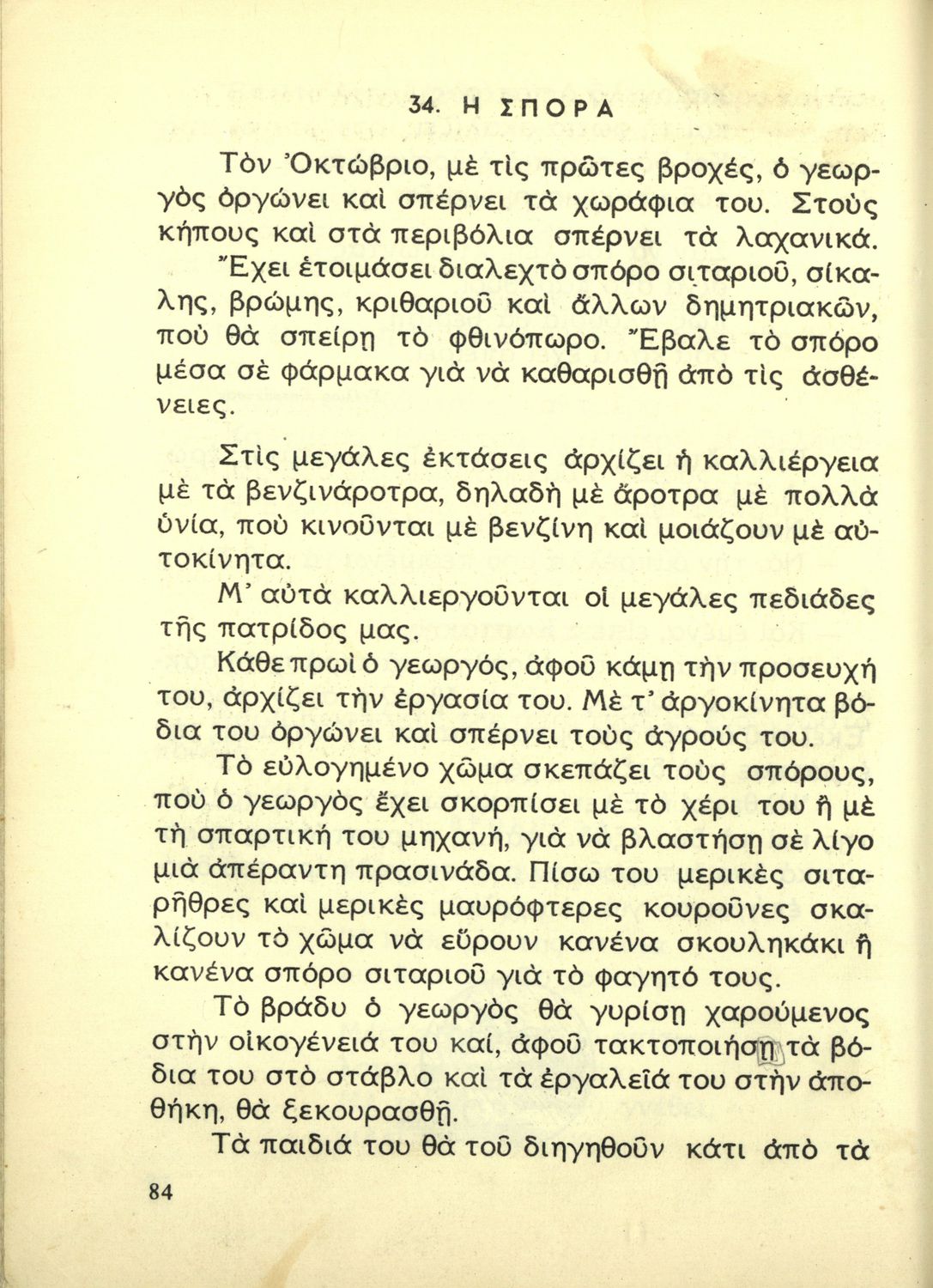 Αναγνωστικό της Γ΄ Δημοτικού που περιλαμβάνει μικρές ιστορίες εθνικιστικού περιεχομένου εμπνευσμένες από την ύπαιθρο, την οικογενειακή και κοινωνική ζωή αλλά και το εθνικό παρελθόν.