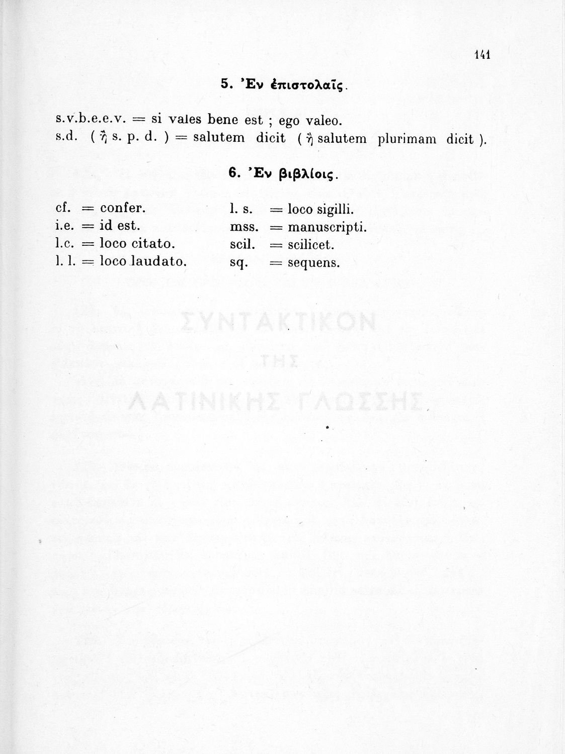 Σχολικό εγχειρίδιο Λατινικών Α΄, Β΄ και Γ΄ Λυκείου που περιλαμβάνει γραμματική και συντακτικό και είναι χωρισμένο σε φθογγολογικό, τυπολογικό και ετυμολογικό μέρος.