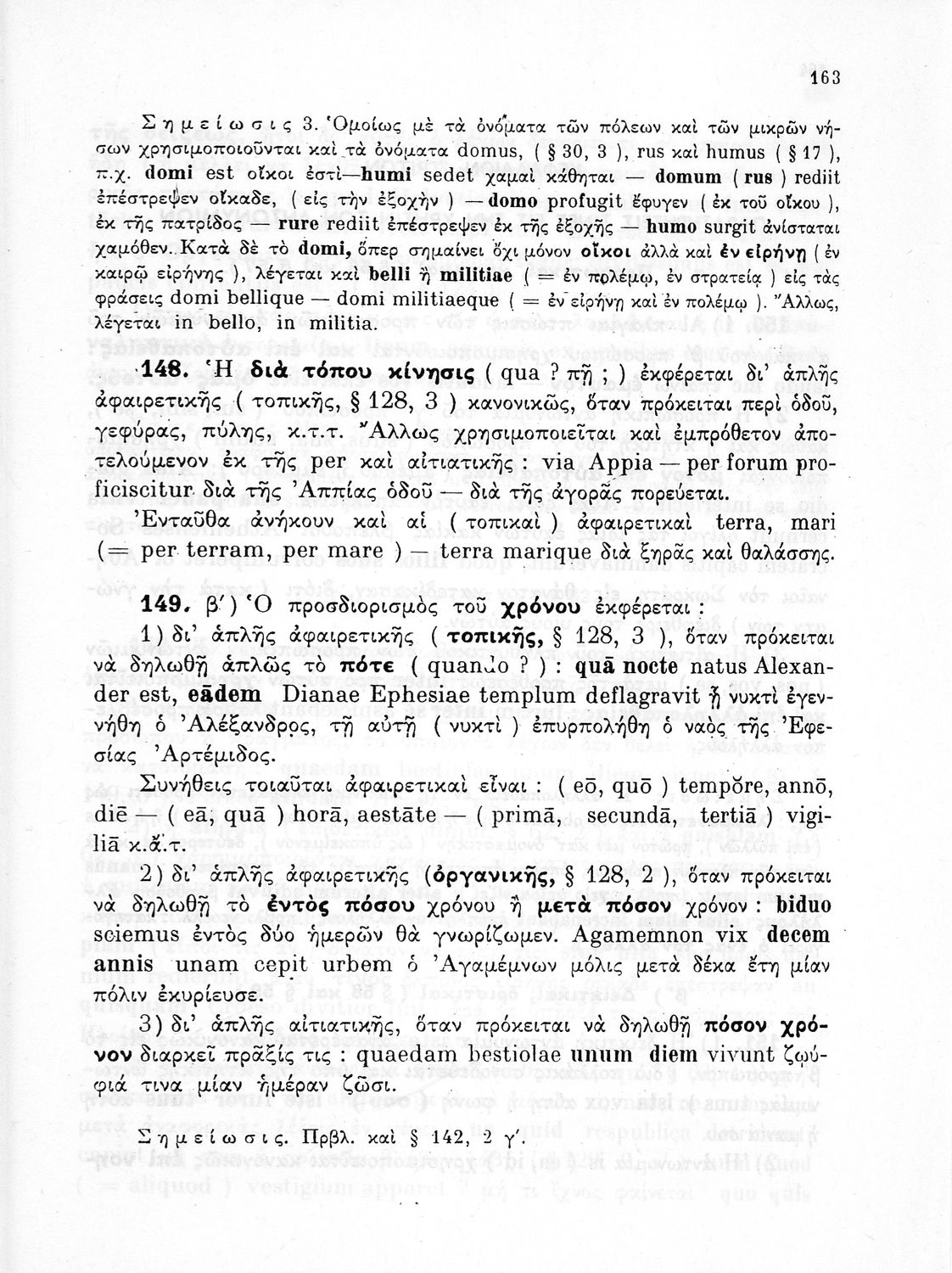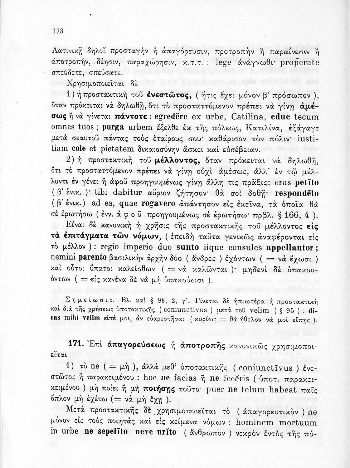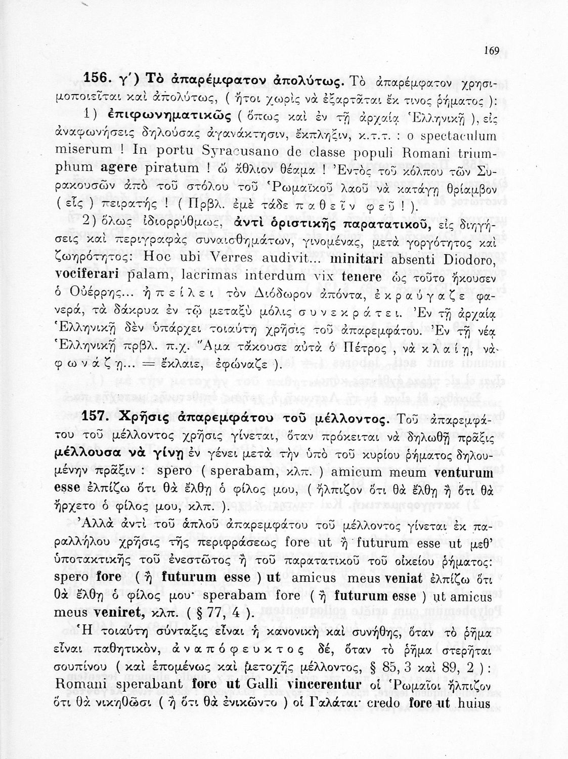 Σχολικό εγχειρίδιο Λατινικών Α΄, Β΄, Γ' Γυμνασίου που περιλαμβάνει γραμματική και συντακτικό και είναι χωρισμένο σε φθογγολογικό, τυπολογικό και ετυμολογικό μέρος.