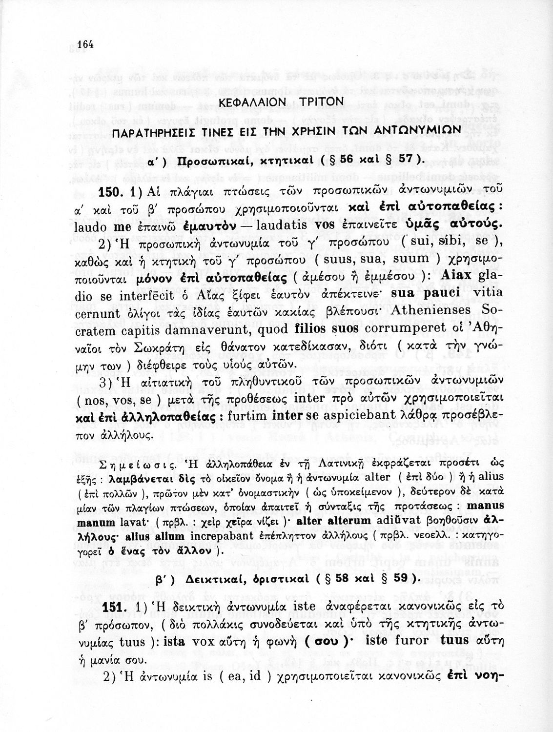 Σχολικό εγχειρίδιο Λατινικών Α΄, Β΄ και Γ΄ Λυκείου που περιλαμβάνει γραμματική και συντακτικό και είναι χωρισμένο σε φθογγολογικό, τυπολογικό και ετυμολογικό μέρος.