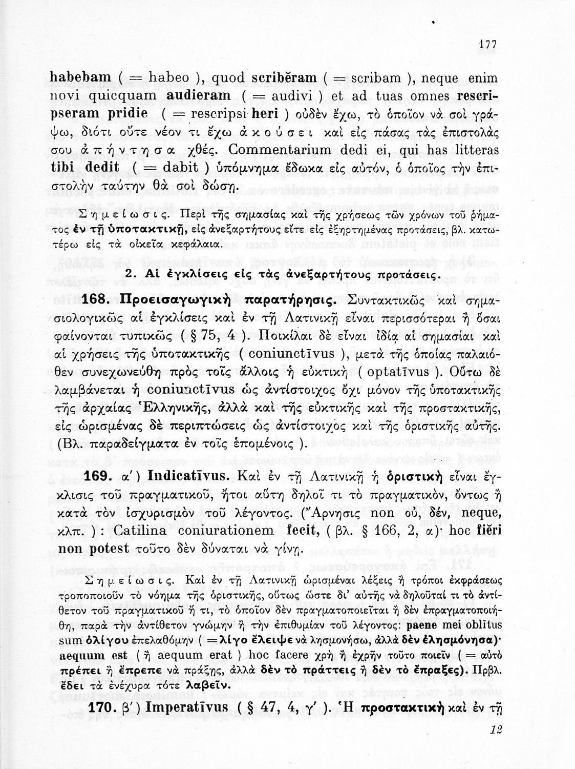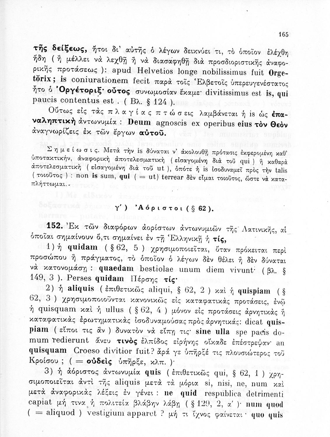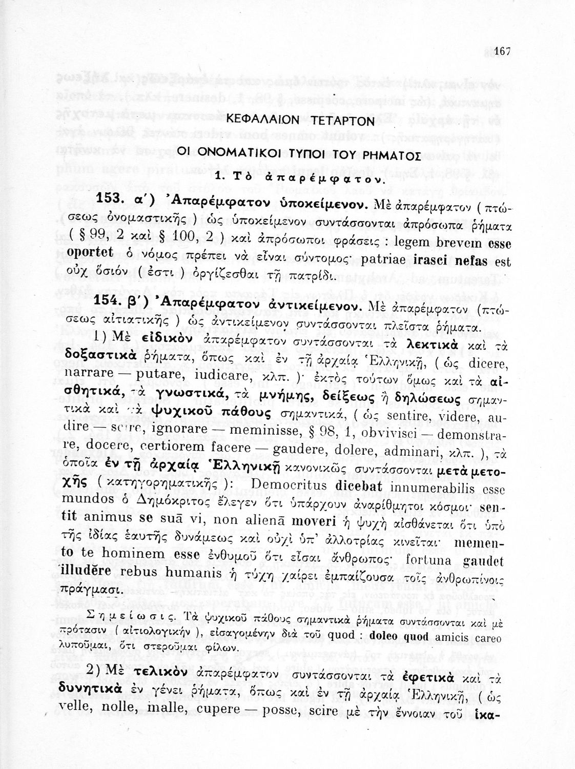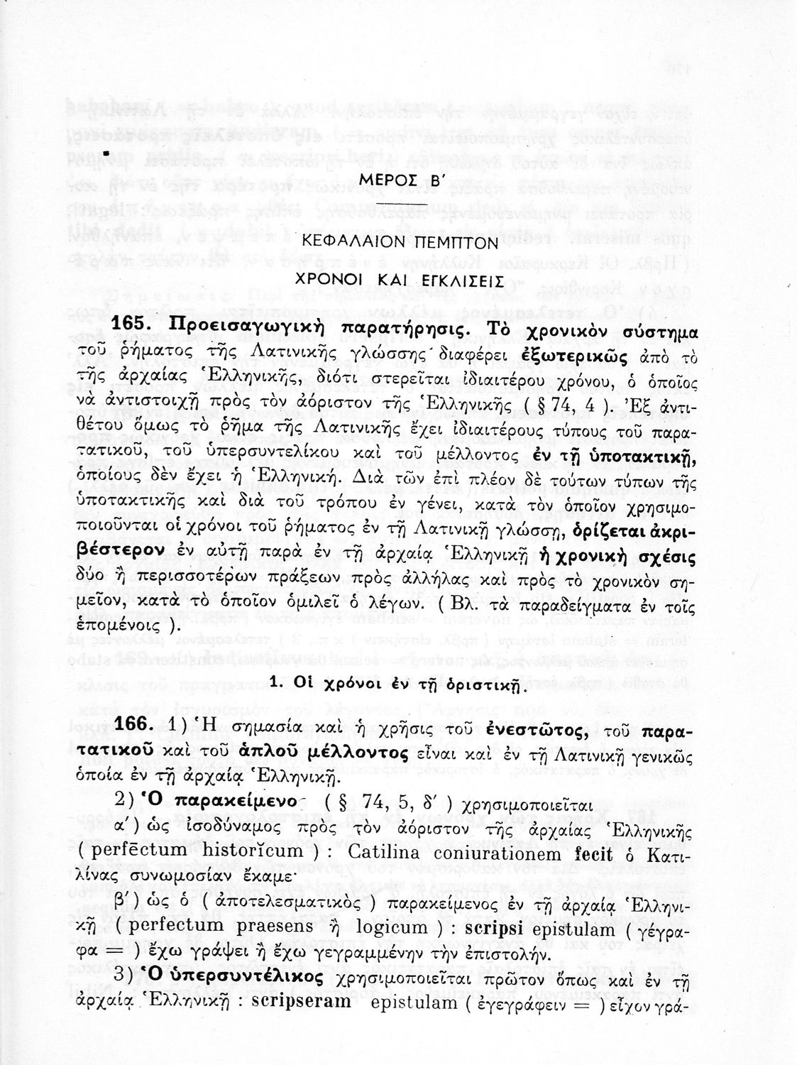 Σχολικό εγχειρίδιο Λατινικών Γυμνασίου που περιλαμβάνει γραμματική και συντακτικό και είναι χωρισμένο σε φθογγολογικό, τυπολογικό και ετυμολογικό μέρος.