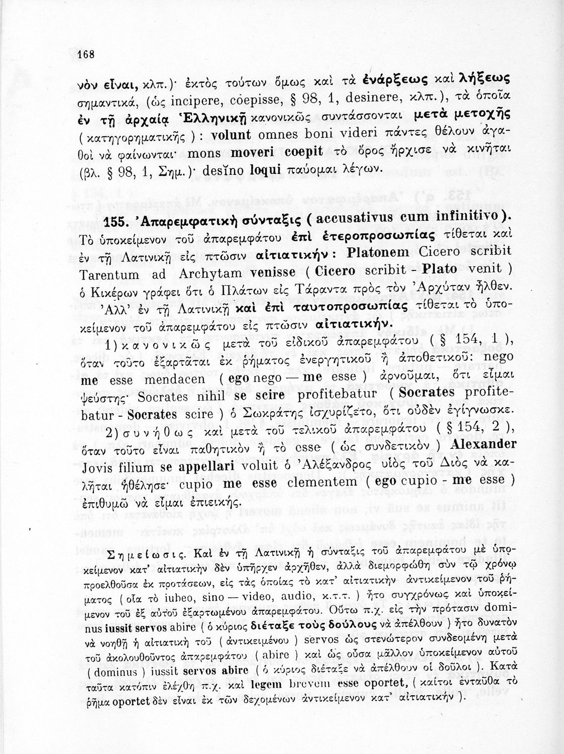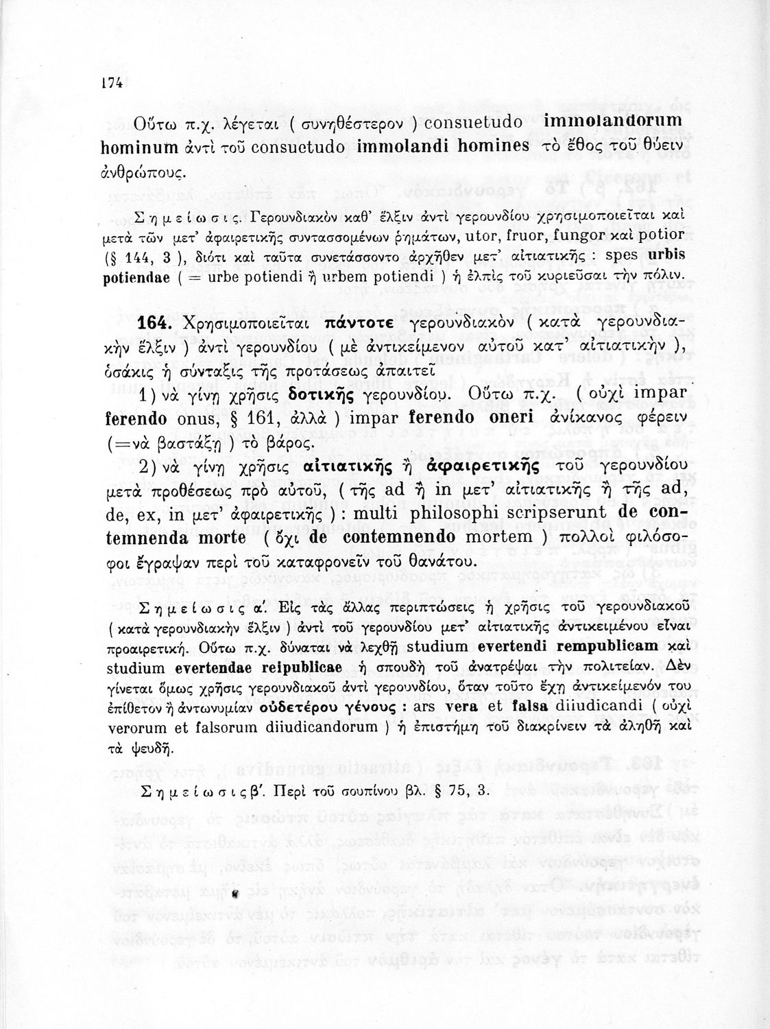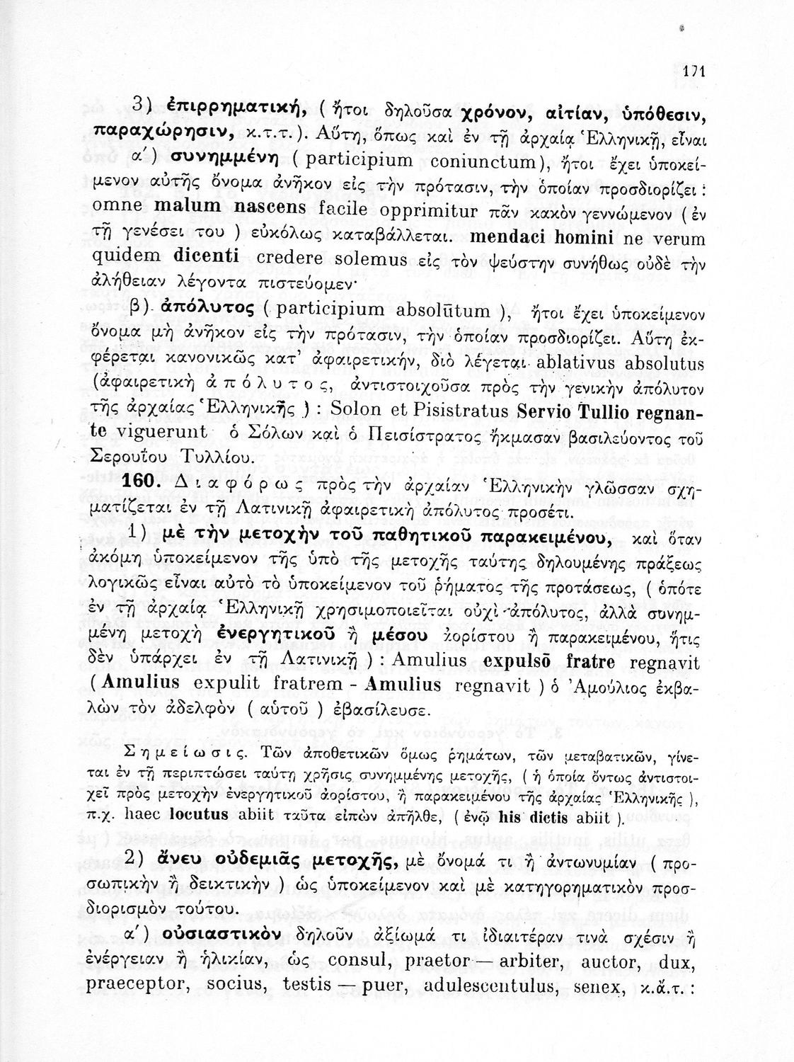 Σχολικό εγχειρίδιο Λατινικών Γυμνασίου που περιλαμβάνει γραμματική και συντακτικό και είναι χωρισμένο σε φθογγολογικό, τυπολογικό και ετυμολογικό μέρος.