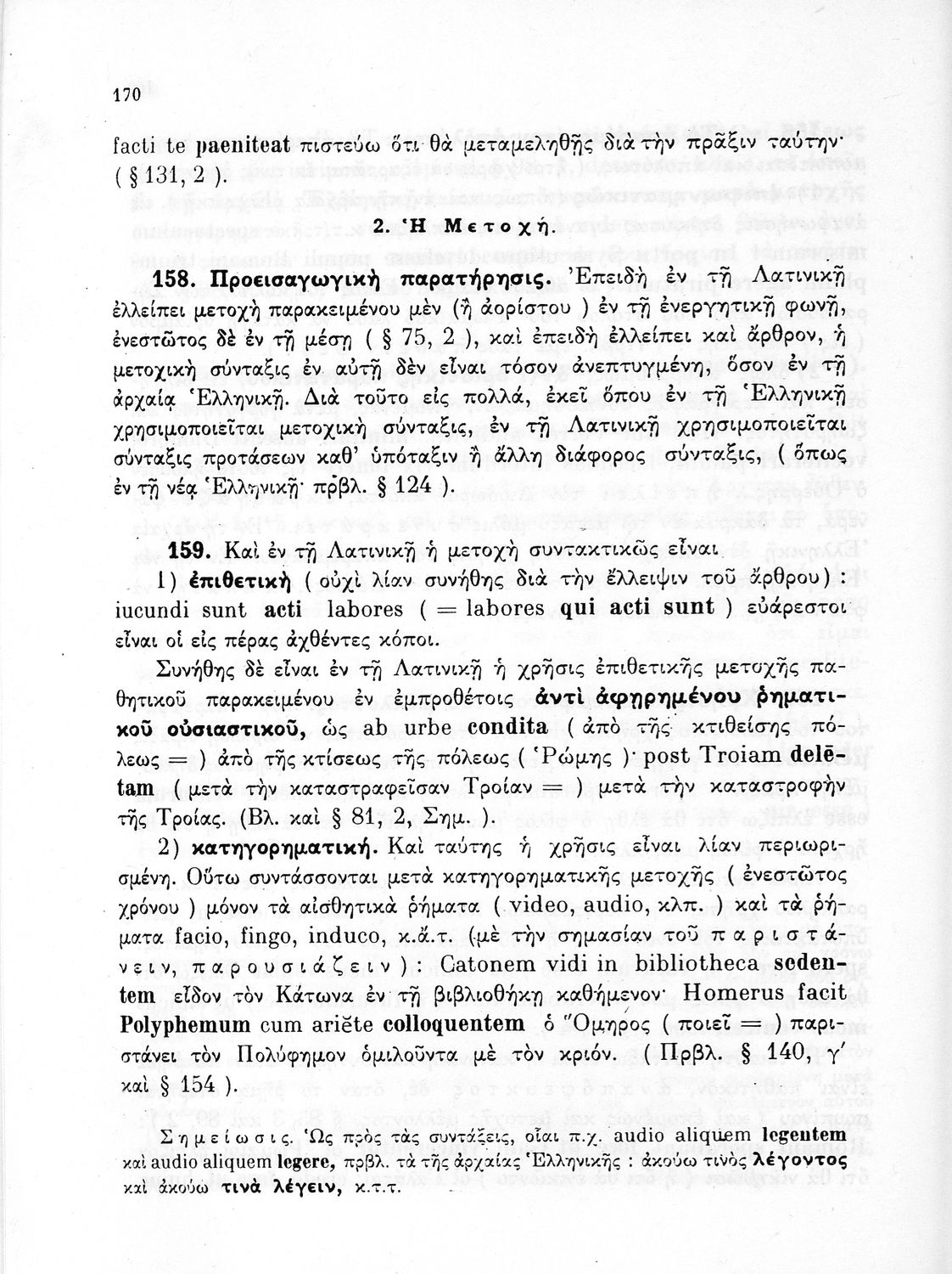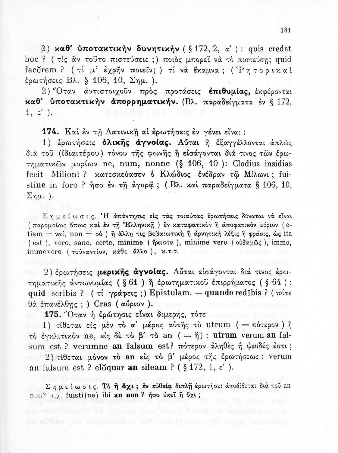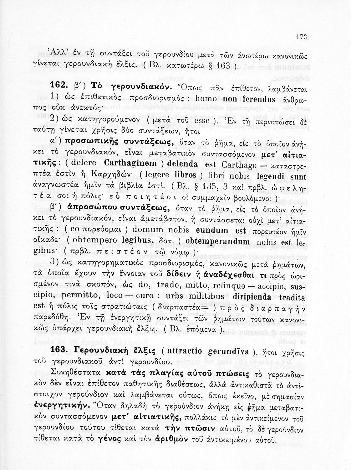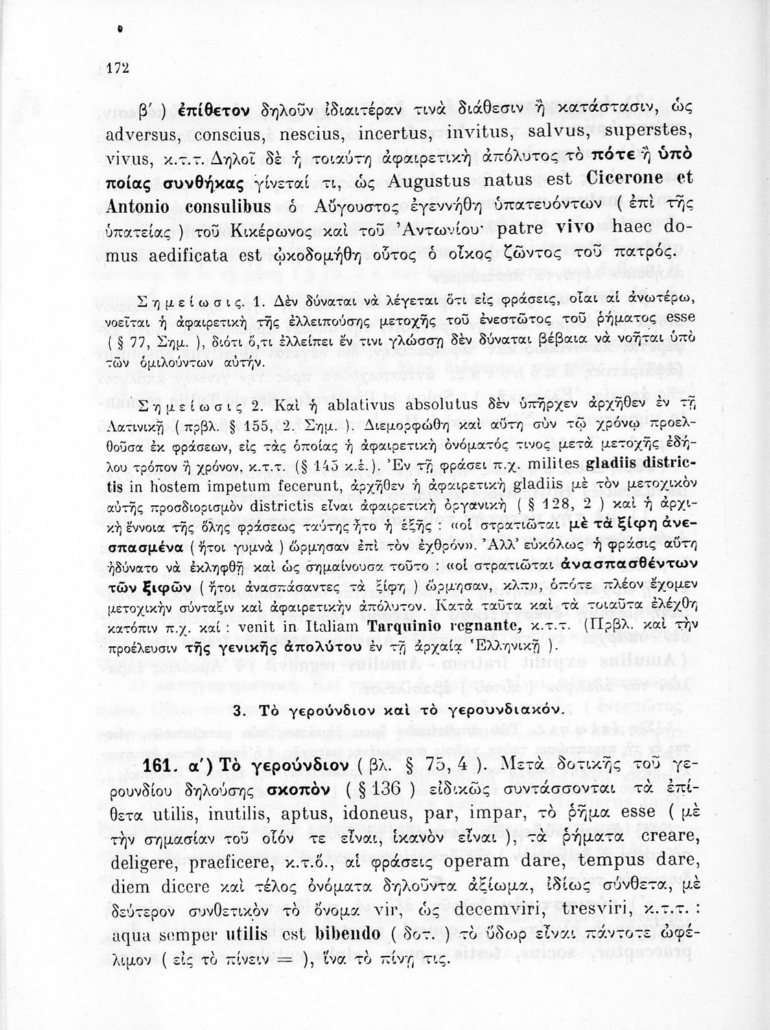 Σχολικό εγχειρίδιο Λατινικών Γυμνασίου που περιλαμβάνει γραμματική και συντακτικό και είναι χωρισμένο σε φθογγολογικό, τυπολογικό και ετυμολογικό μέρος.