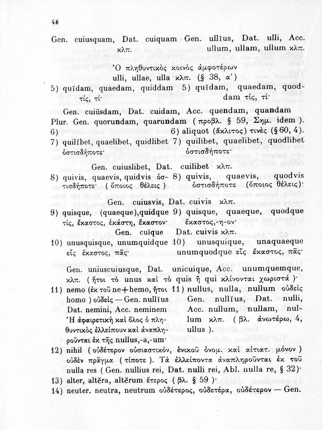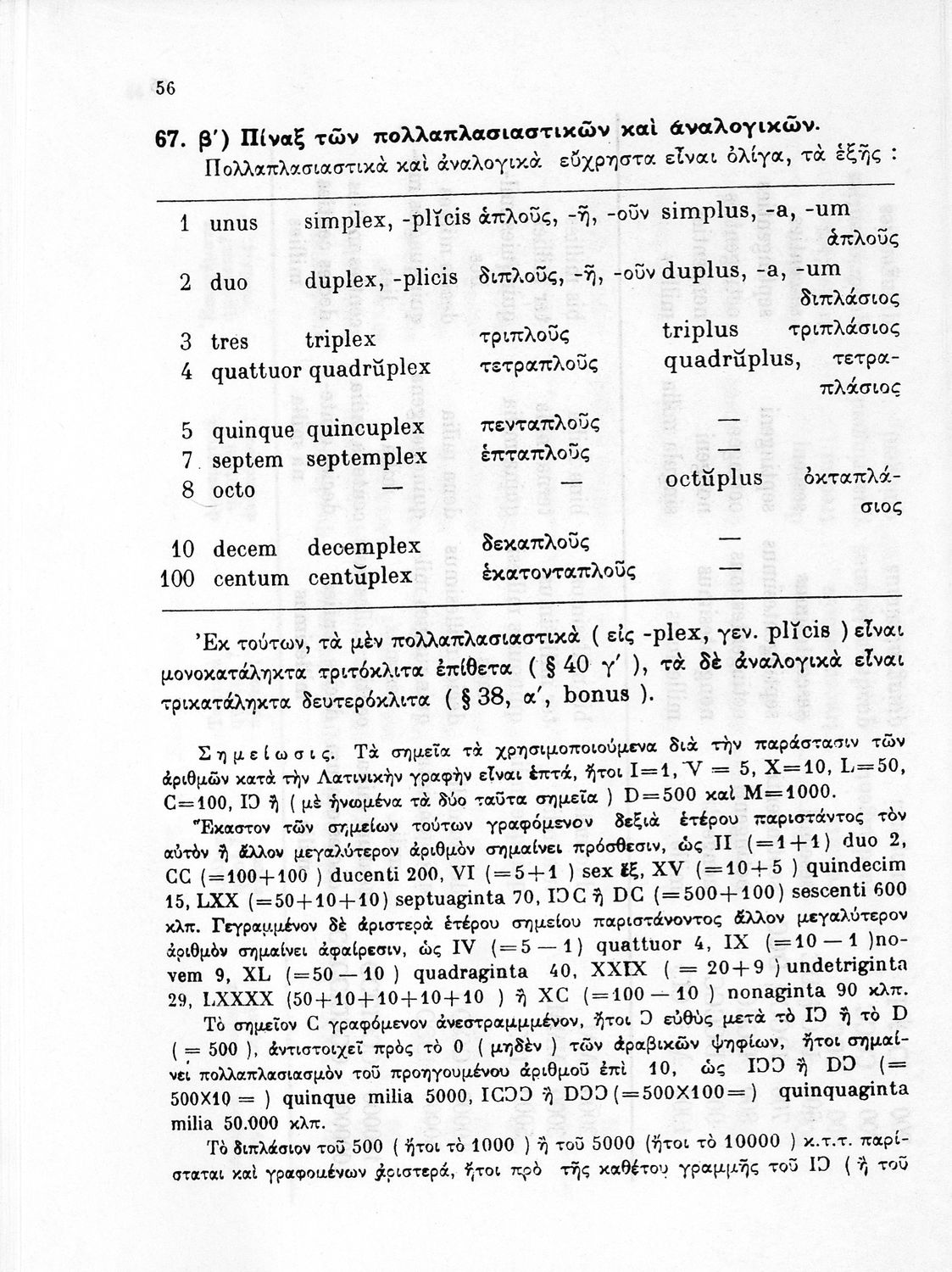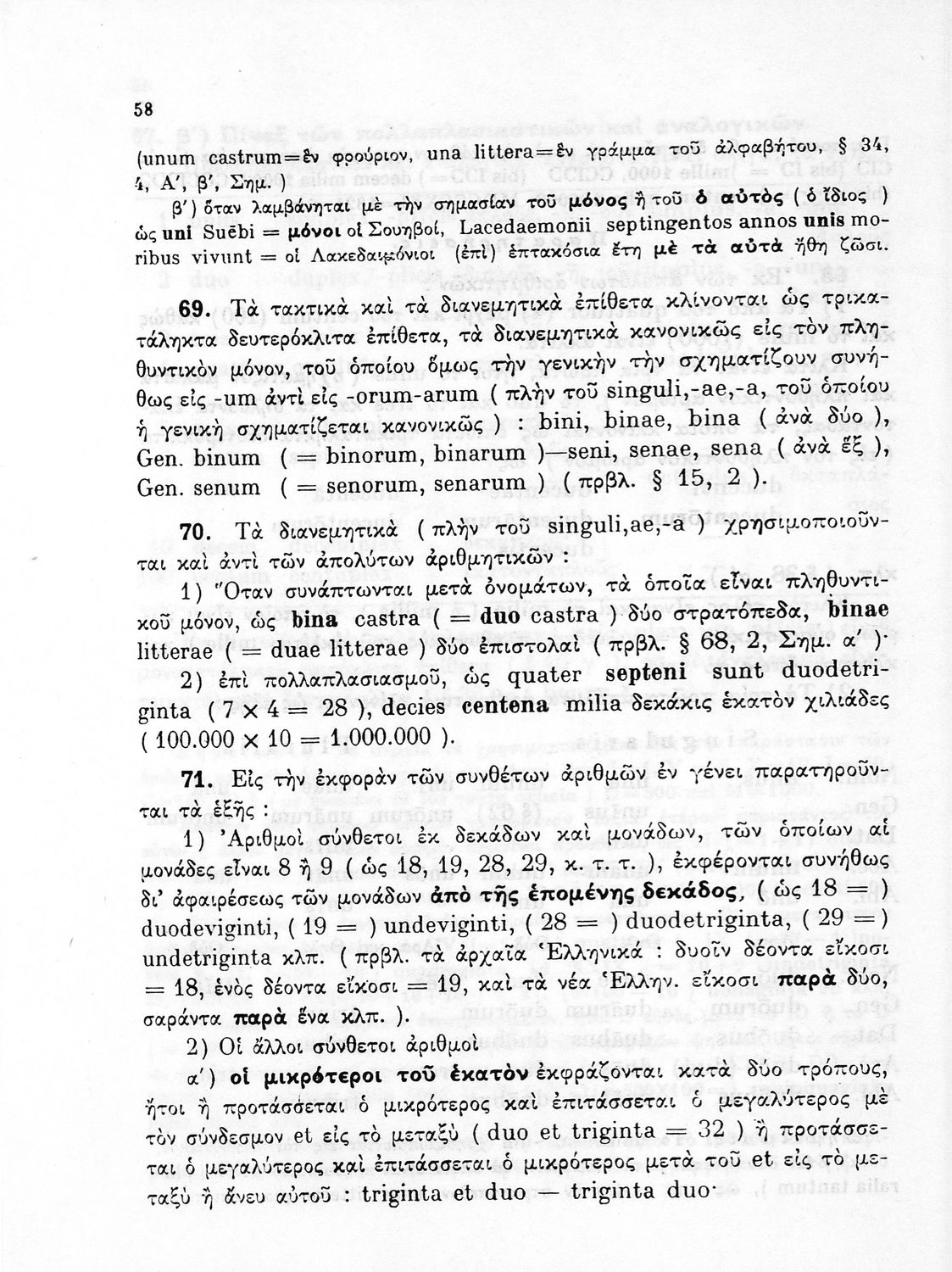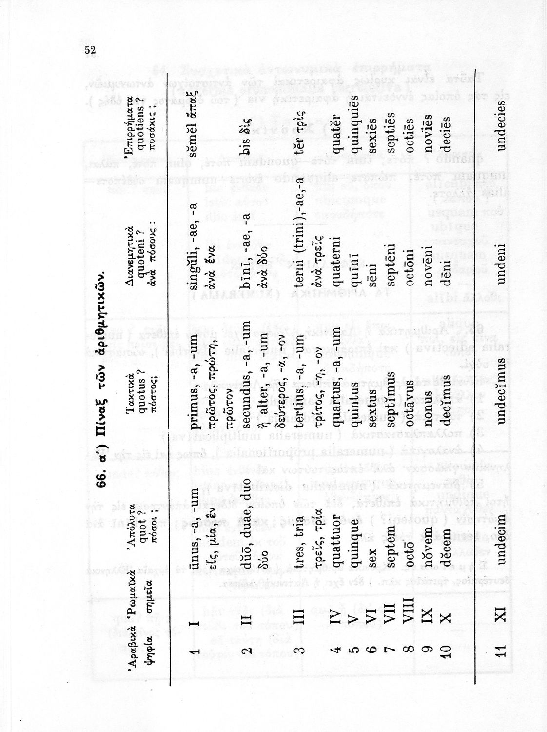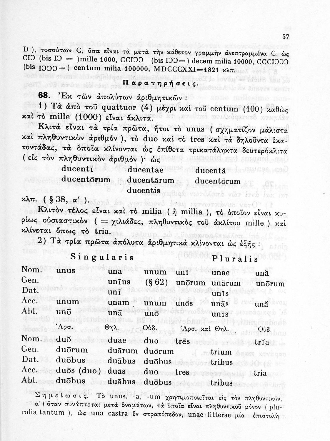 Σχολικό εγχειρίδιο Λατινικών Γυμνασίου που περιλαμβάνει γραμματική και συντακτικό και είναι χωρισμένο σε φθογγολογικό, τυπολογικό και ετυμολογικό μέρος.