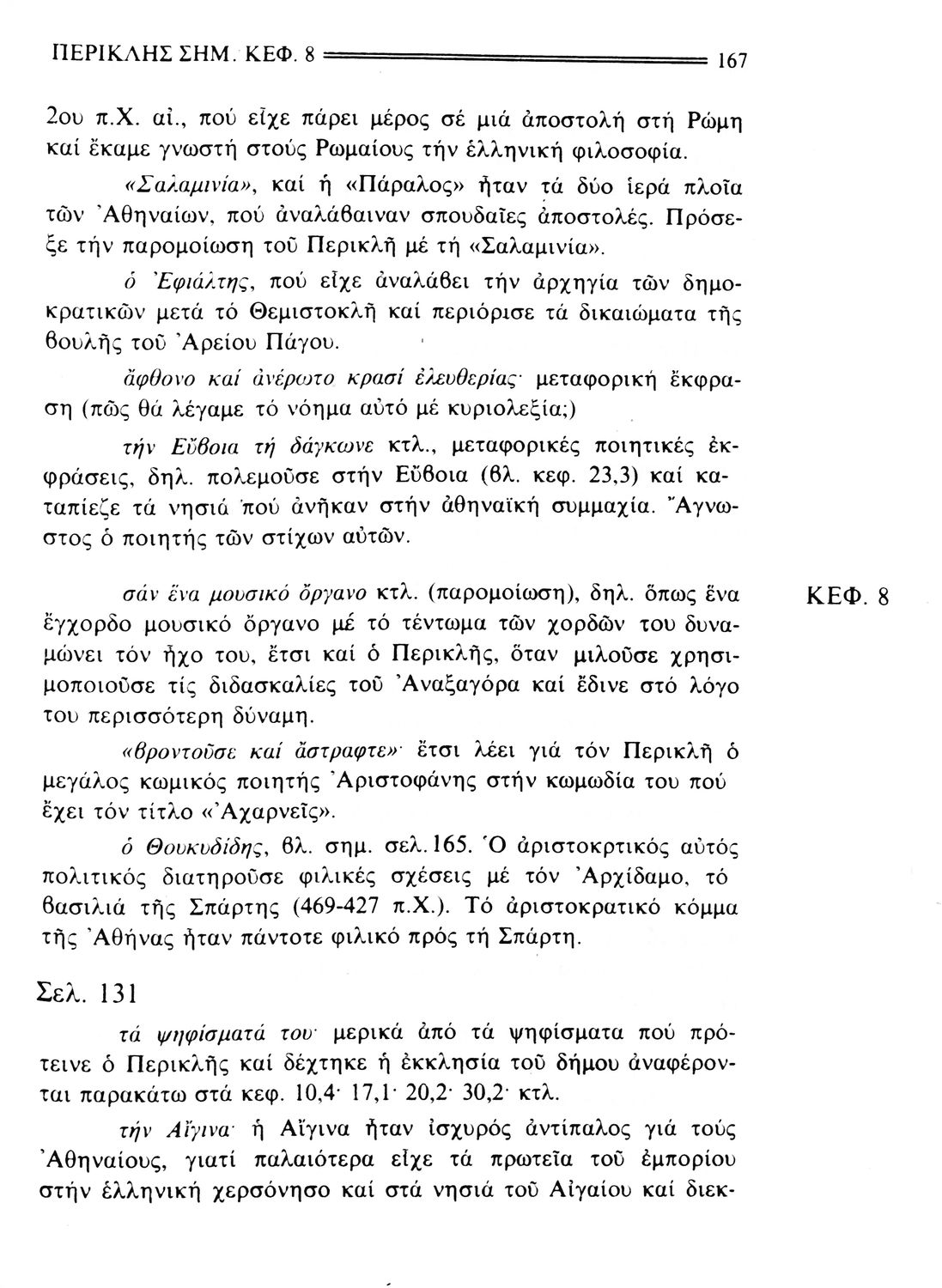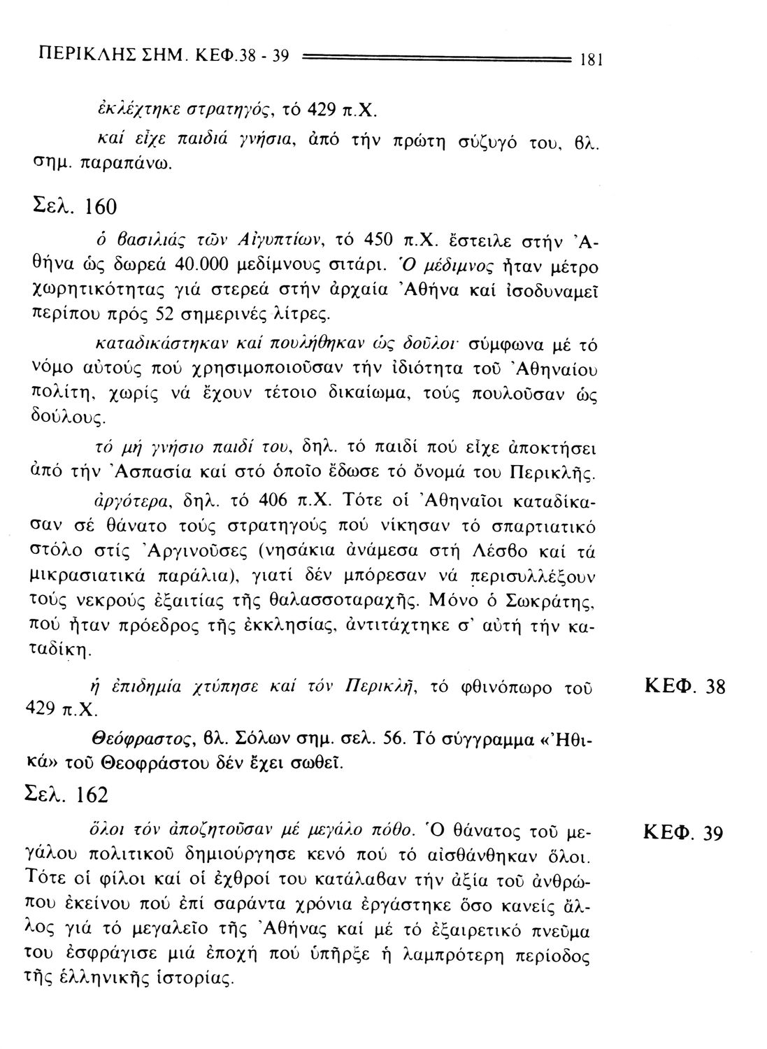 Σχολικό εγχειρίδιο Αρχαίων Ελληνικών. Το βιβλίο περιλαμβάνει εισαγωγή σχετικά με τη ζωή και το έργο του Πλουτάρχου. Η εισαγωγή και η μετάφραση των βίων του Θεμιστοκλή και του Περικλή έγιναν από τον Μιχ. Οικονόμου ενώ ο Βασ. Τσακατίκας επιμελήθηκε τους βίους του Σόλωνα και του Φωκίωνα.