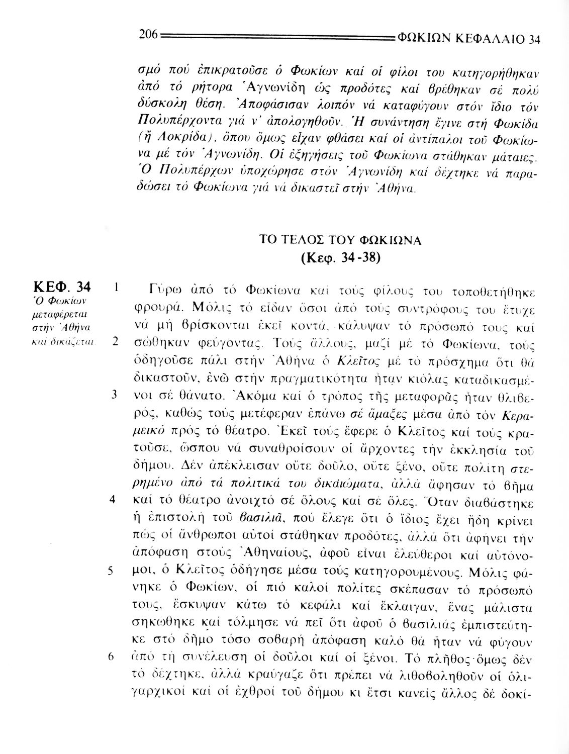 Βαθμίδα εκπαίδευσης: Δευτεροβάθμια Τάξη: Β' Γυμνασίου Μάθημα: Αρχαία Ελληνικά Γλώσσα: Δημοτική Παρουσίαση περιεχομένου: Σχολικό εγχειρίδιο Αρχαίων Ελληνικών. Το βιβλίο περιλαμβάνει εισαγωγή σχετικά με τη ζωή και το έργο του Πλουτάρχου. Η εισαγωγή και η μετάφραση των βίων του Θεμιστοκλή και του Περικλή έγιναν από τον Μιχ. Οικονόμου ενώ ο Βασ. Τσακατίκας επιμελήθηκε τους βίους του Σόλωνα και του Φωκίωνα. |