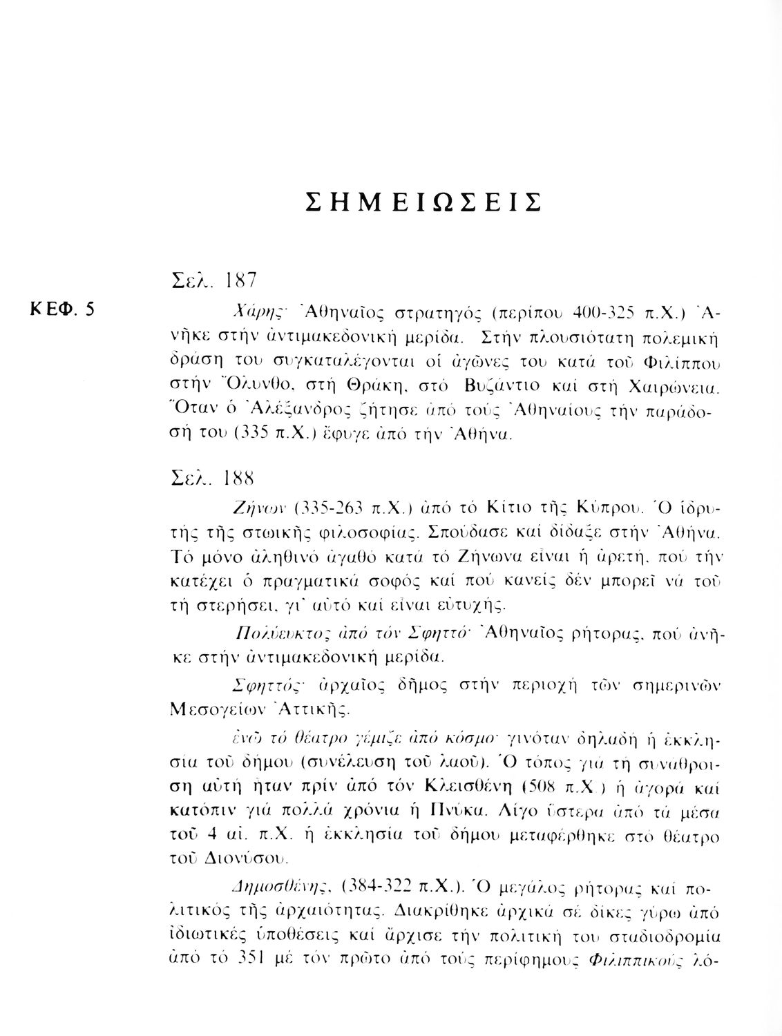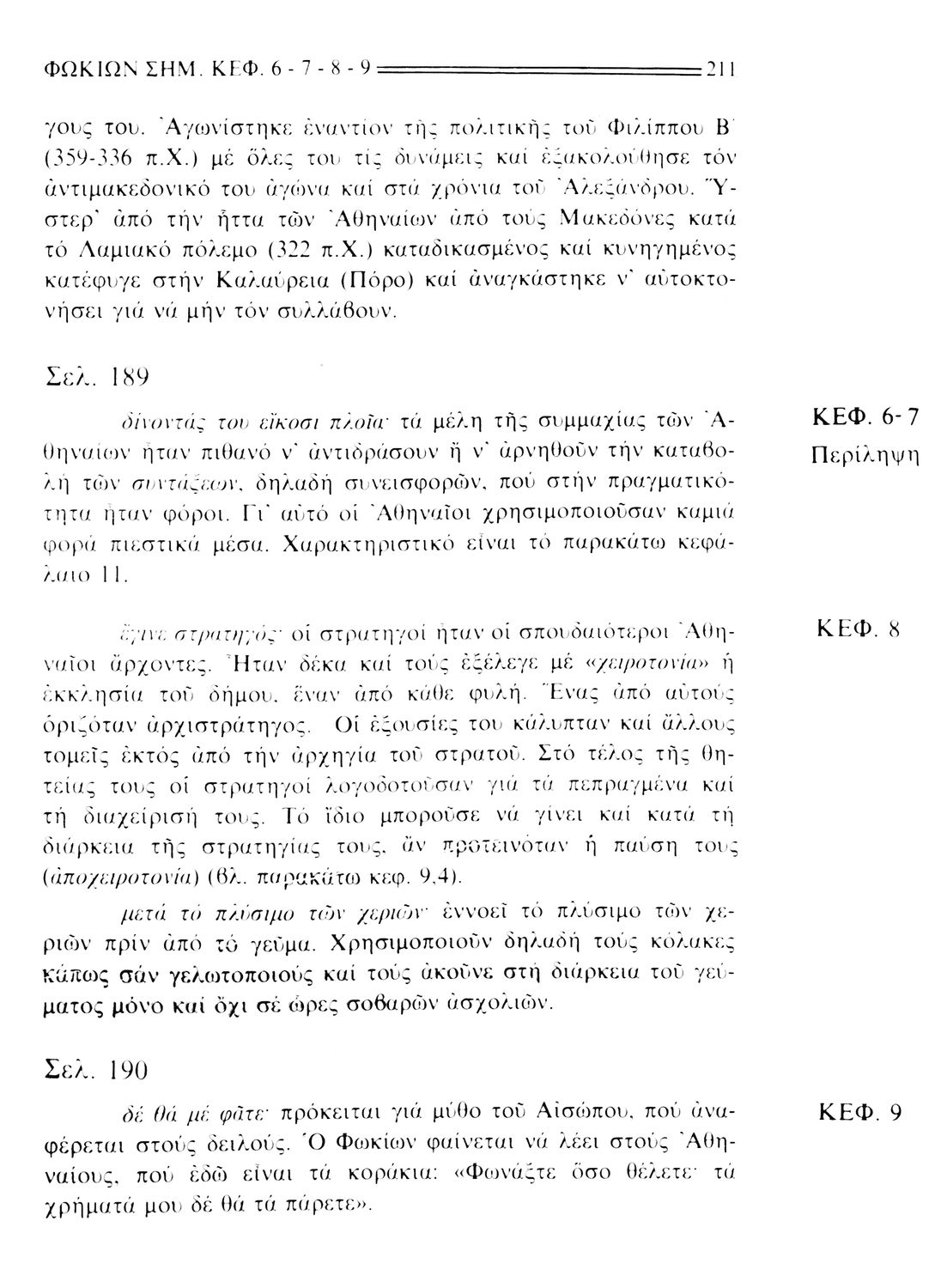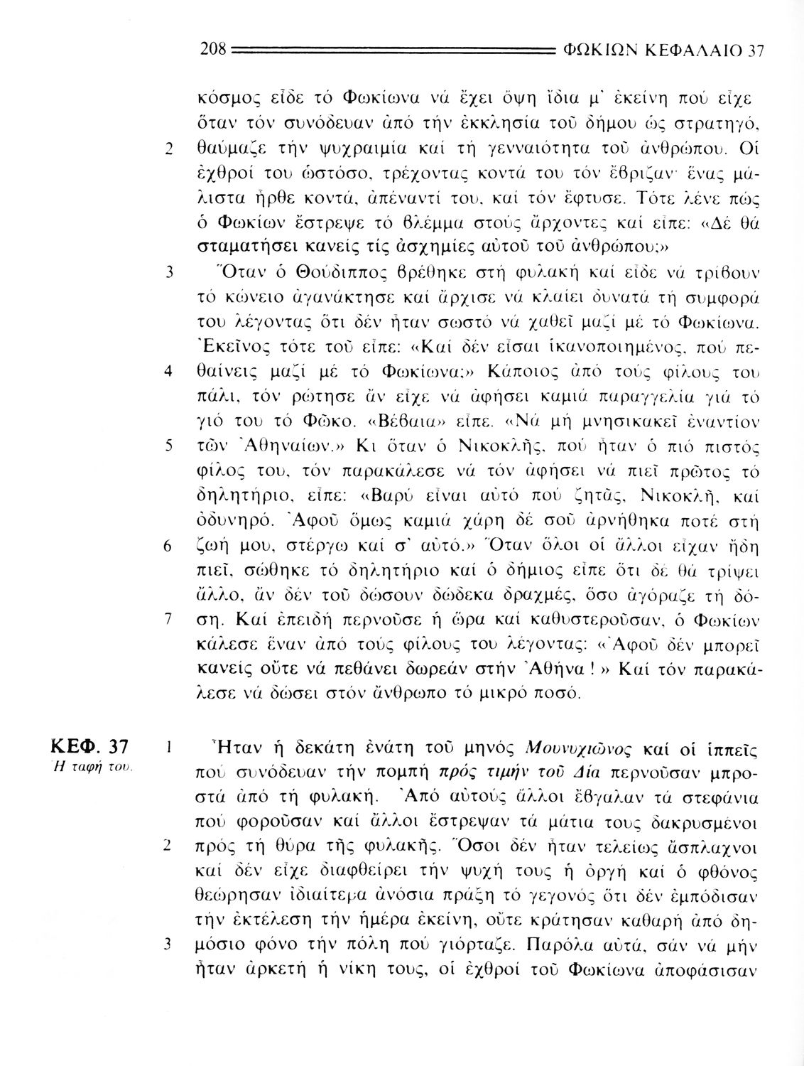 Σχολικό εγχειρίδιο Αρχαίων Ελληνικών. Το βιβλίο περιλαμβάνει εισαγωγή σχετικά με τη ζωή και το έργο του Πλουτάρχου. Η εισαγωγή και η μετάφραση των βίων του Θεμιστοκλή και του Περικλή έγιναν από τον Μιχ. Οικονόμου ενώ ο Βασ. Τσακατίκας επιμελήθηκε τους βίους του Σόλωνα και του Φωκίωνα.