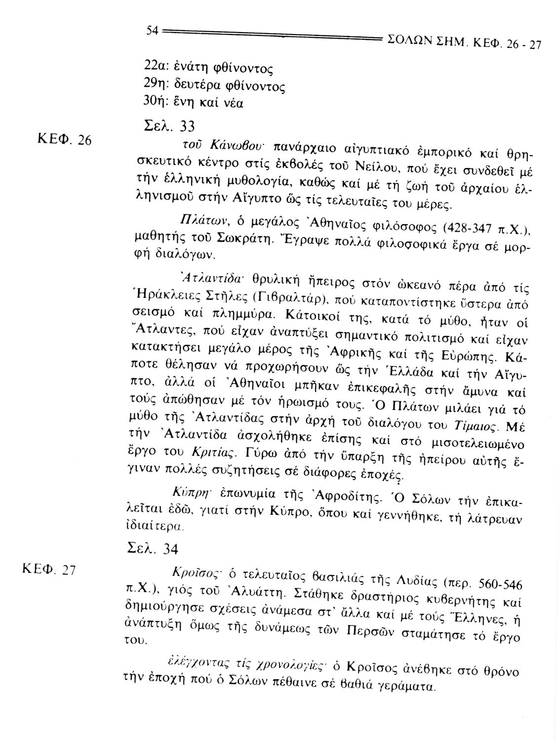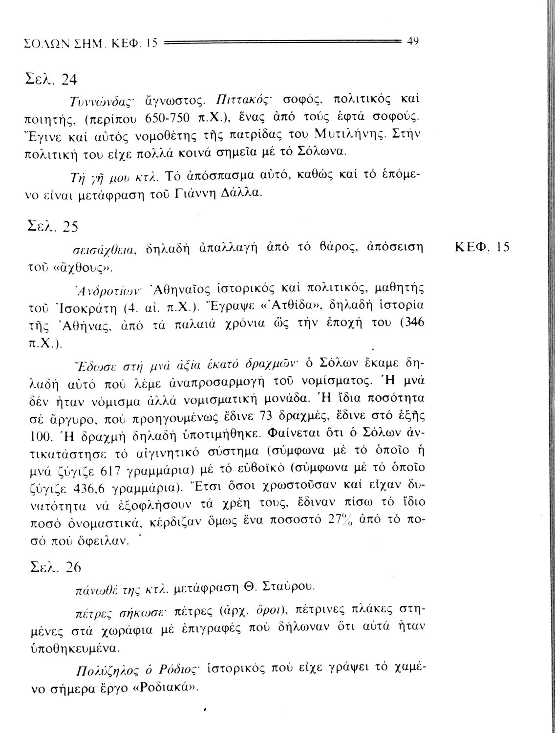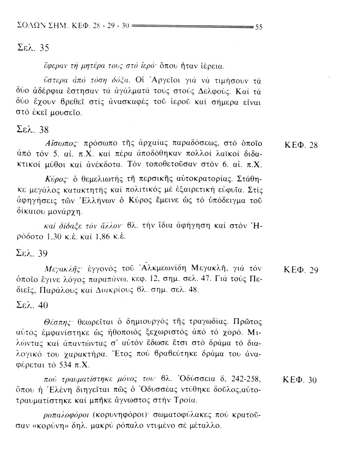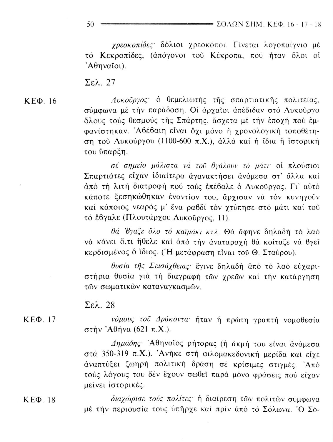 Σχολικό εγχειρίδιο Αρχαίων Ελληνικών. Αρχικά ένα εισαγωγικό σημείωμα αναφέρεται στη ζωή και το έργο του Πλουτάρχου. Ακολουθούν από το έργο του "Παράλληλοι Βίοι", σε μετάφραση, οι βιογραφίες του Σόλωνα, του ...