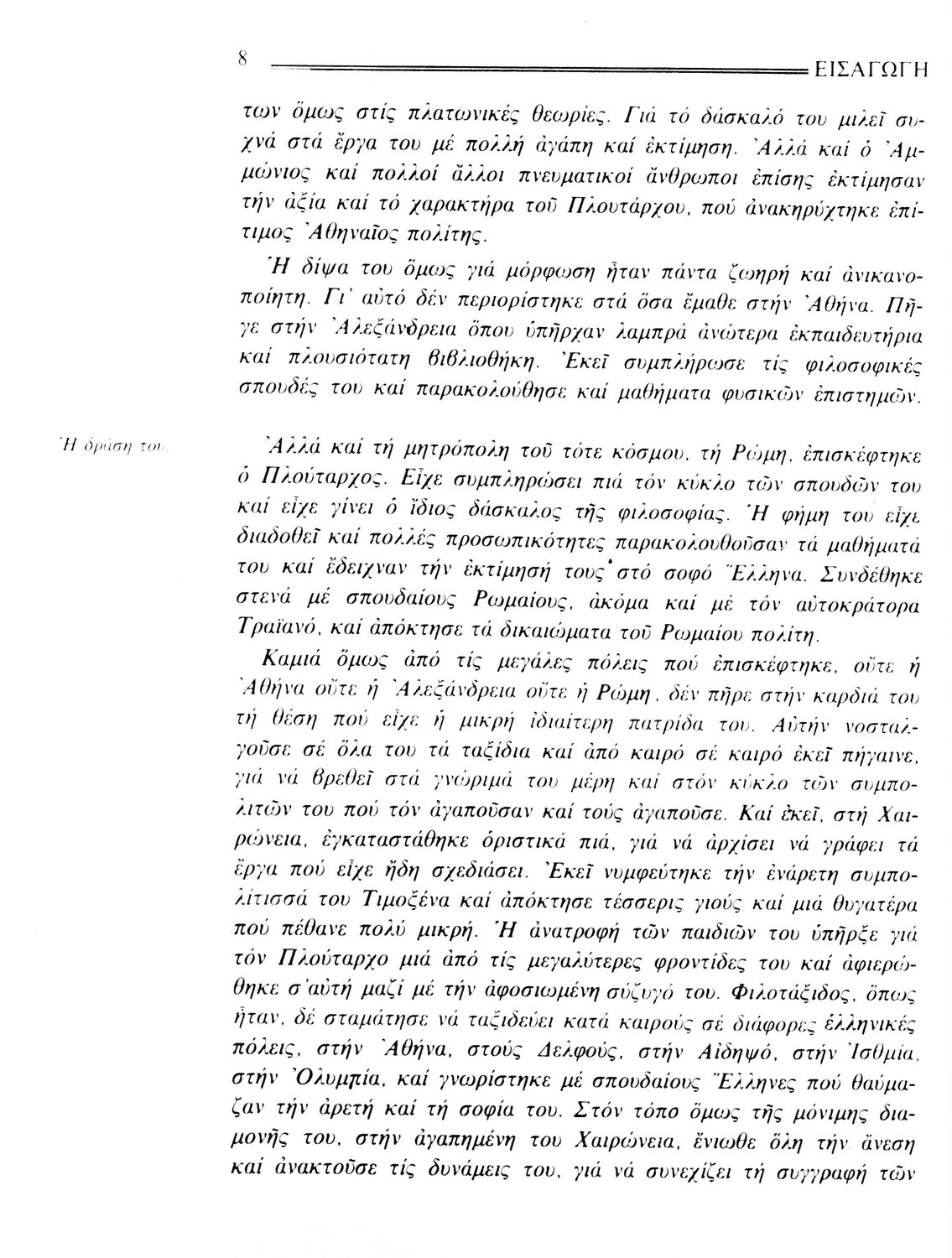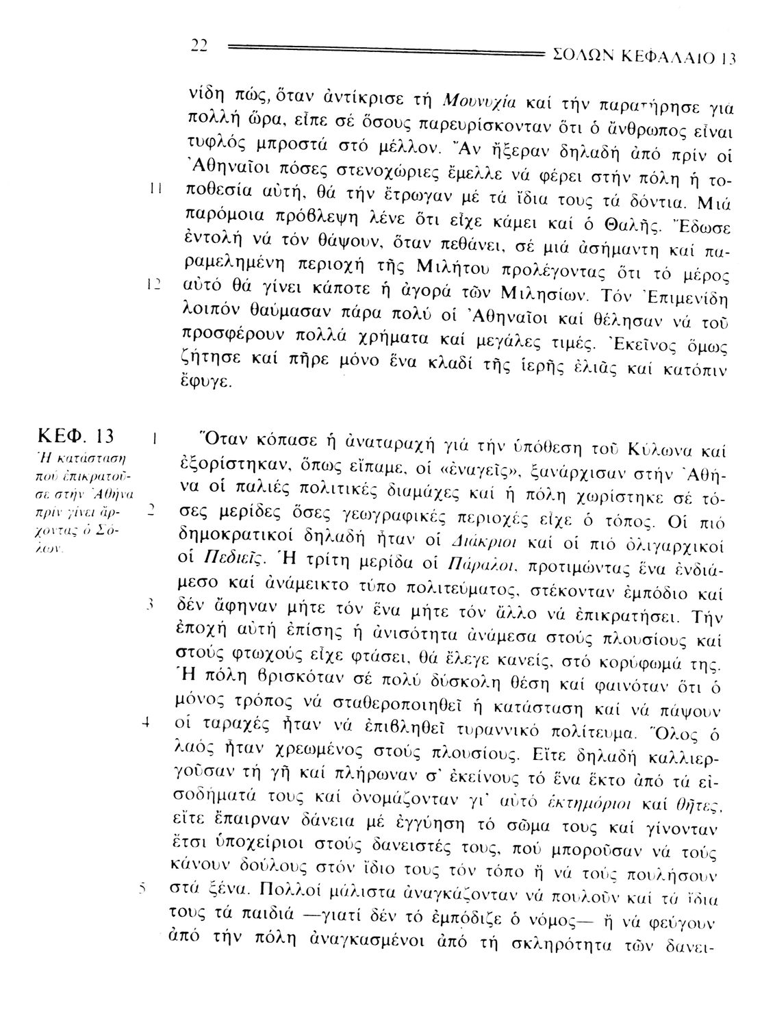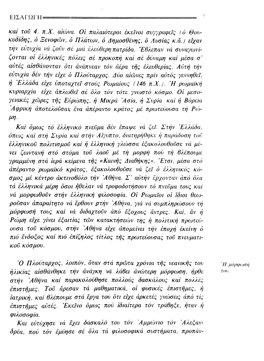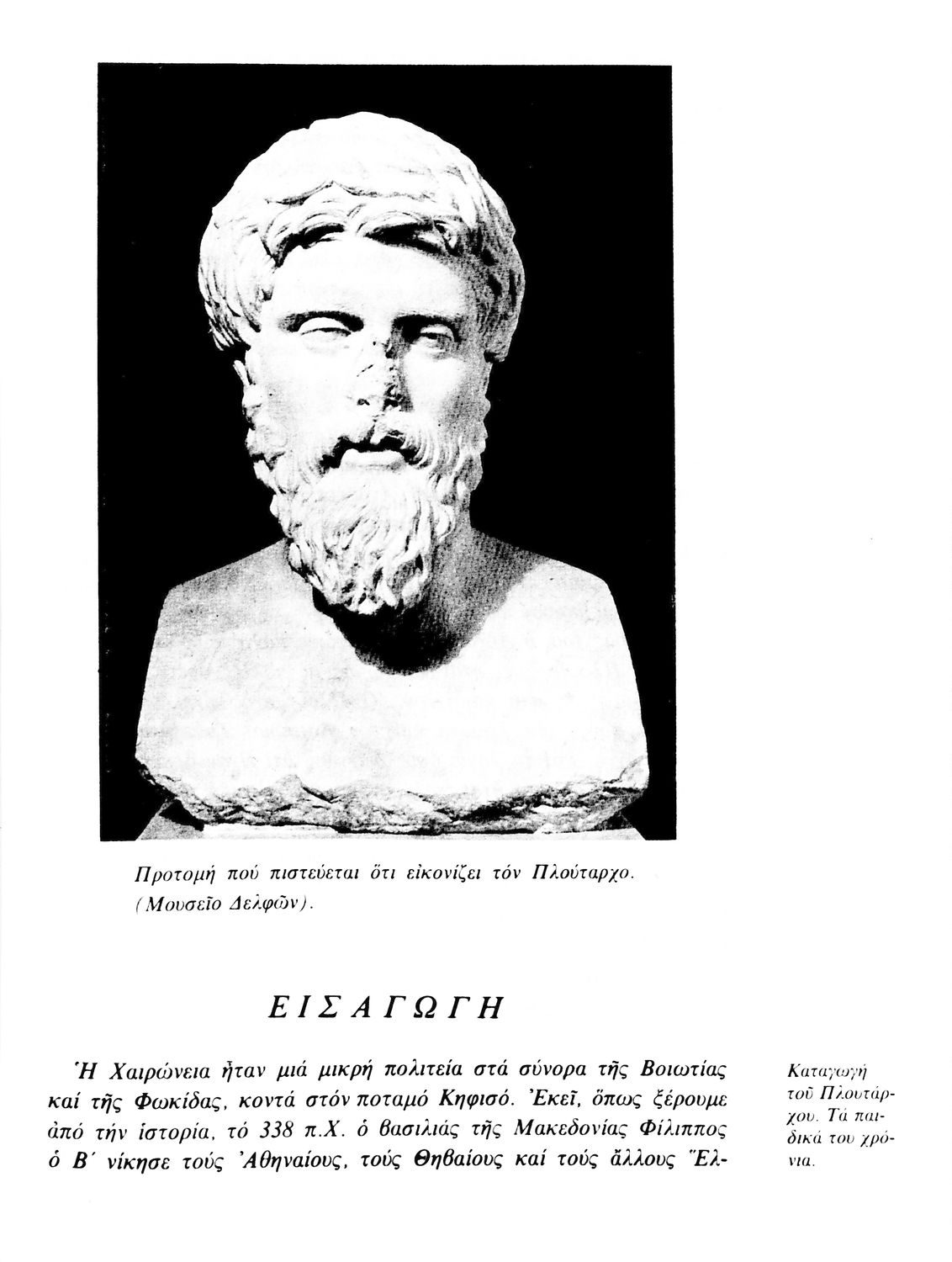 Σχολικό εγχειρίδιο Αρχαίων Ελληνικών. Το βιβλίο περιλαμβάνει εισαγωγή σχετικά με τη ζωή και το έργο του Πλουτάρχου. Η εισαγωγή και η μετάφραση των βίων του Θεμιστοκλή και του Περικλή έγιναν από τον Μιχ. Οικονόμου ενώ ο Βασ. Τσακατίκας επιμελήθηκε τους βίους του Σόλωνα και του Φωκίωνα.