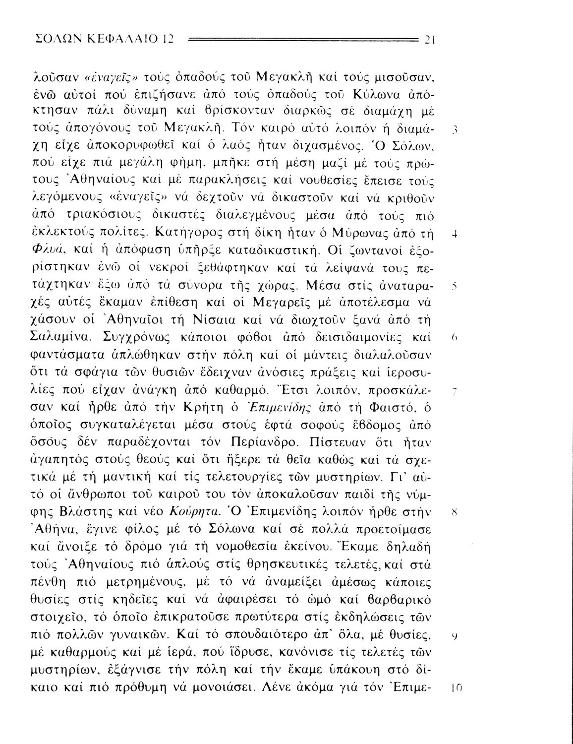 LDR 01512 2200217 4500 035 ## _a01-19219 040 ## _aΙνστιτούτο Εκπαιδευτικής Πολιτικής 041 ## _ael 100 ## _aΠλούταρχος _aΜιχ. Χ. Οικονόμου _aΒασ. Η. Τσακατίκας (μετάφραση _aεισαγωγή) 110 ## _a19219 245 0# _aΠλουτάρχου Βίοι Σόλων - Θεμιστοκλής - Περικλής - Φωκίων Β΄ Γυμνασίου 250 ## _a4η Έκδοση 260 ## _aΑθήνα _bΟργανισμός Εκδόσεως Διδακτικών Βιβλίων _c1981 300 ## _a224 _bΕικόνες (ασπρόμαυρες) _c20 520 ## _aΣχολικό εγχειρίδιο Αρχαίων Ελληνικών. Το βιβλίο περιλαμβάνει εισαγωγή σχετικά με τη ζωή και το έργο του Πλουτάρχου. Η εισαγωγή και η μετάφραση των βίων του Θεμιστοκλή και του Περικλή έγιναν από τον Μιχ. Οικονόμου ενώ ο Βασ. Τσακατίκας επιμελήθηκε τους βίους του Σόλωνα και του Φωκίωνα. 521 ## _aΒ' Γυμνασίου 522 ## _aΕλλάδα 546 ## _aΔημοτική 563 ## _aΜαλακό Εξώφυλλο 583 ## _a3482/13-10-1980 _c1980 650 #4 _aΆρειος Πάγος _aΕξοστρακισμός _aΕξωραϊσμός _aΜήδοι _aΤύραννος