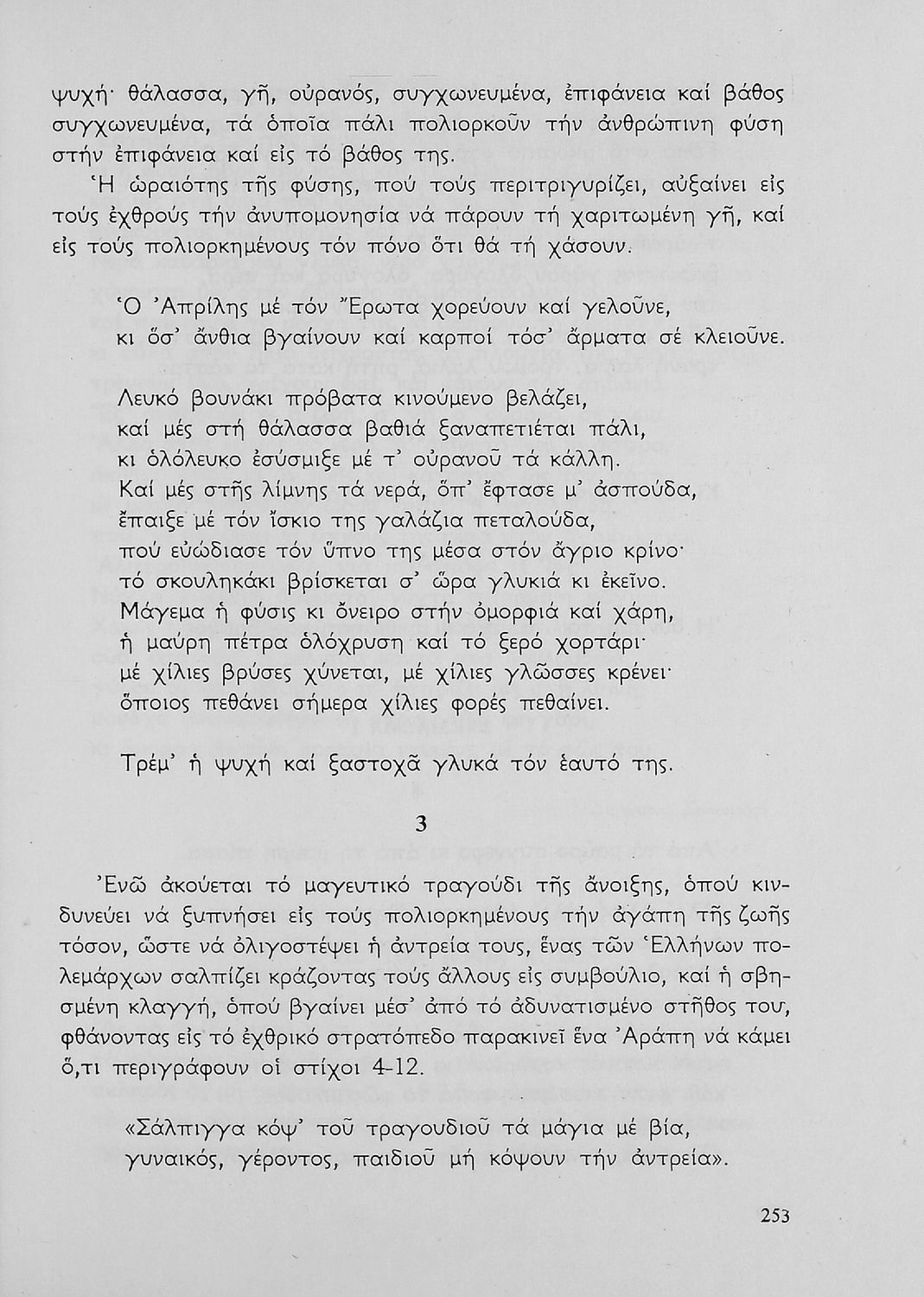 Σχολικό εγχειρίδιο Νέων Ελληνικών για την Γ΄ Λυκείου που περιέχει κείμενα και ποιήματα Ελλήνων και ξένων λογοτεχνών. Ο πεζός λόγος ανήκει στους ρητορικούς λόγους, στις διηγήσεις, στις περιγραφές και στα ευθυμογραφήματα. Η ποίηση περιλαμβάνει δημοτικά και έντεχνο ποιητικό λόγο ενώ υπάρχουν κείμενα από την ιταλική, γαλλική και αγγλική λογοτεχνία.