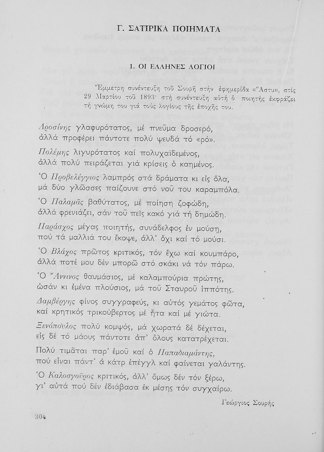 Σχετιζόμενοι όροι:  Λάμπρος, Παπάγος, Σουρής, Έλιοτ, Δάντε