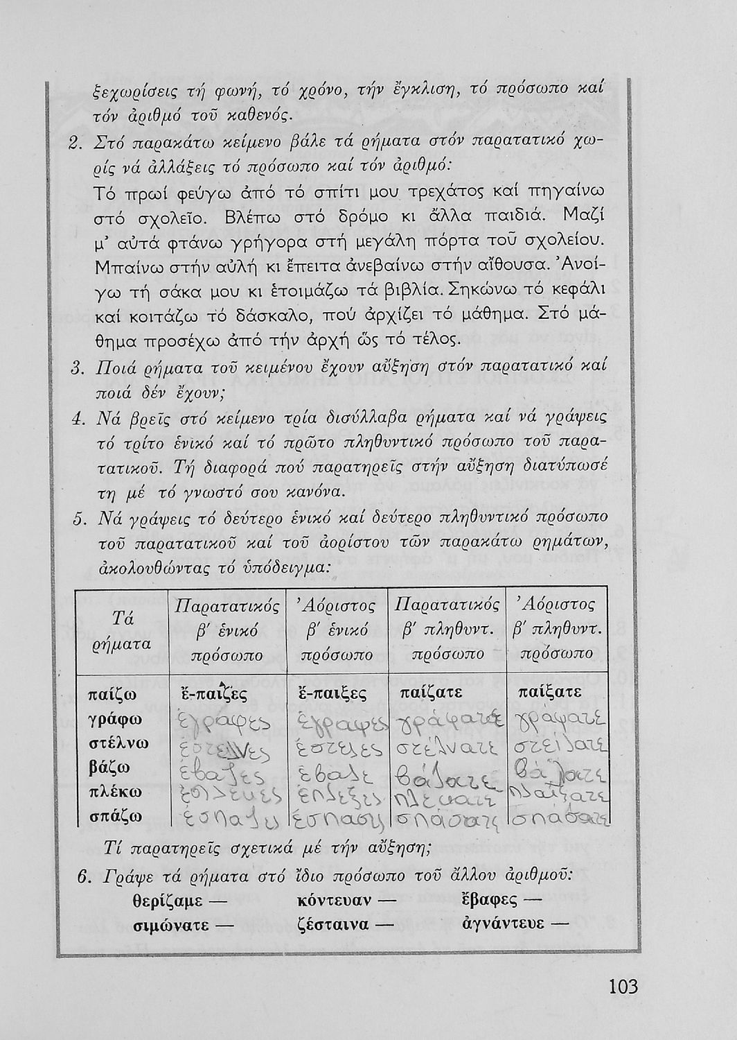 Σχολικό εγχειρίδιο γραμματικής με κείμενα και ασκήσεις πάνω σε διάφορα γραμματικά φαινόμενα για εξάσκηση και εμπέδωση των μαθητών.