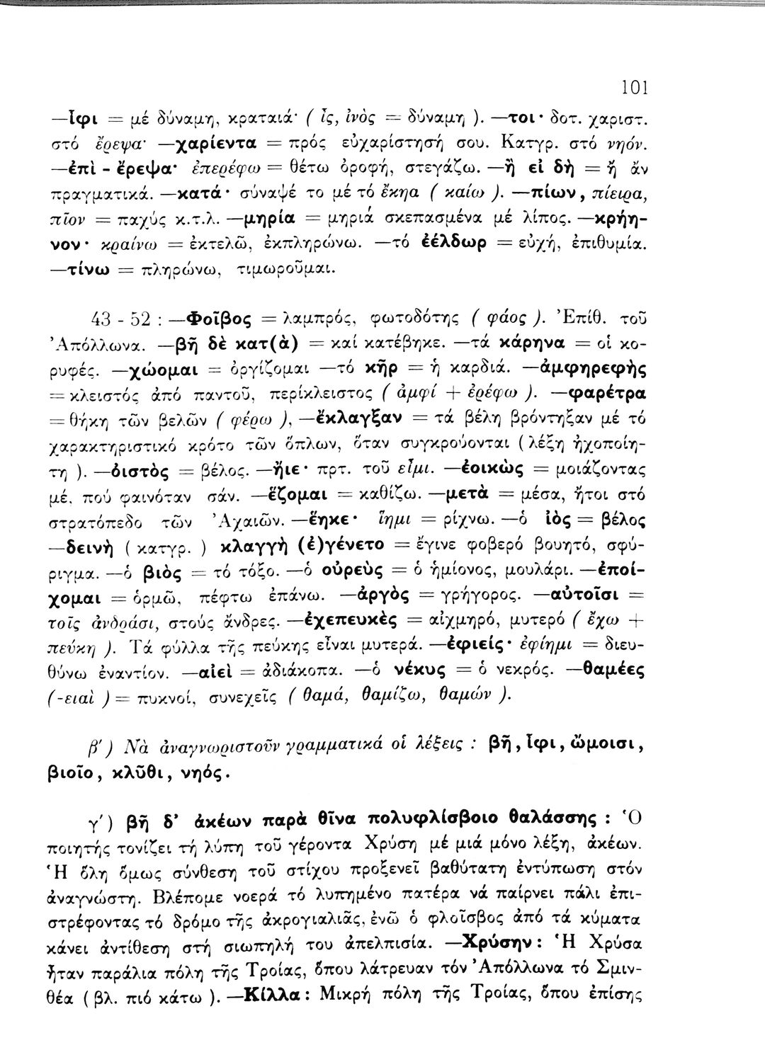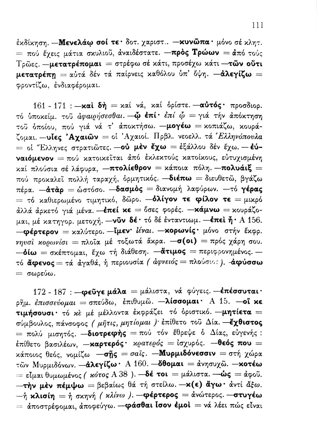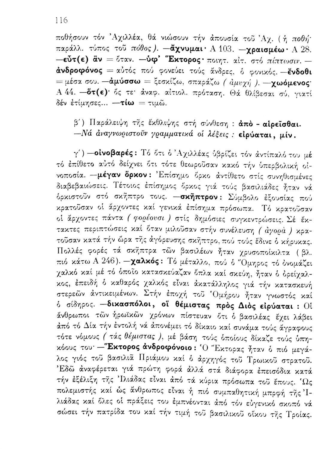 Σχολικό εγχειρίδιο Αρχαίων Ελληνικών για τη Β' Γυμνασίου που περιλαμβάνει την Ιλιάδα Ομήρου. Το βιβλίο αποτελεί το Α΄ τεύχος από δύο. Η εισαγωγή και τα σχόλια έγιναν από την Ελένη Ι. Κακριδή.
